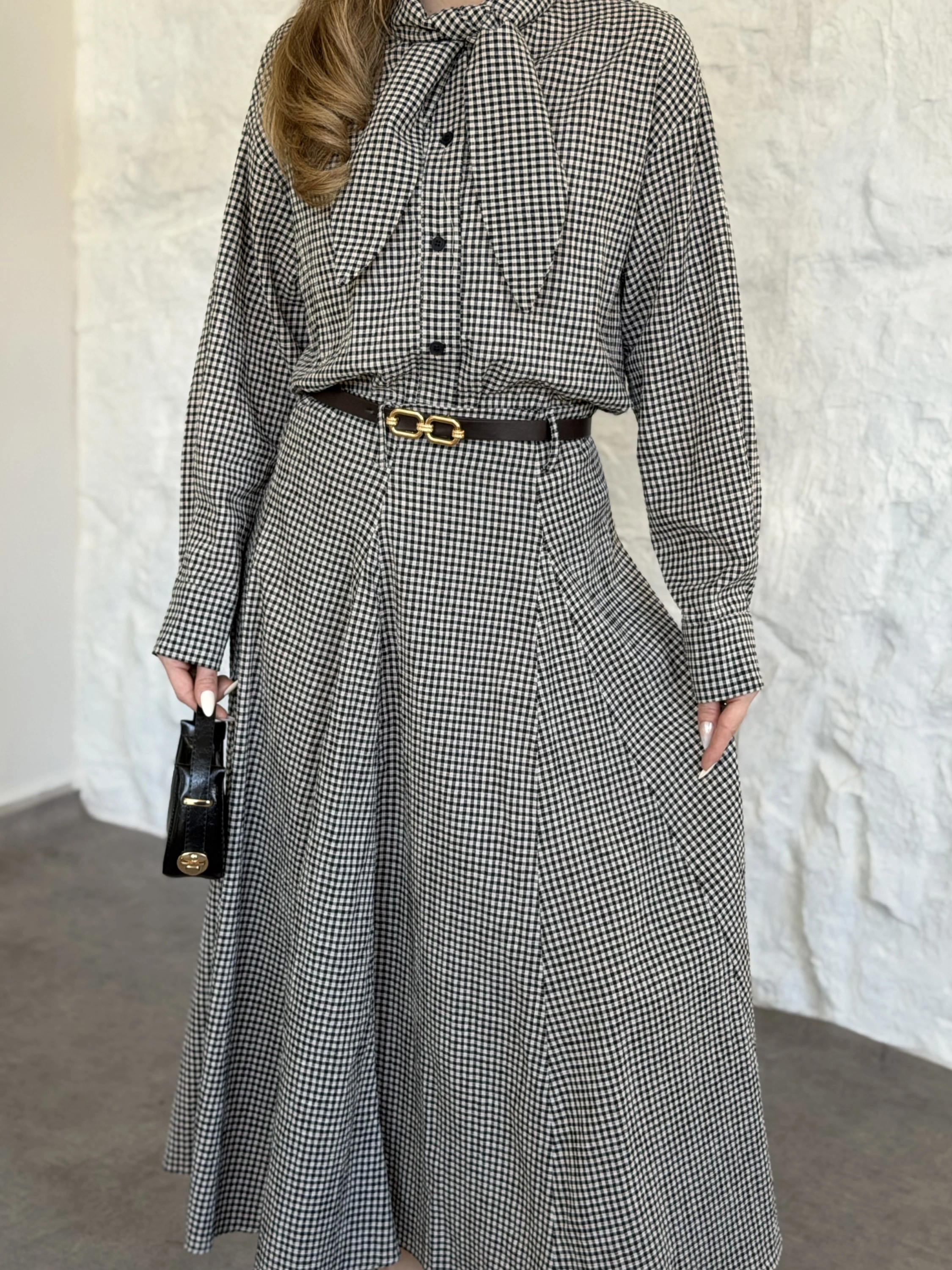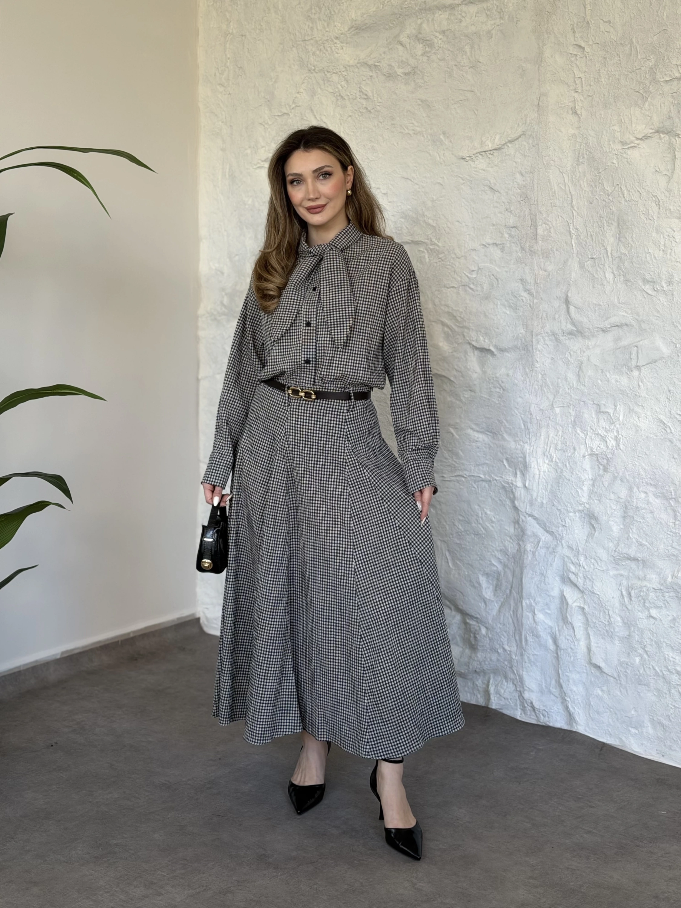Keten pitikare kemerli etekli takım siyah