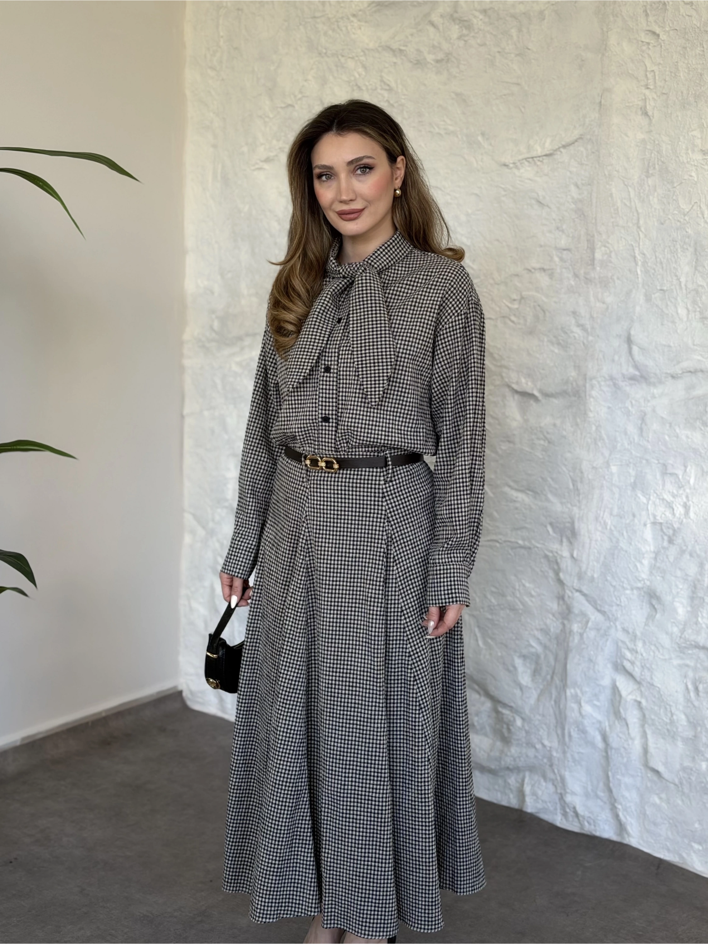 Keten pitikare kemerli etekli takım kahve