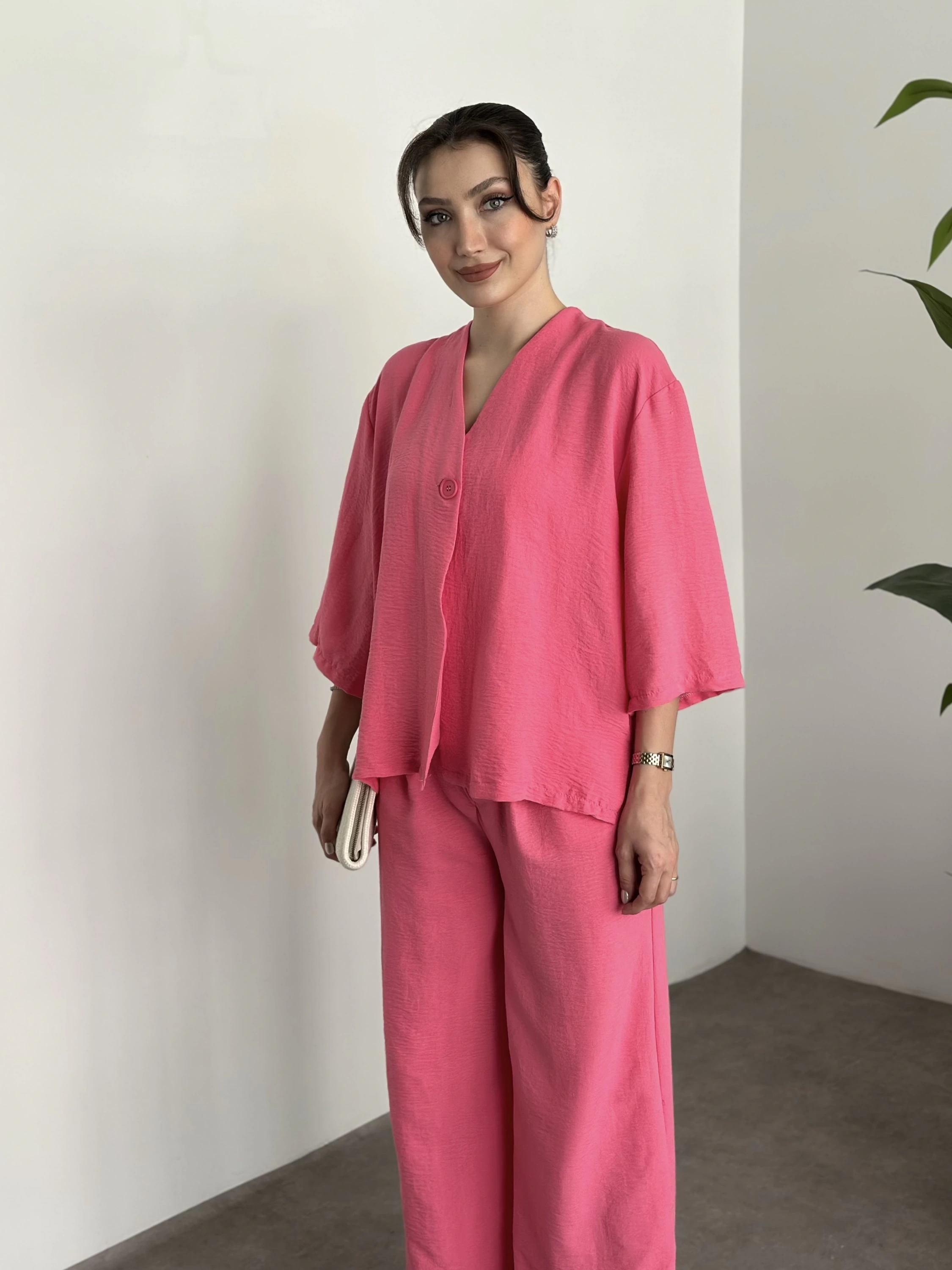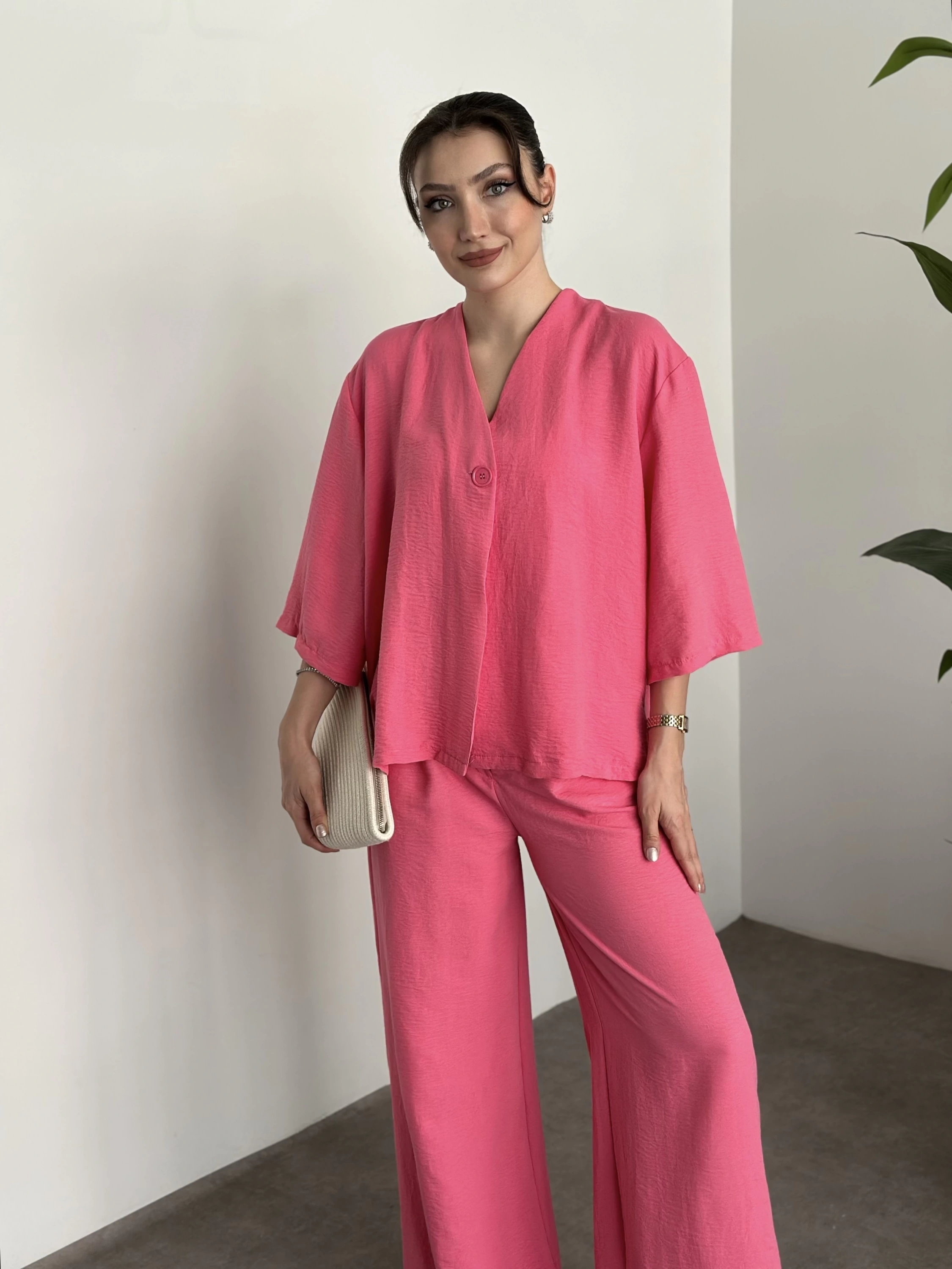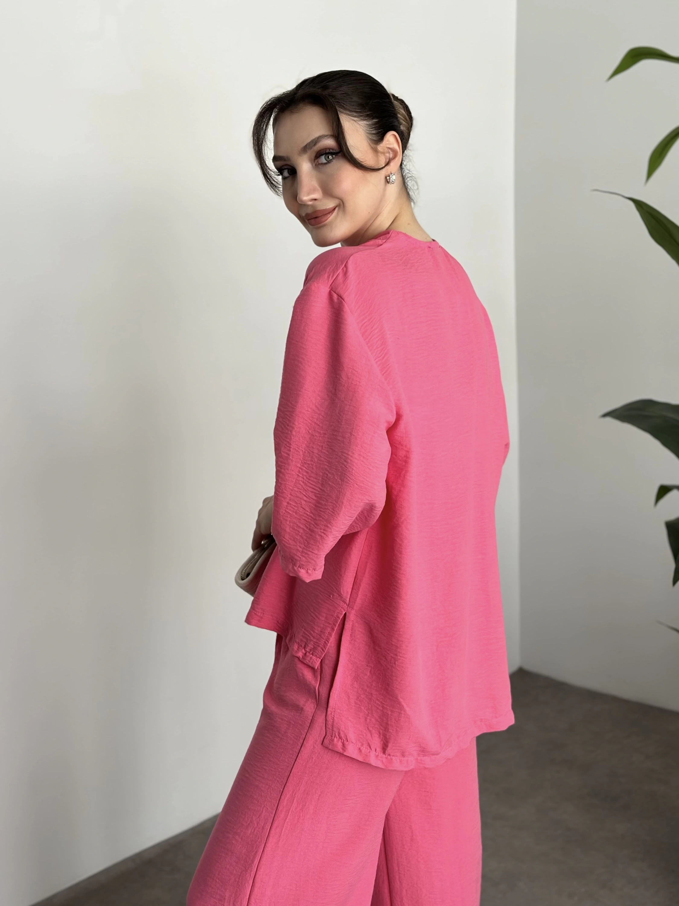 Premium yandan bağlama detaylı double kumaş takım mürdüm