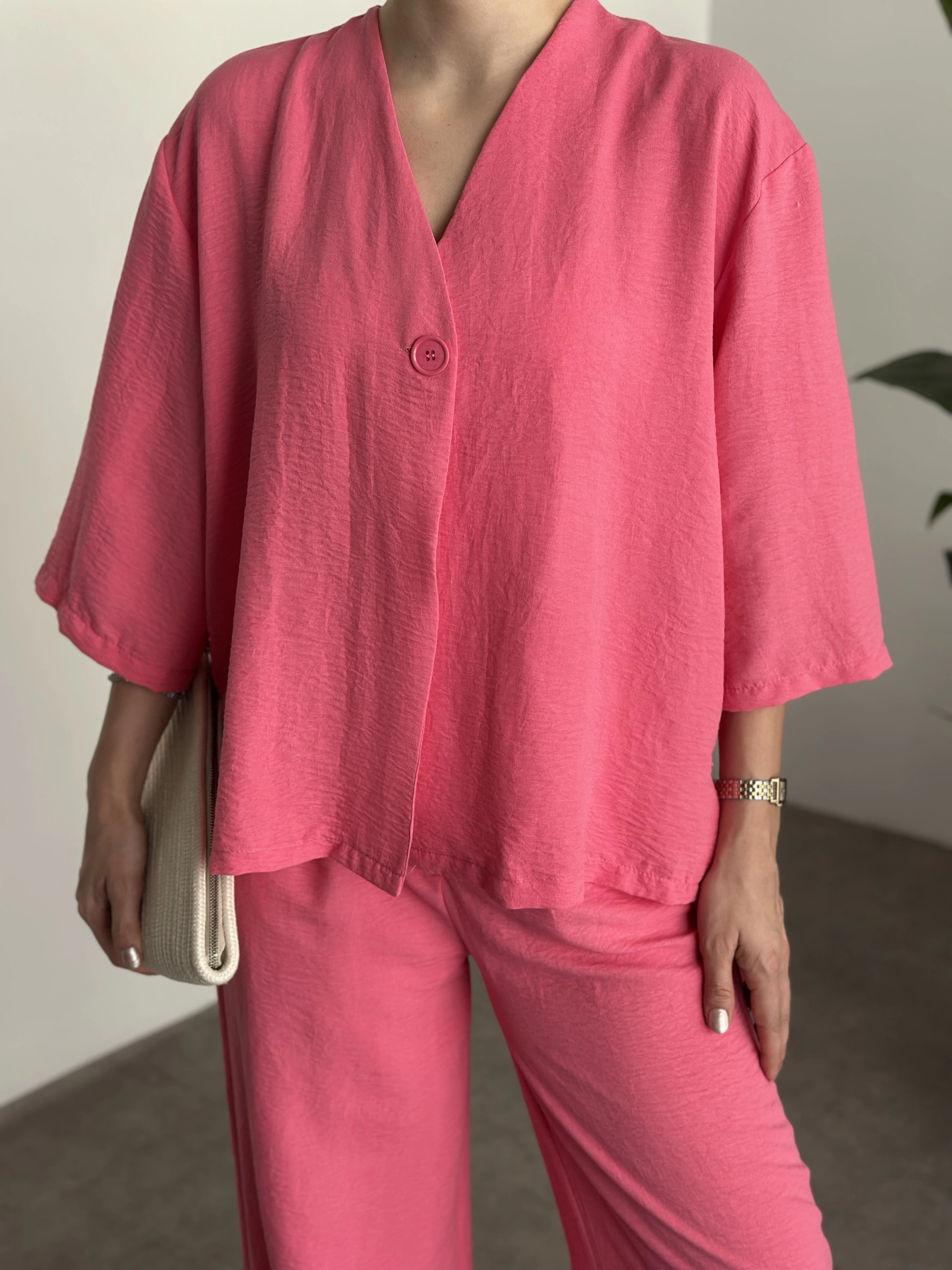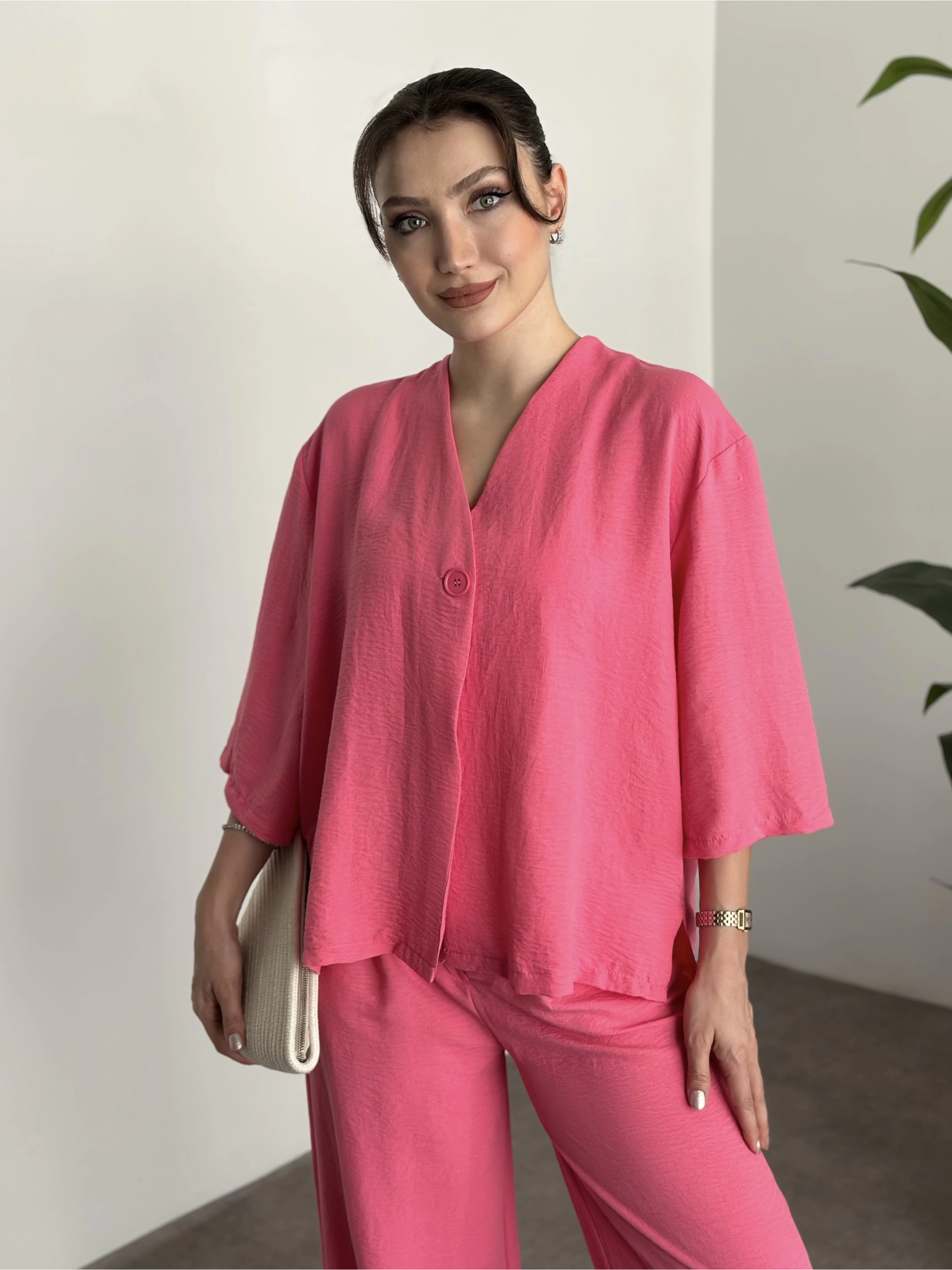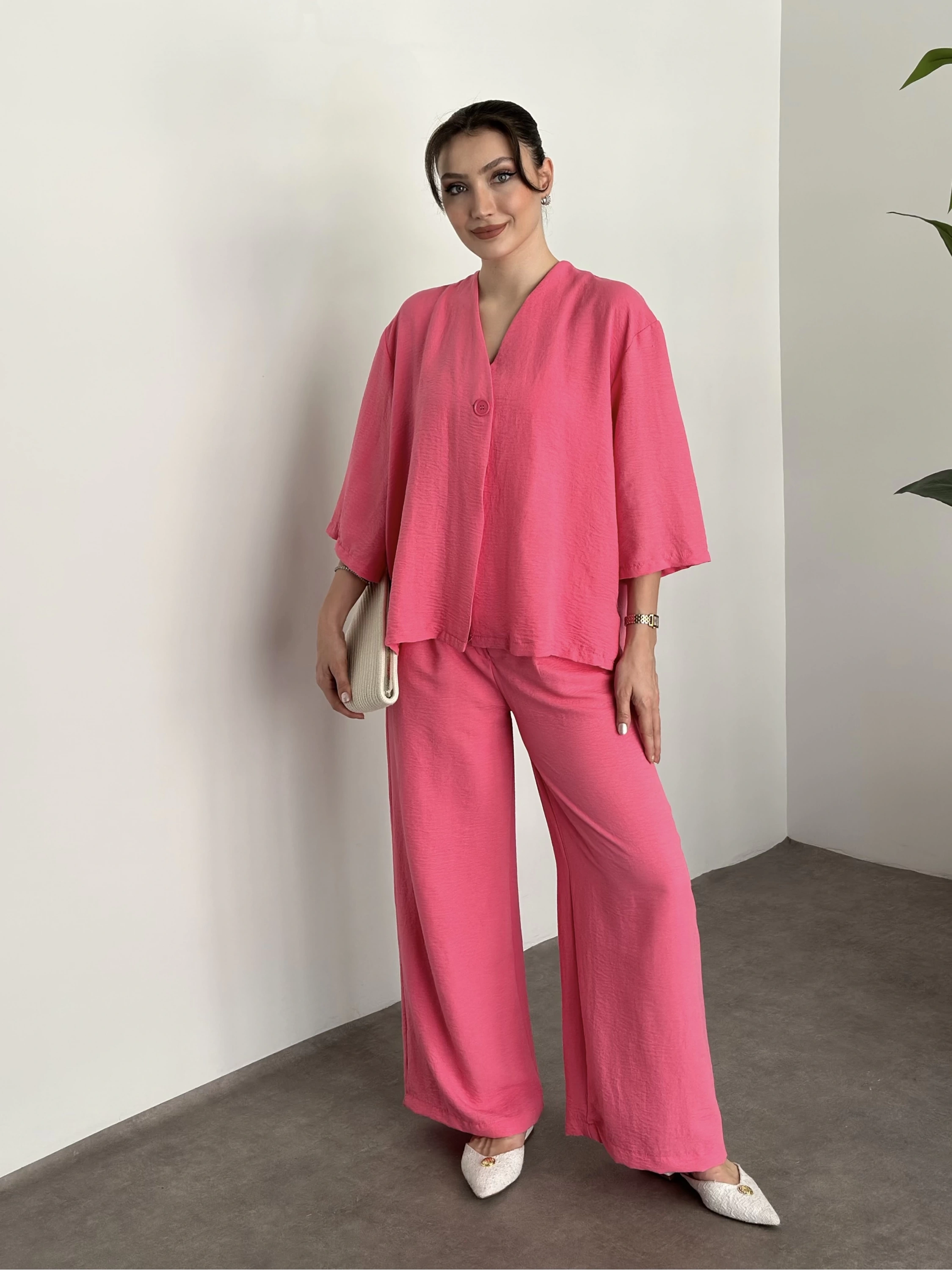 Premium yandan bağlama detaylı double kumaş takım mürdüm