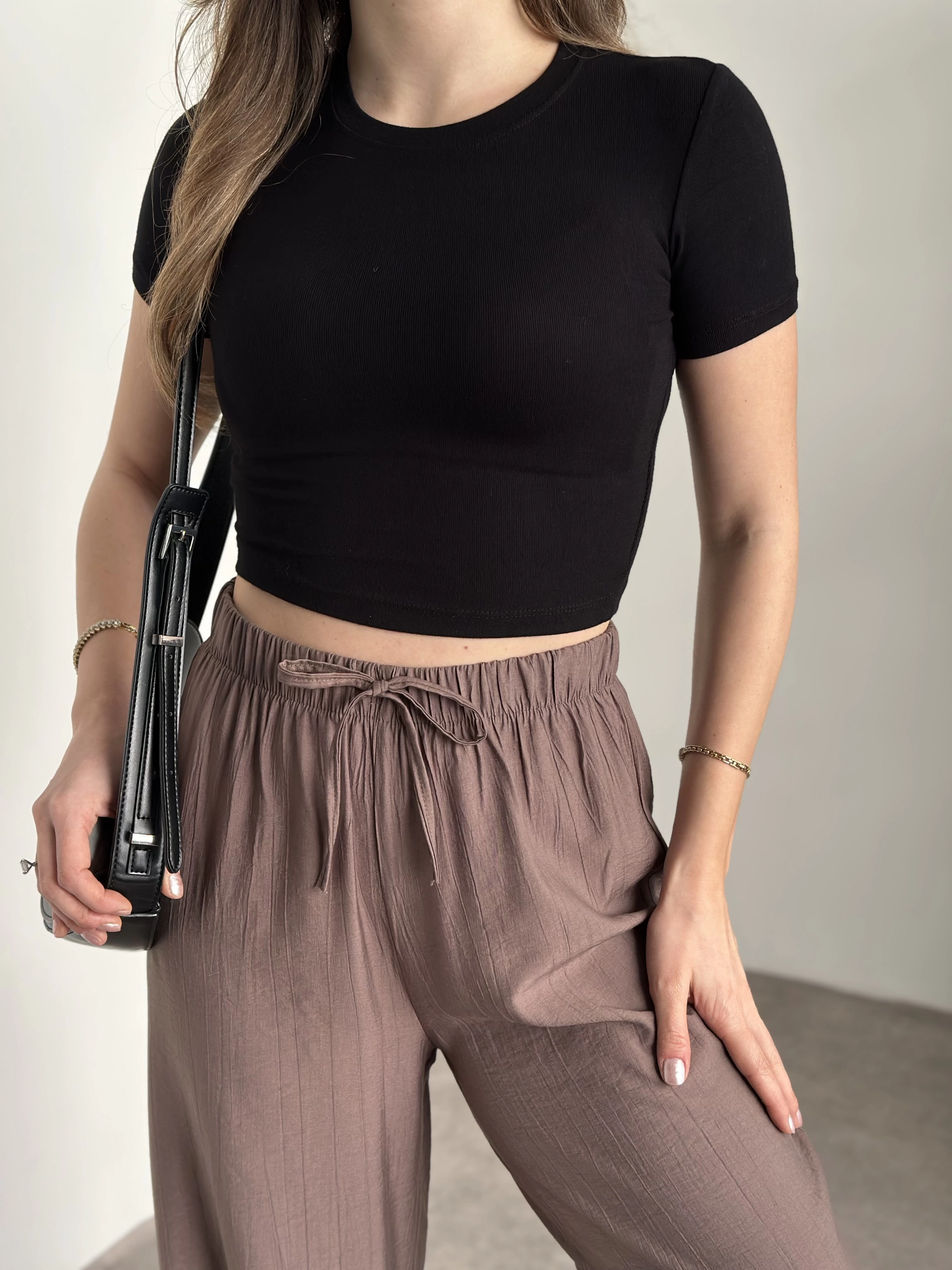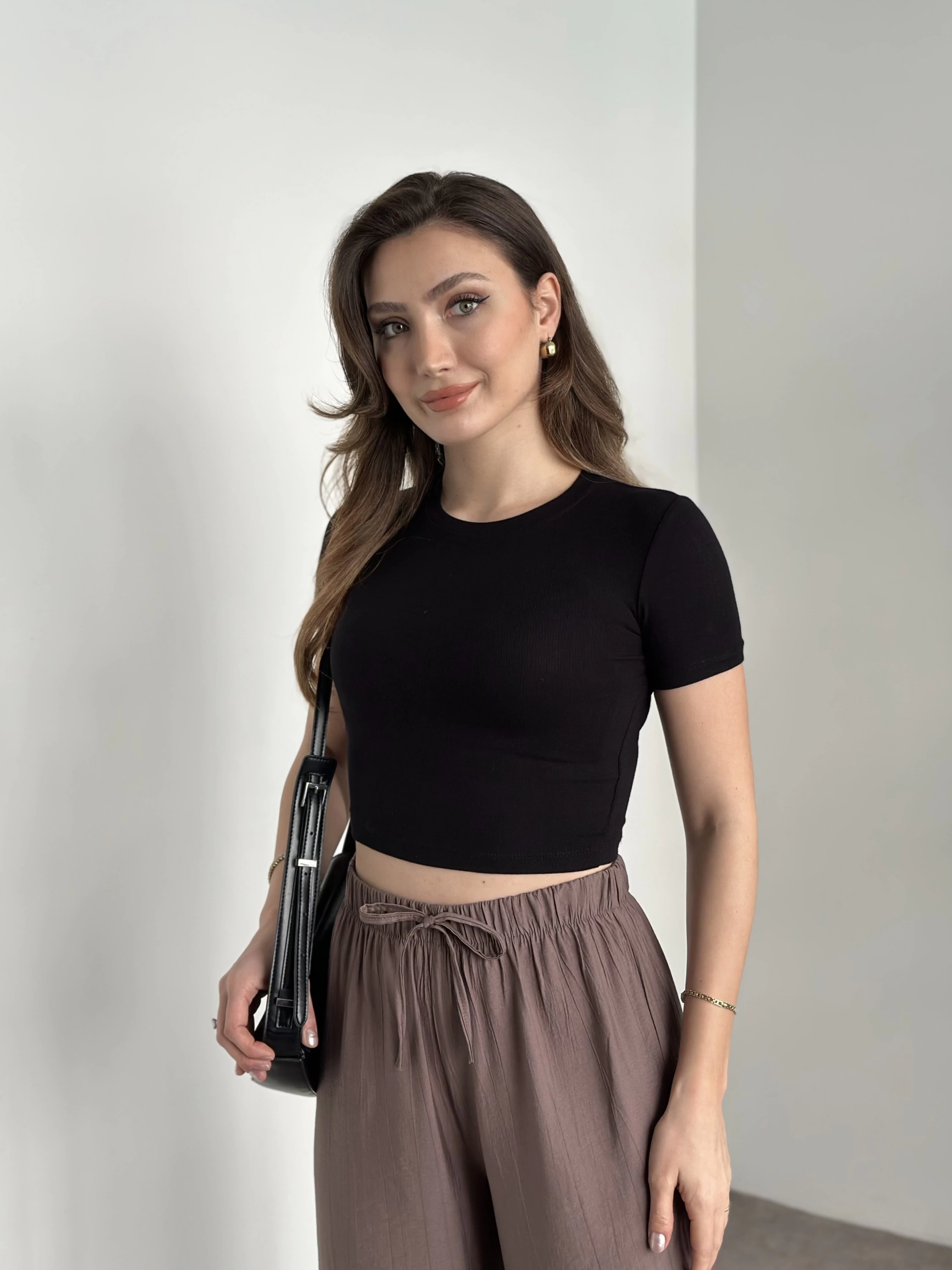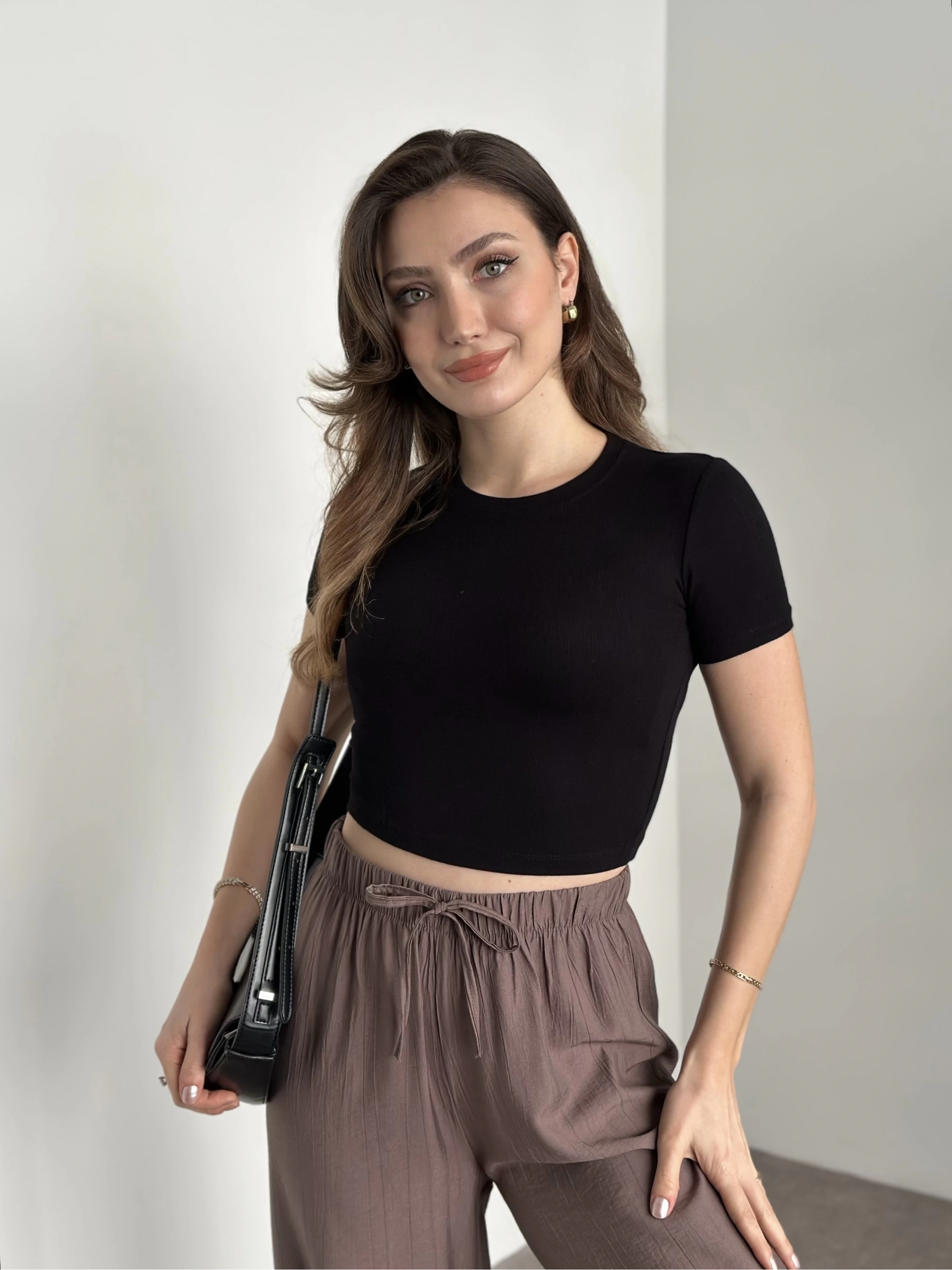 Kısa kol crop boy modal kumaş body siyah