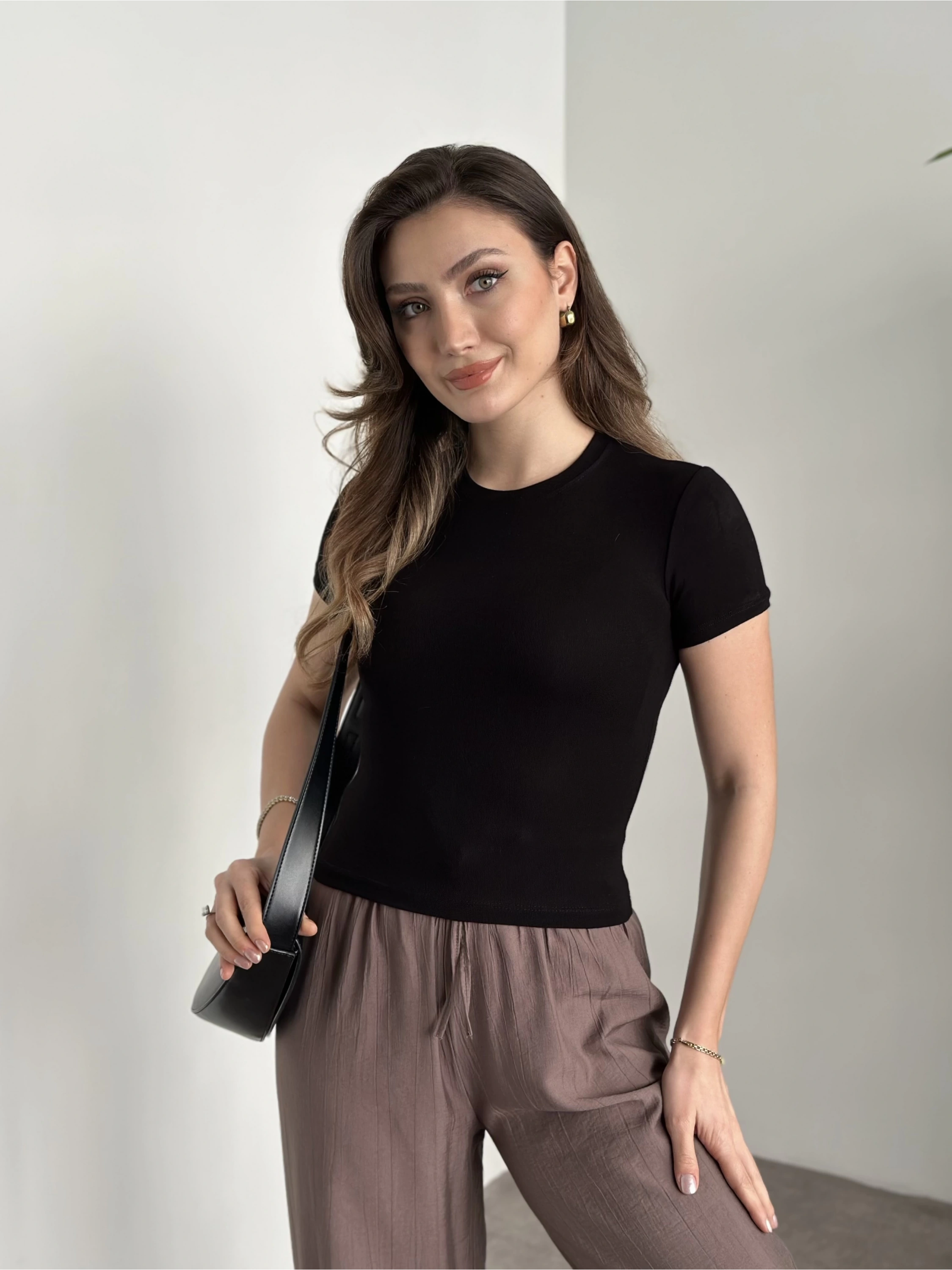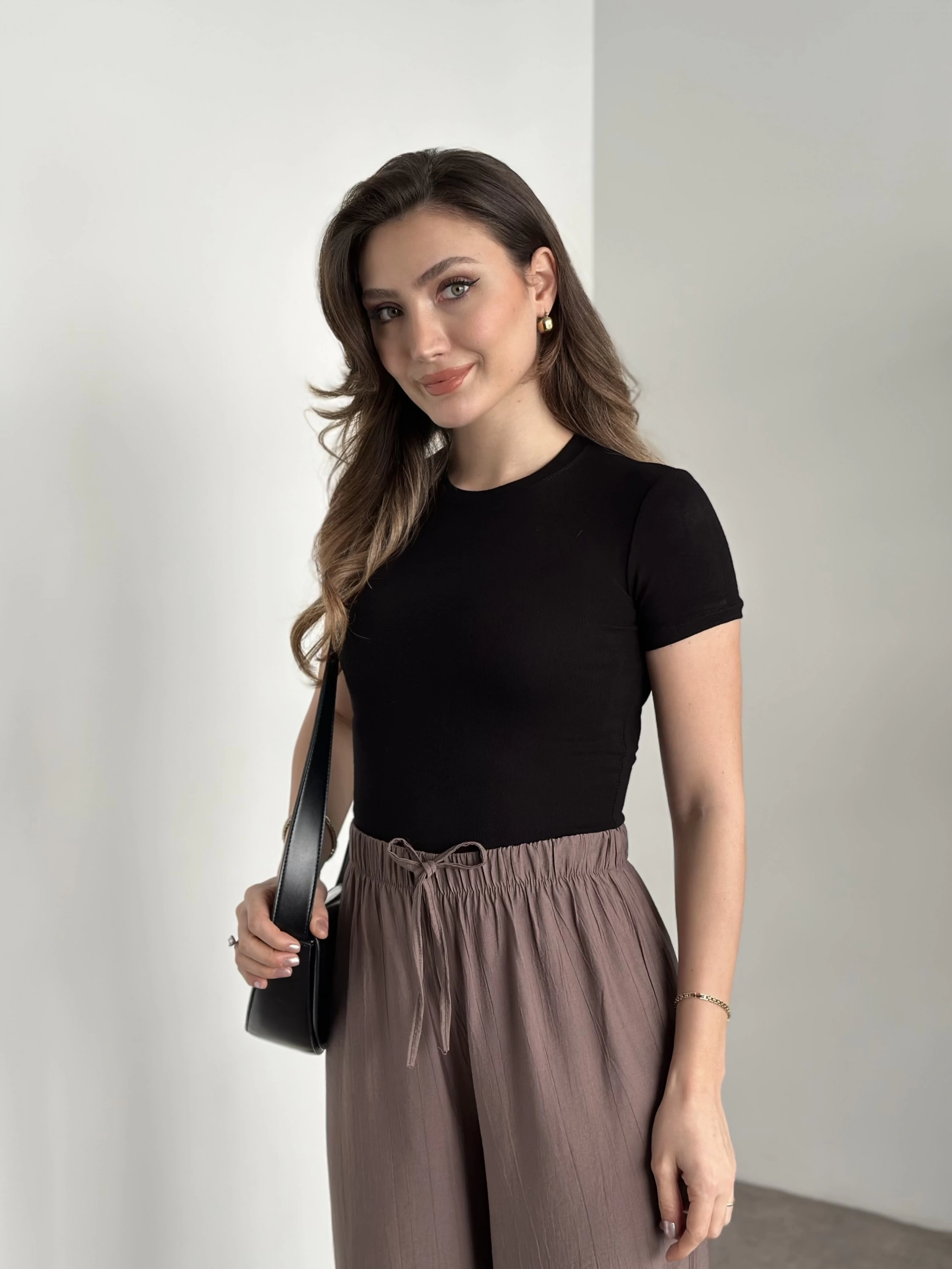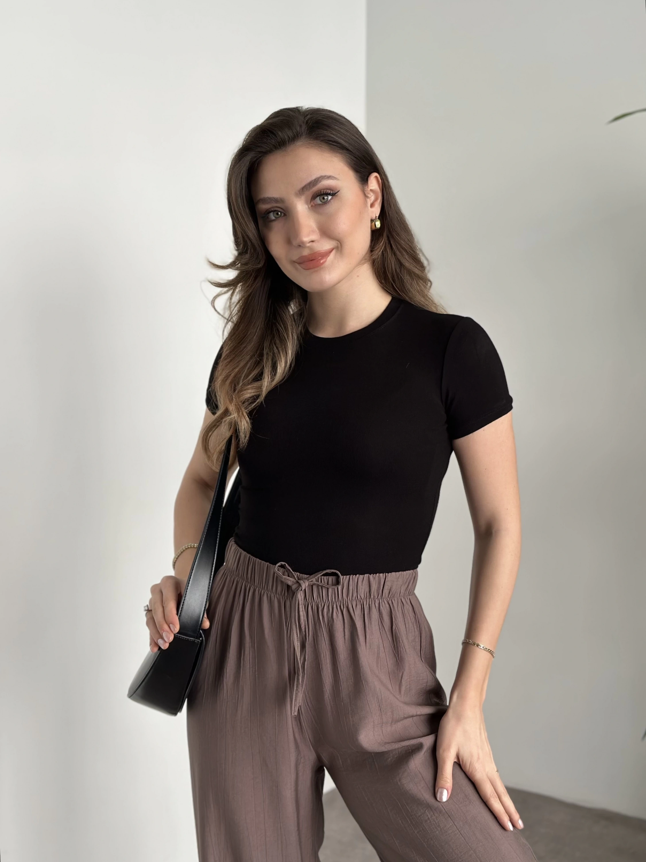 Marka etiketli tensel kumaş şalvar pantolon sarı