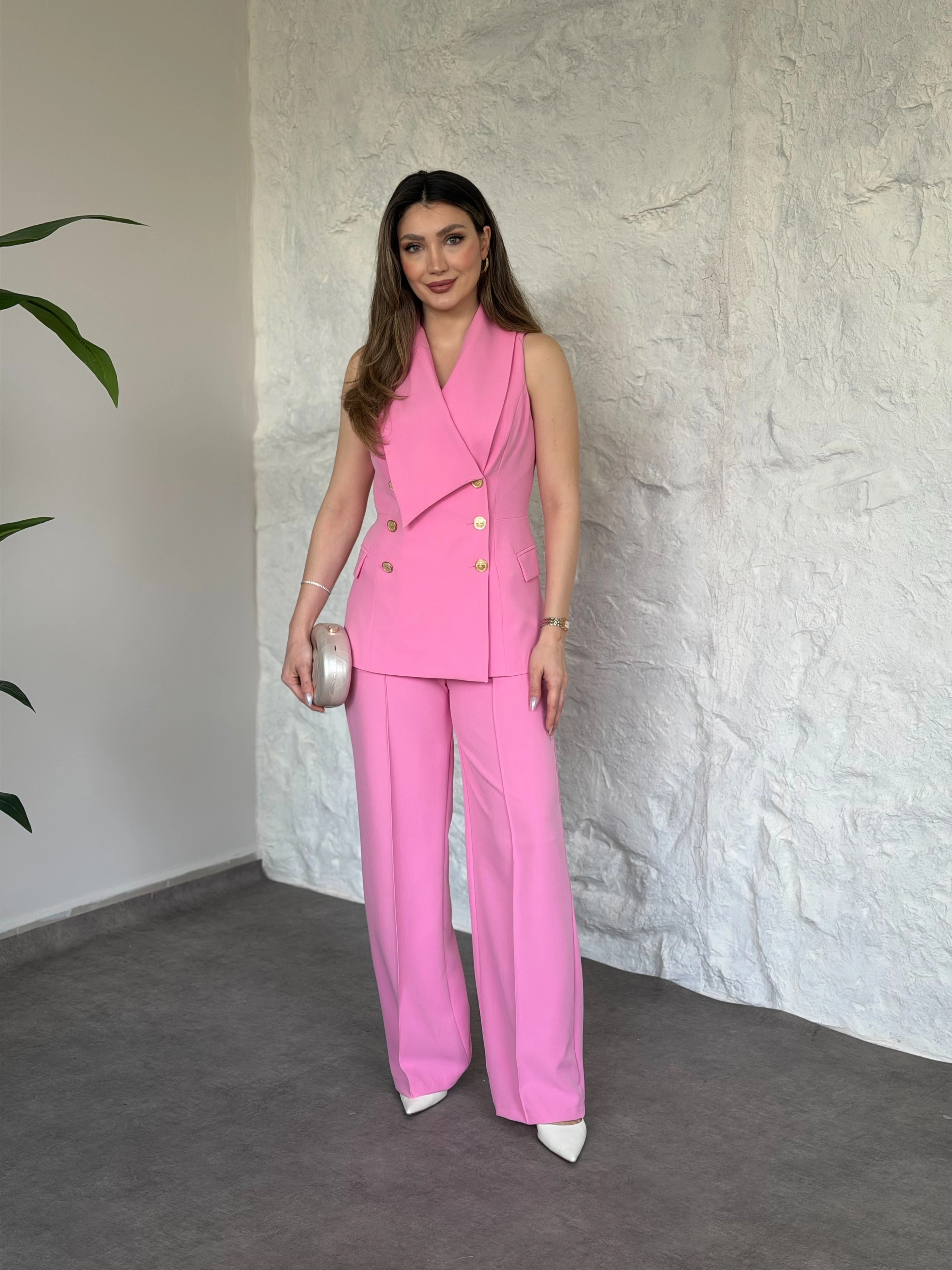 Kruvaze yaka gold düğmeli takım bebek mavisi