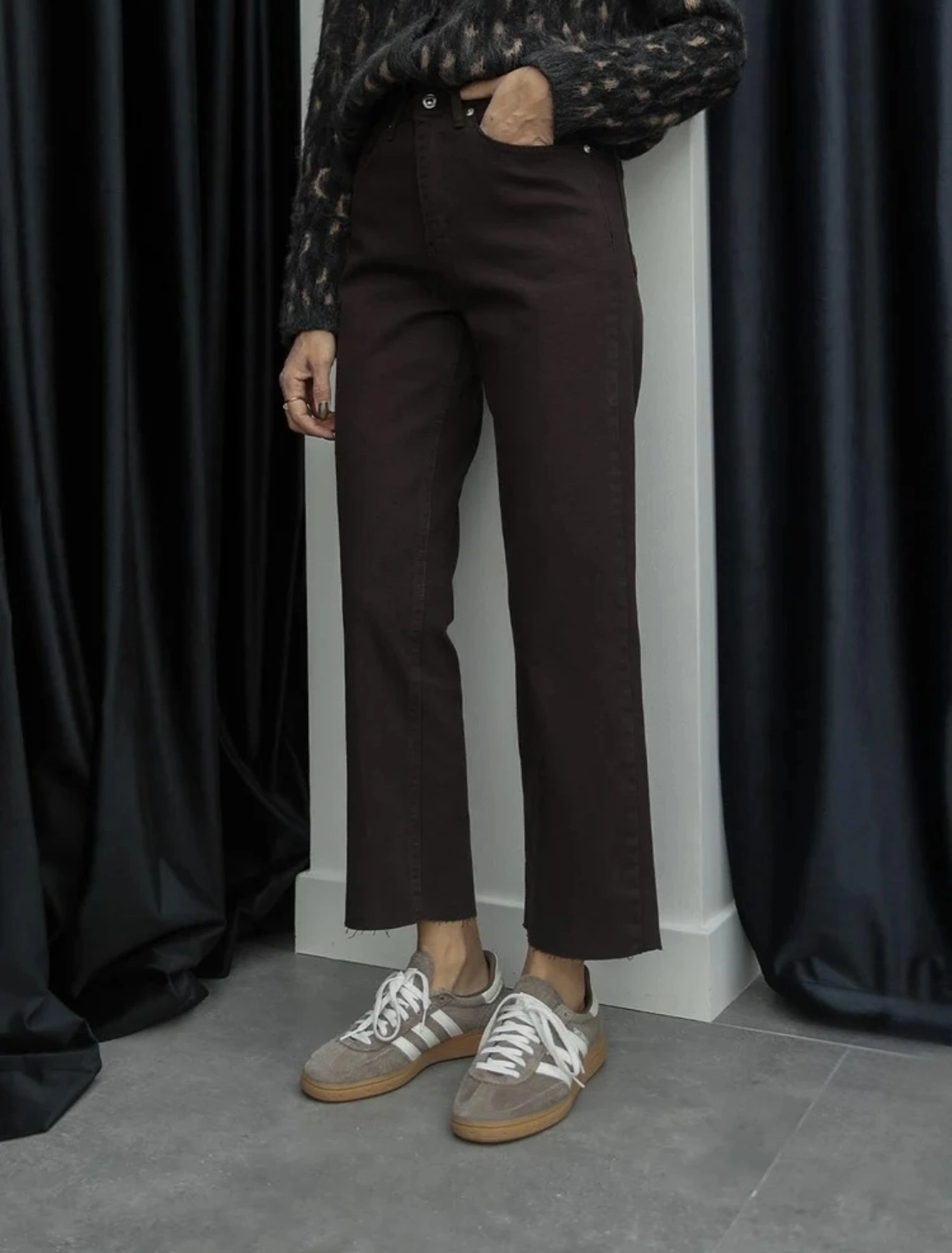 Marka etiketli boyfit jean kahverengi
