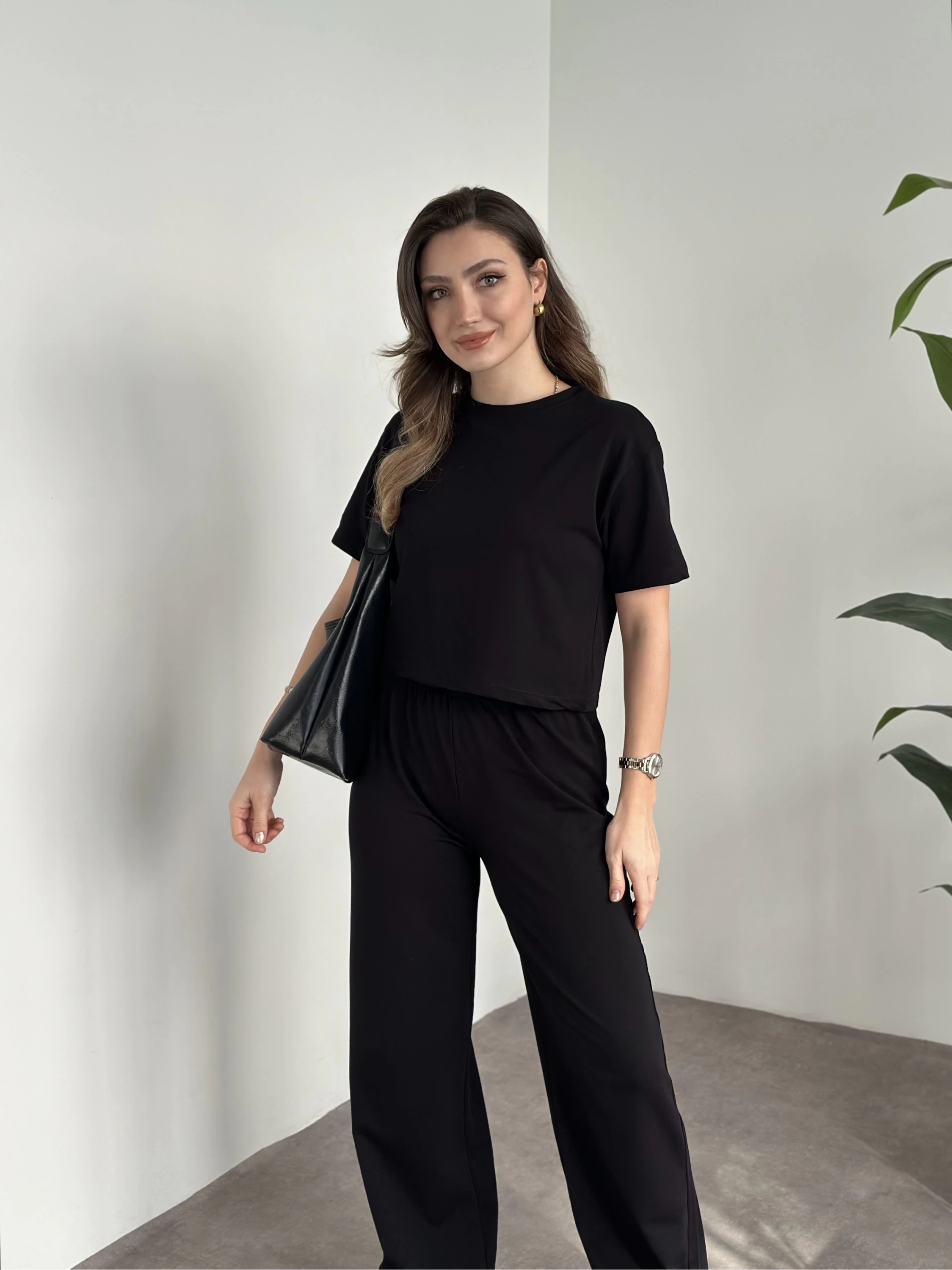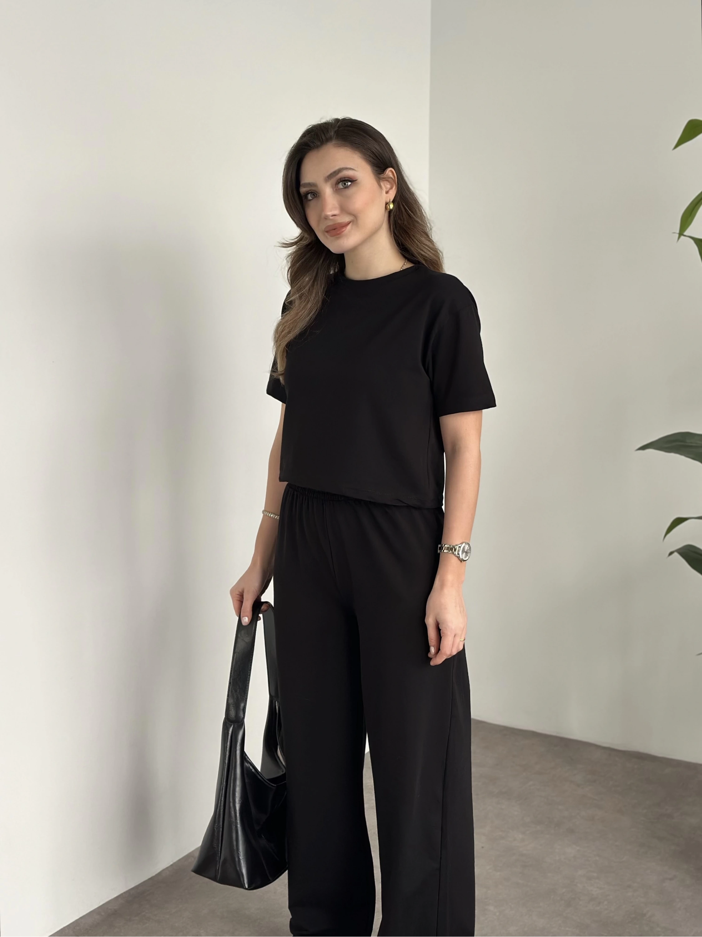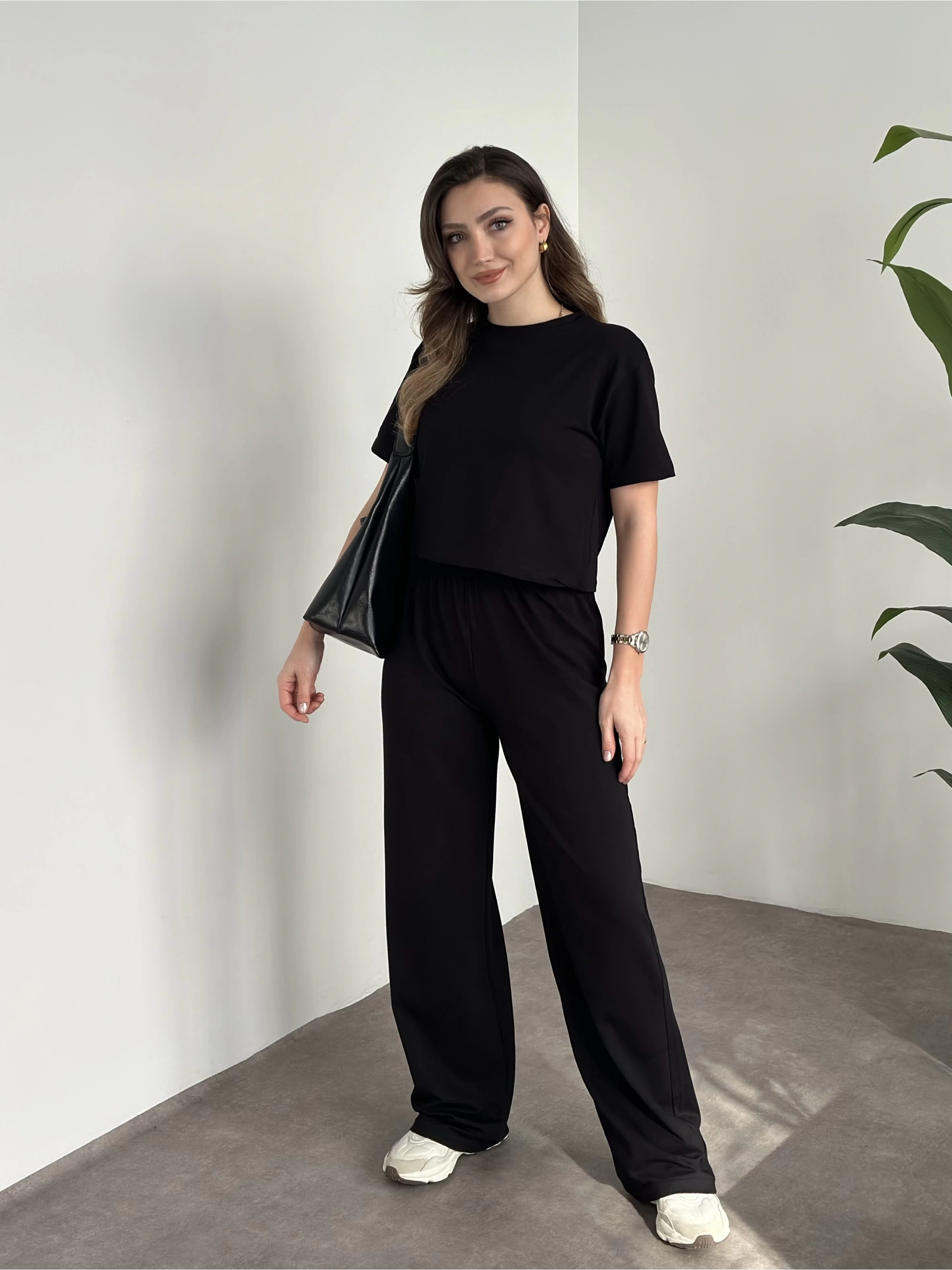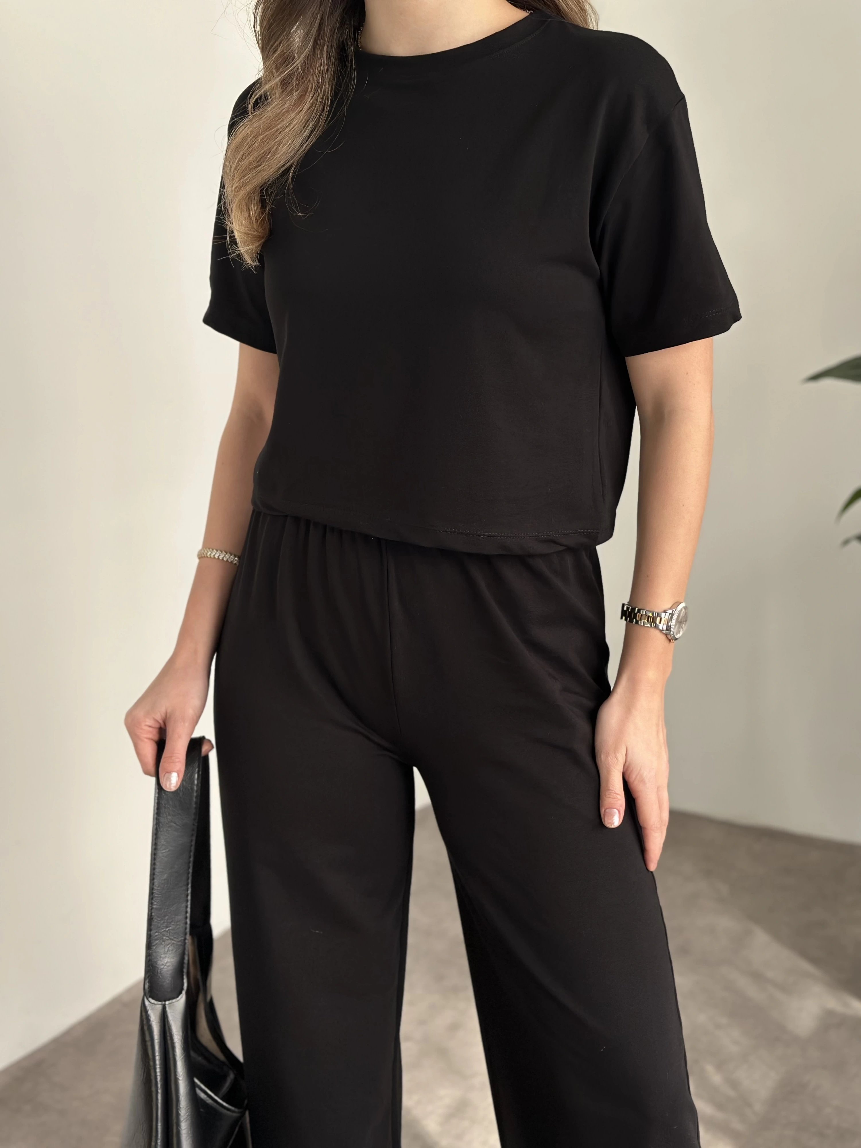 Marka etiketli modal iki iplik eşofman takımı siyah