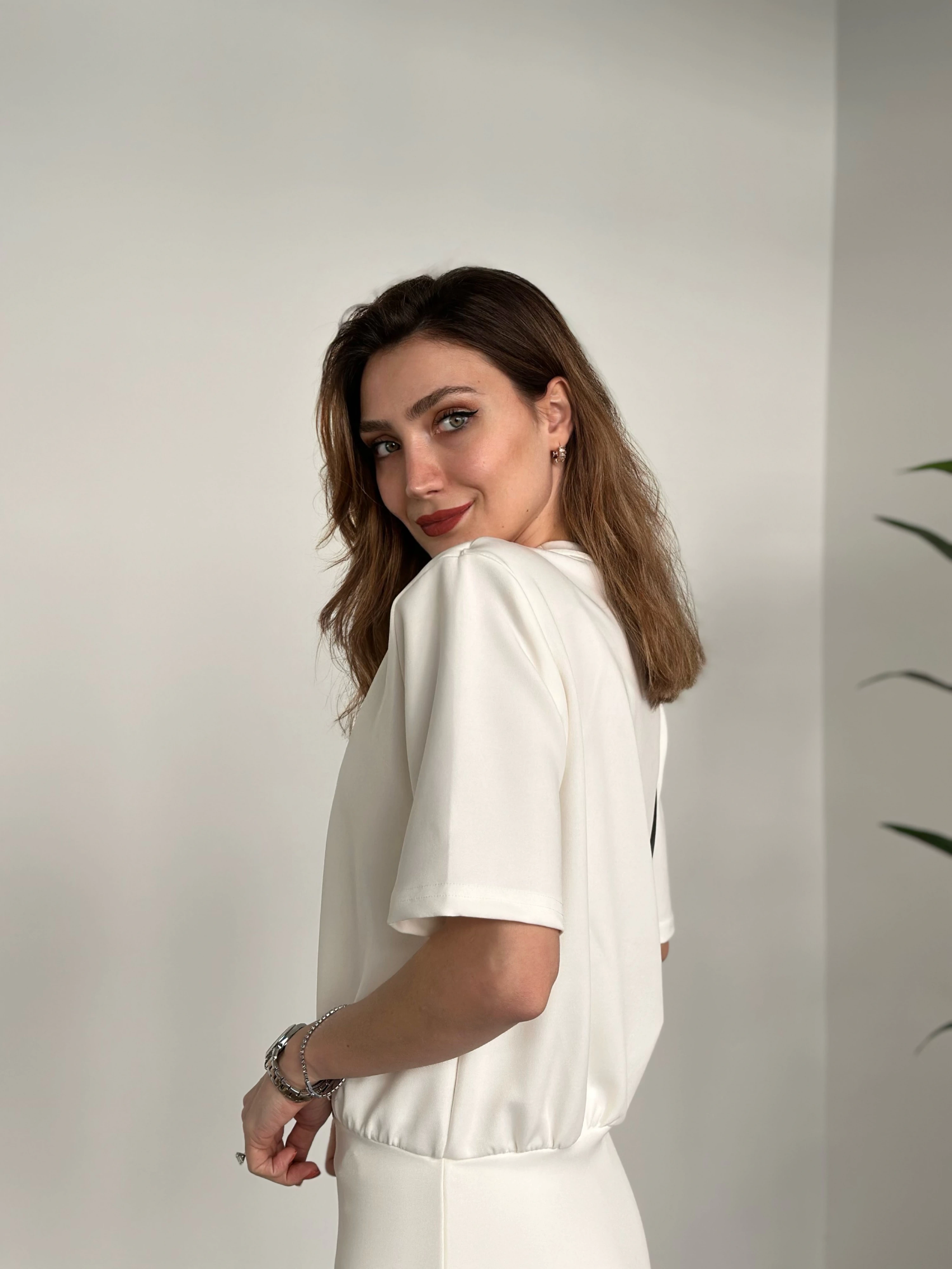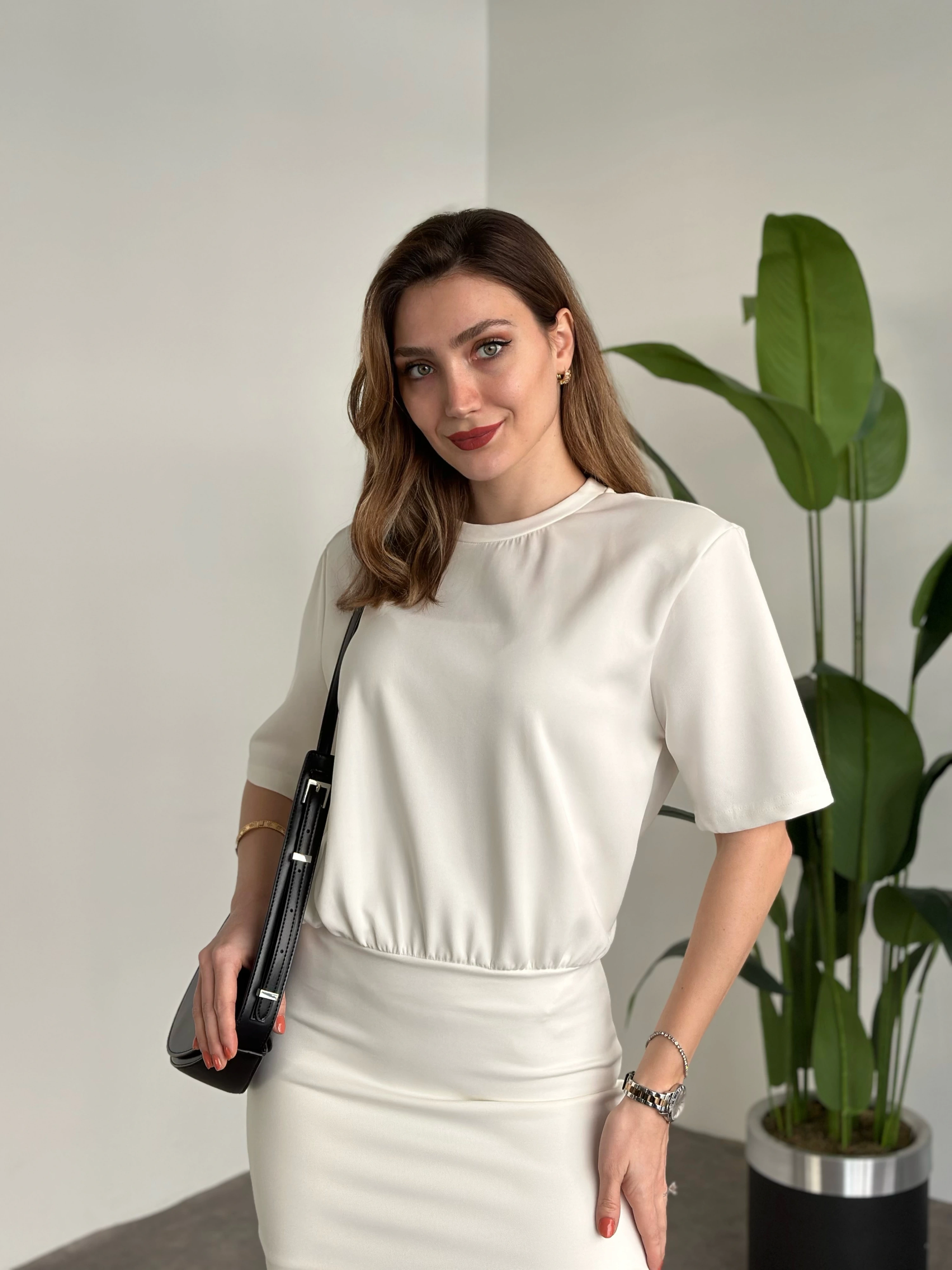 Marka Model Vatkalı İthal Sandy Kumaş Elbise Beyaz
