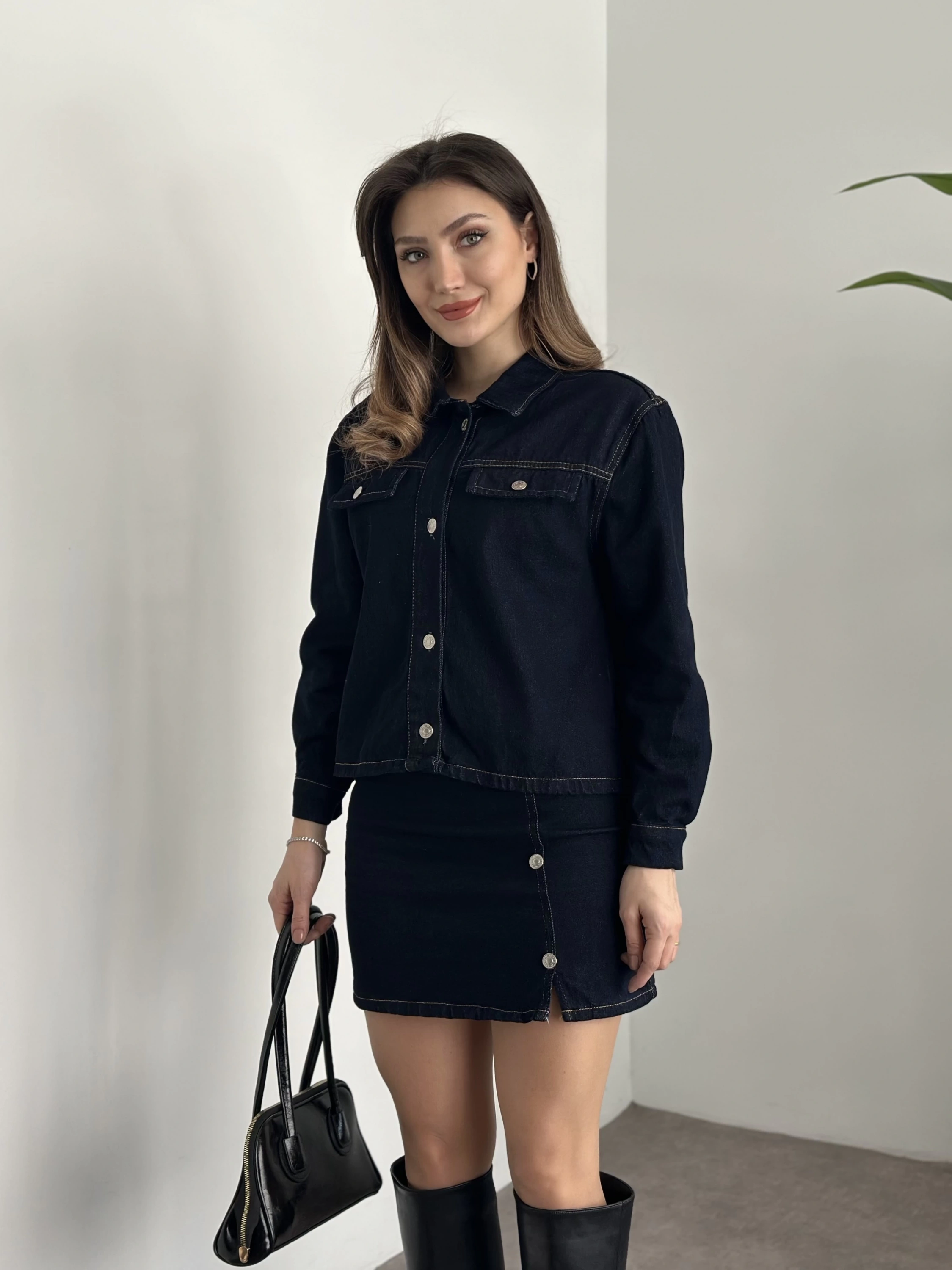 Premium yandan bağlama detaylı double kumaş takım lacivert