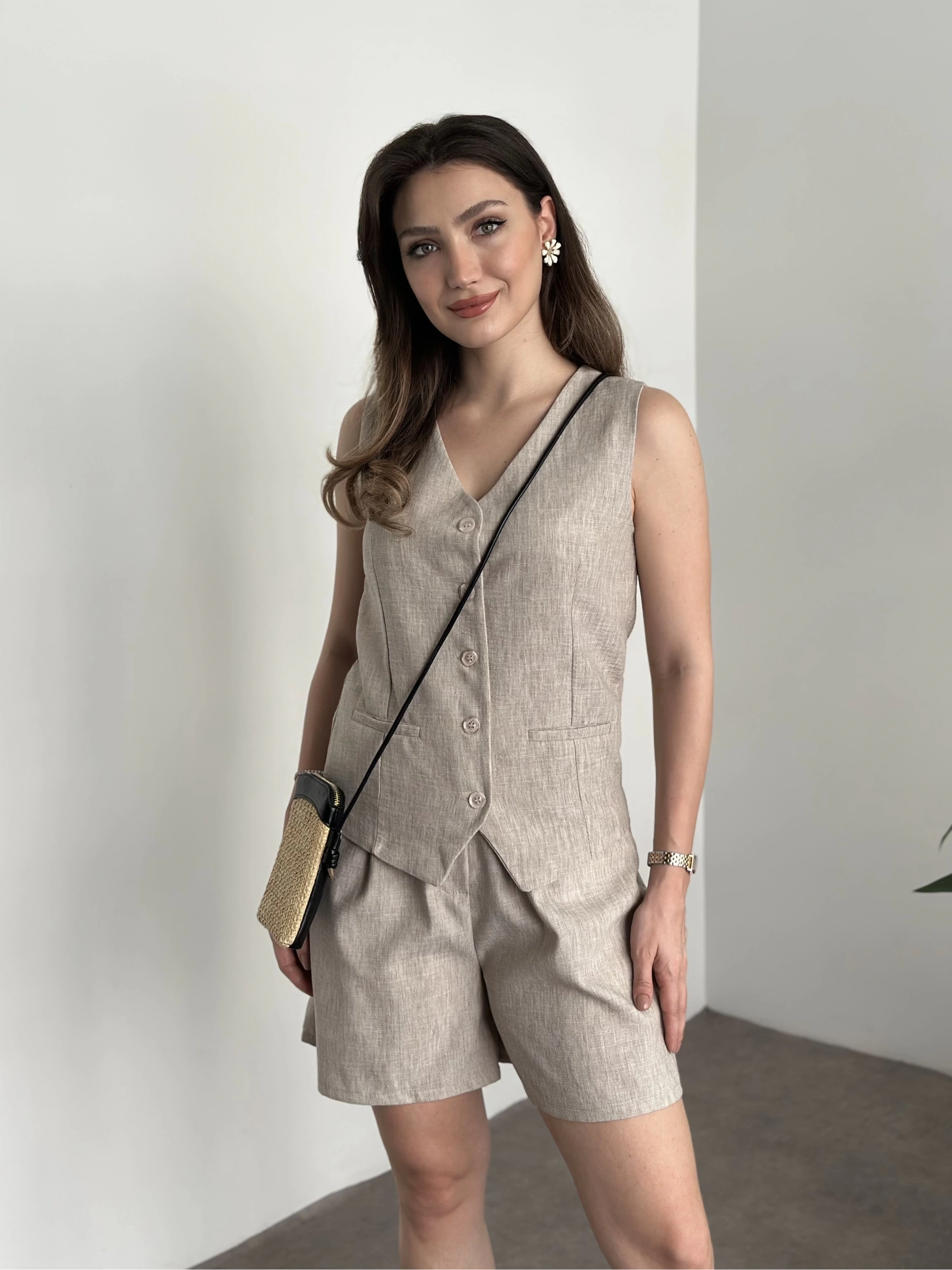 Premium yandan bağlama detaylı double kumaş takım kahve