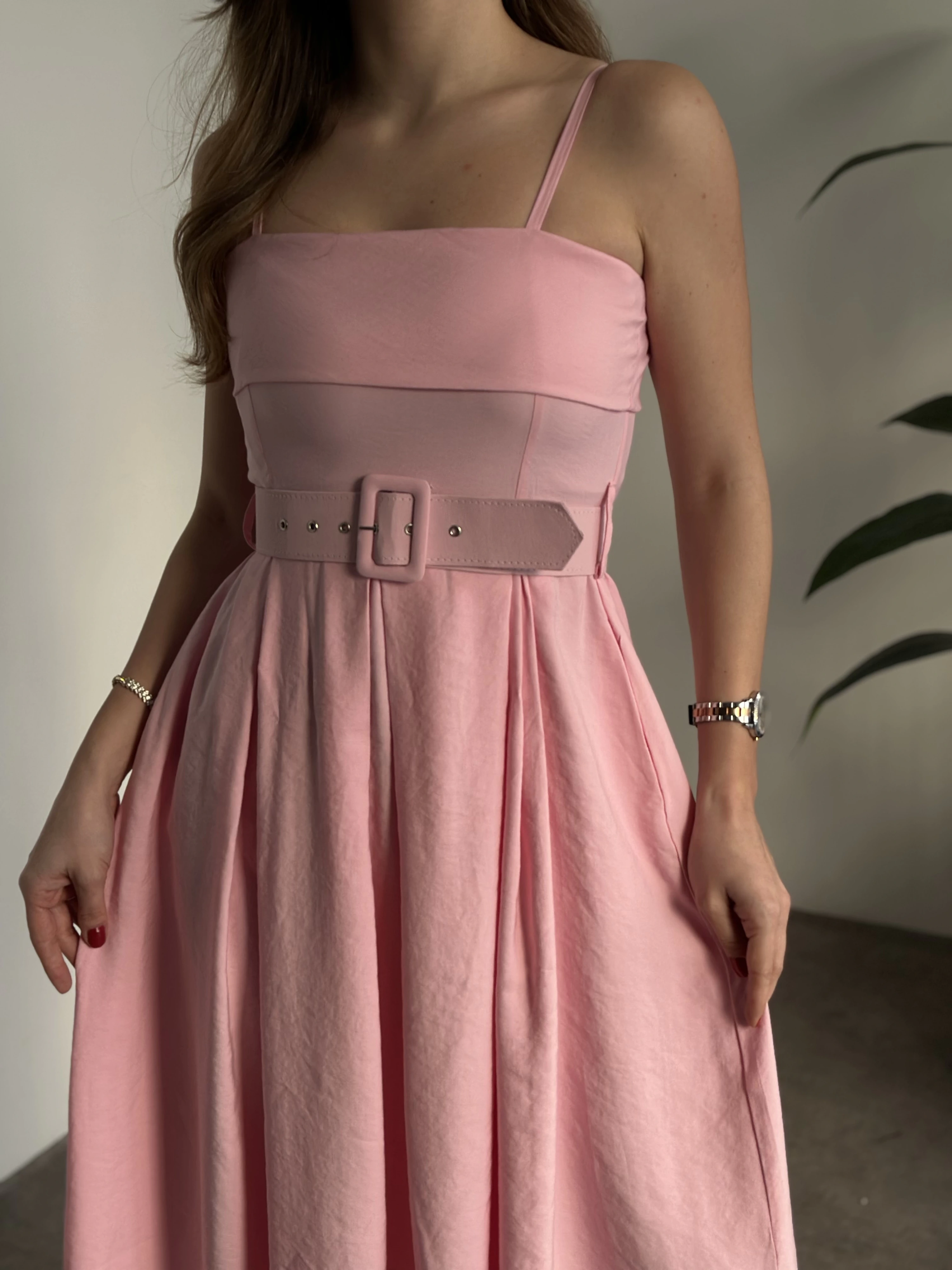 Keten korseli elbise pembe