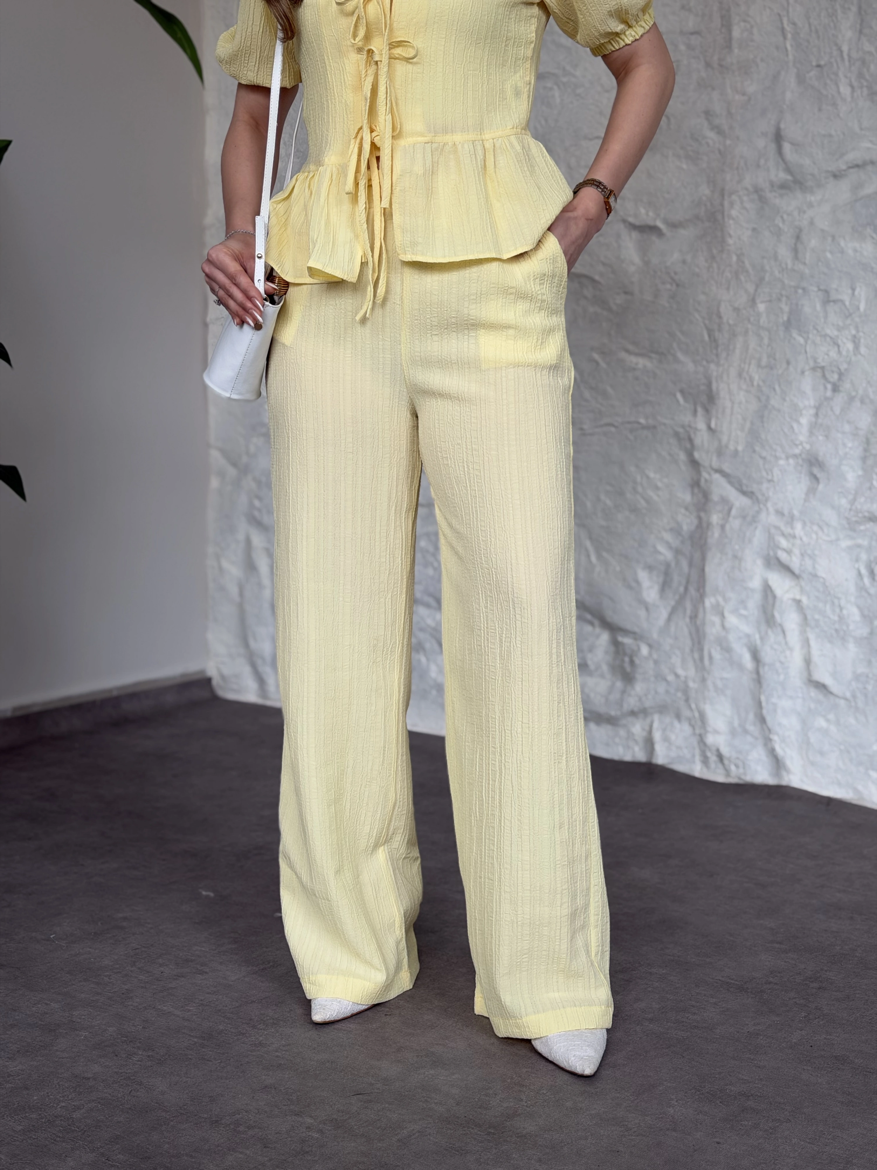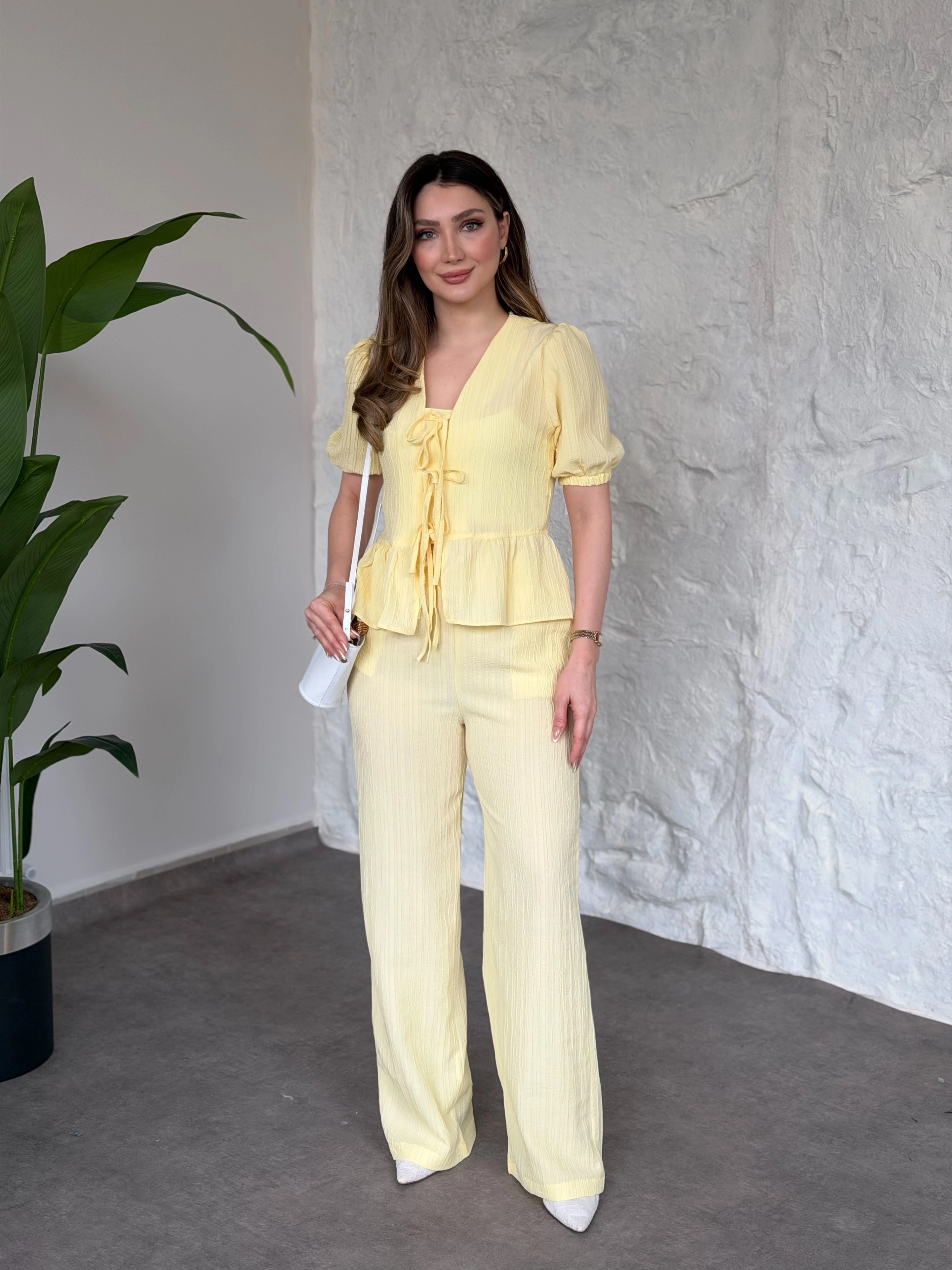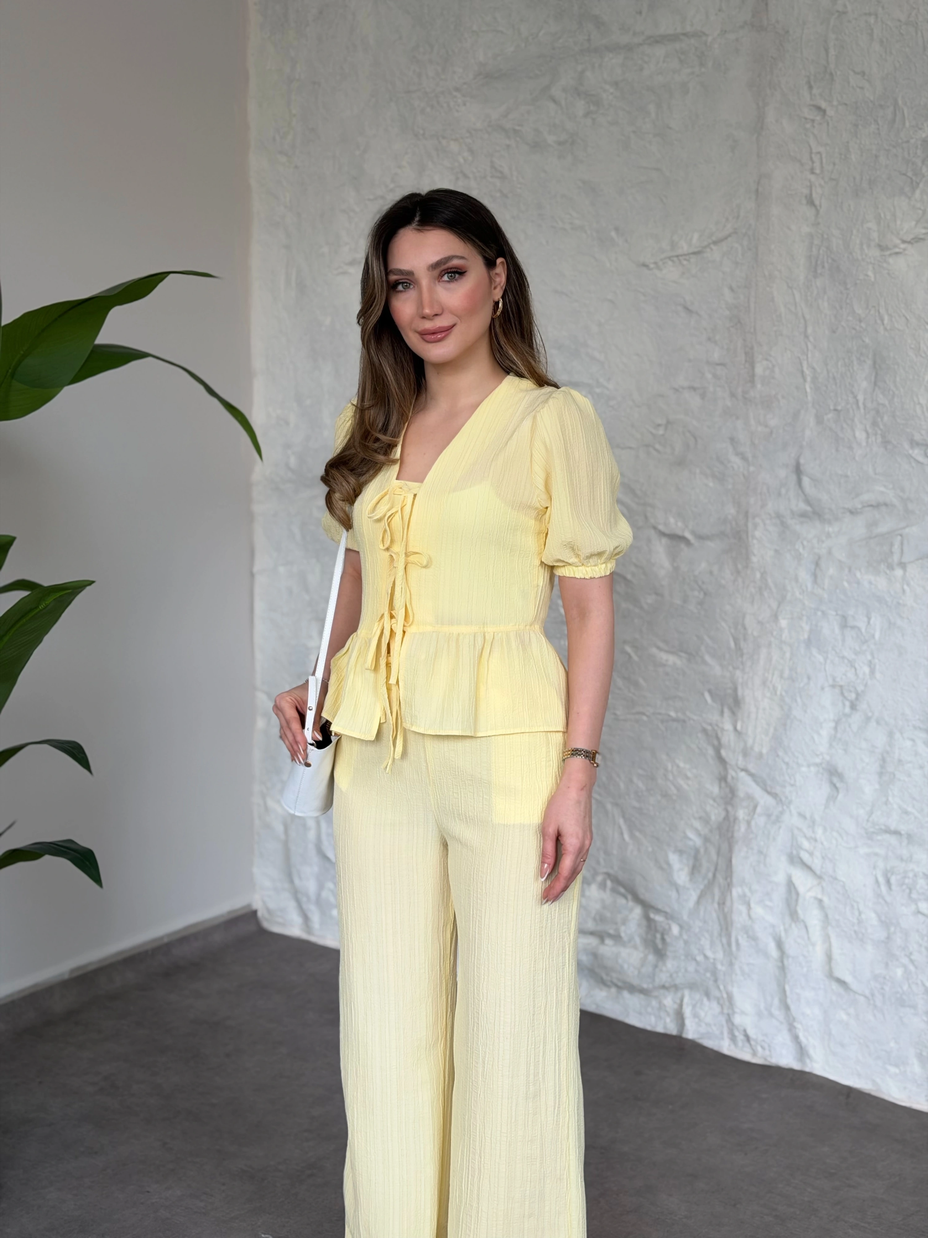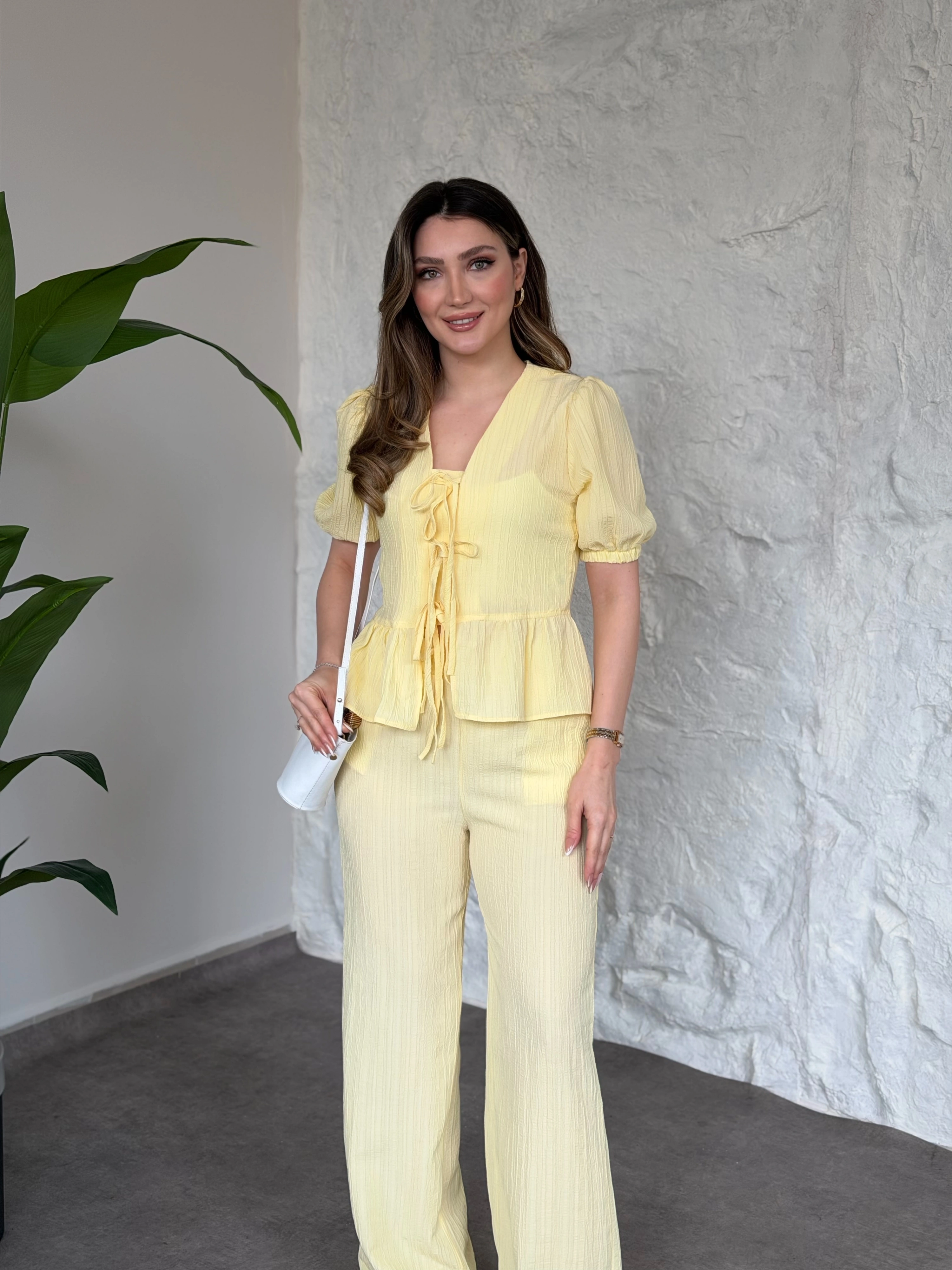 Önden bağlama detaylı gofre kumaş takım yeşil