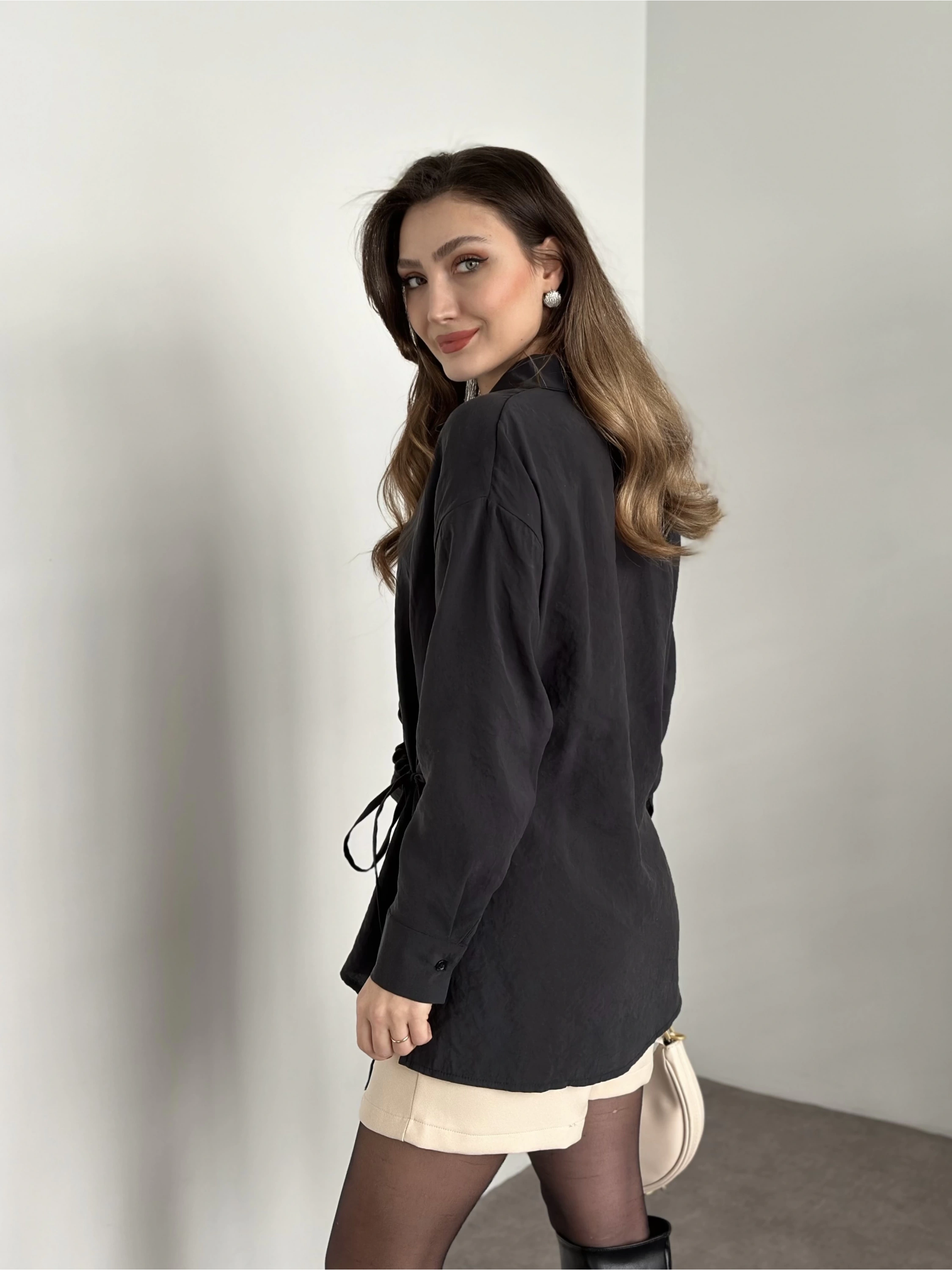Sırtı bağlama dekolte detaylı tensel kumaş takım vizon