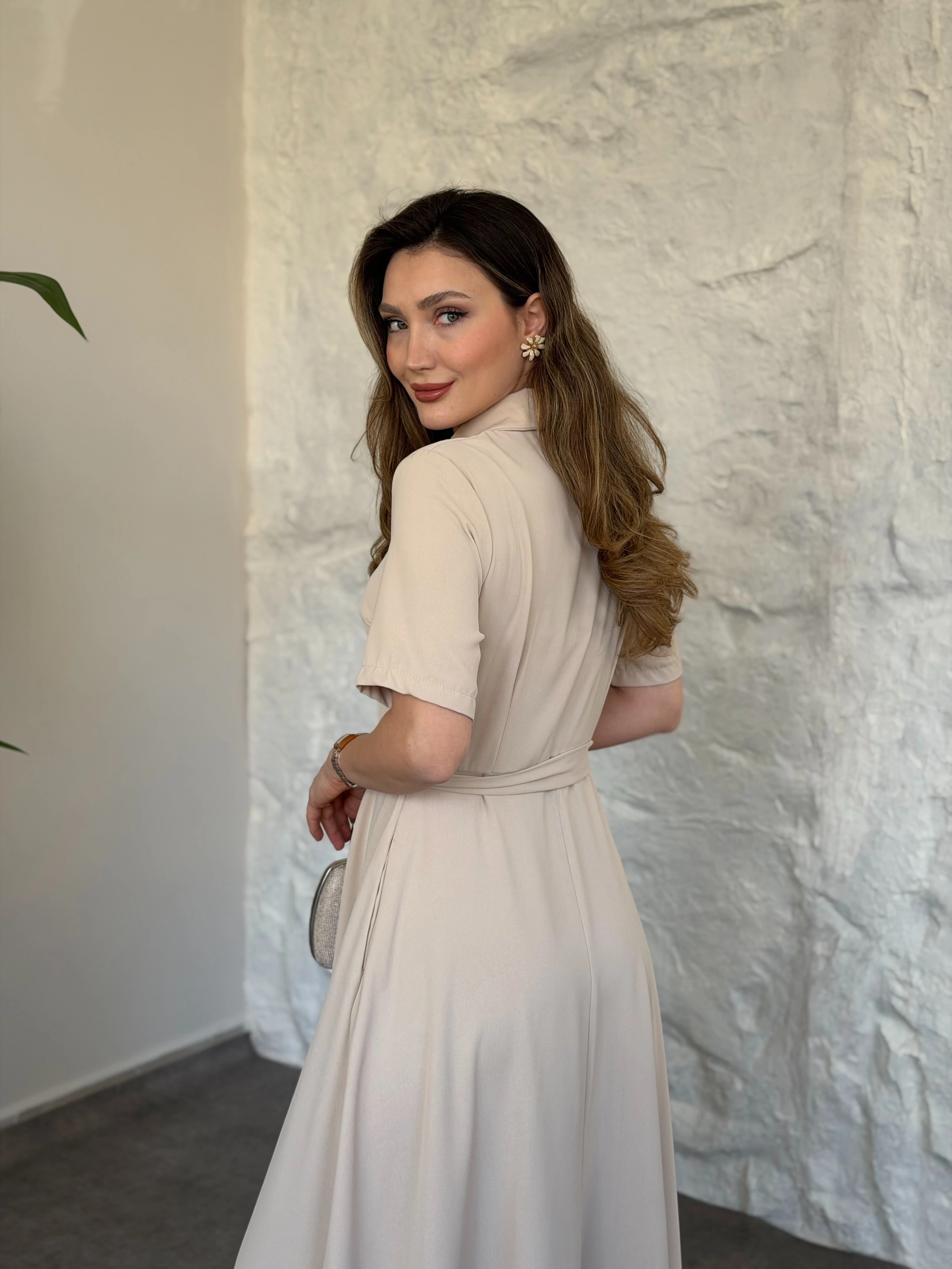 Yarasa kol maxi elbise bej