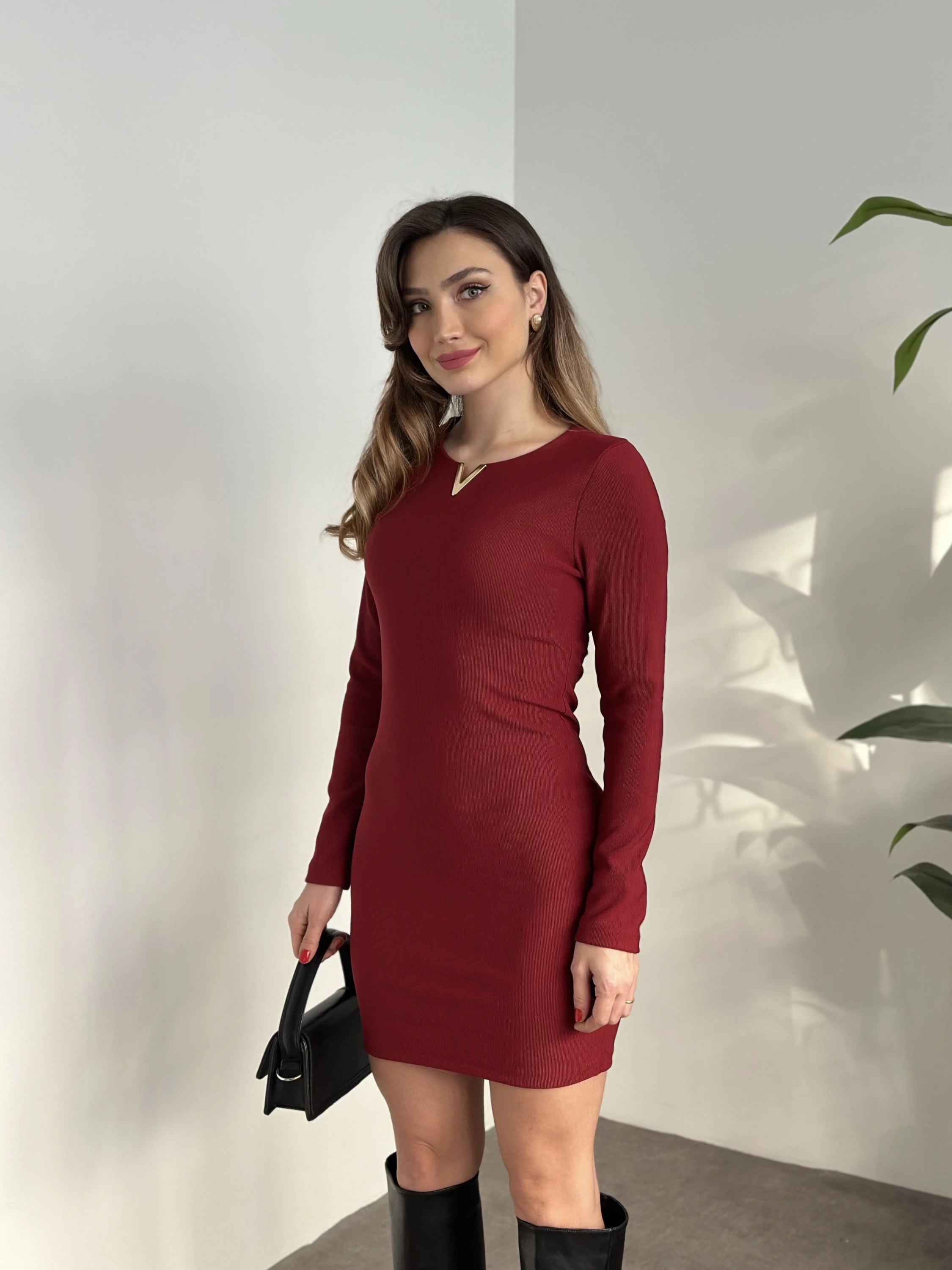 Ottoman kumaş yaka detaylı elbise kırmızı