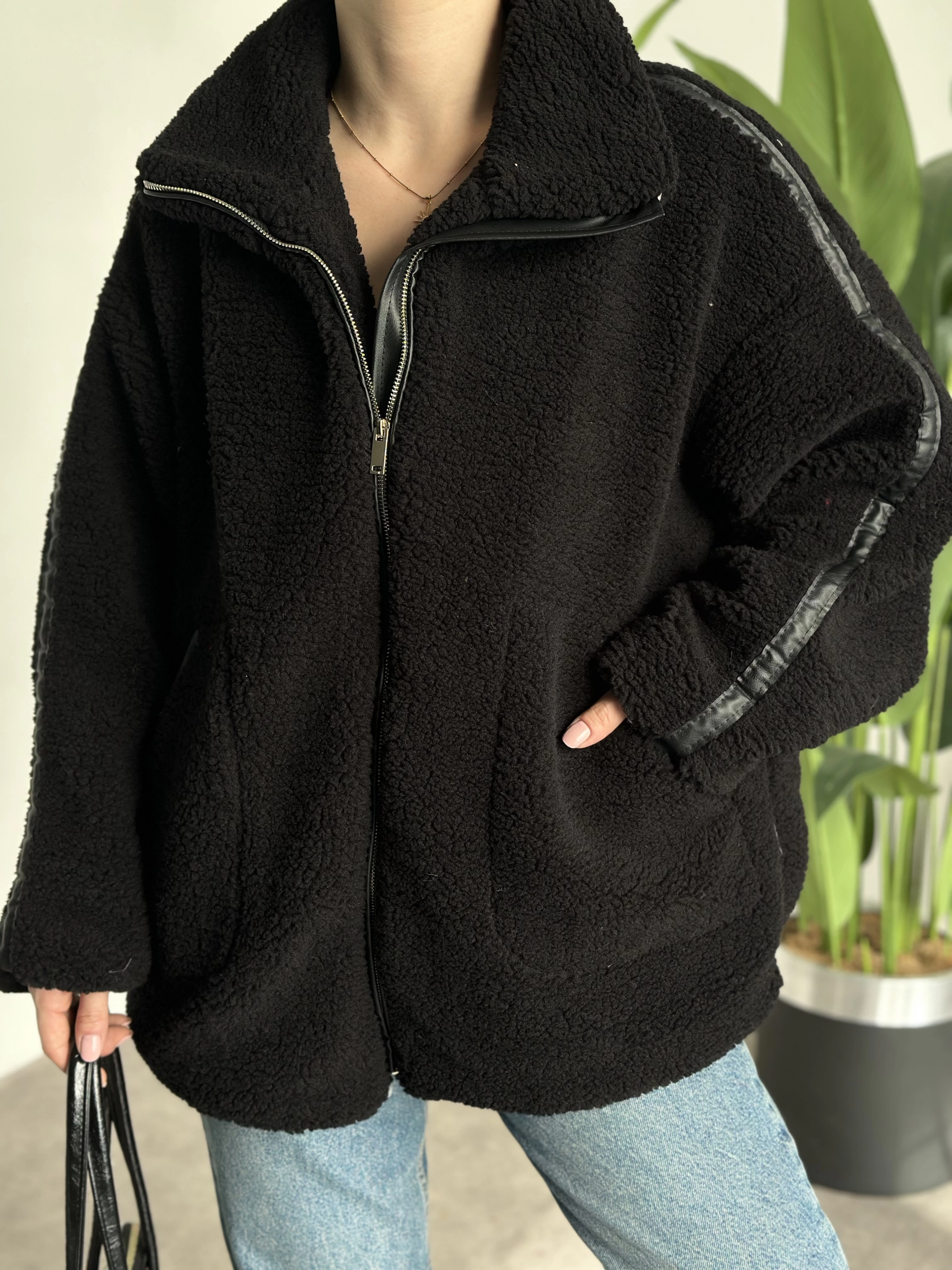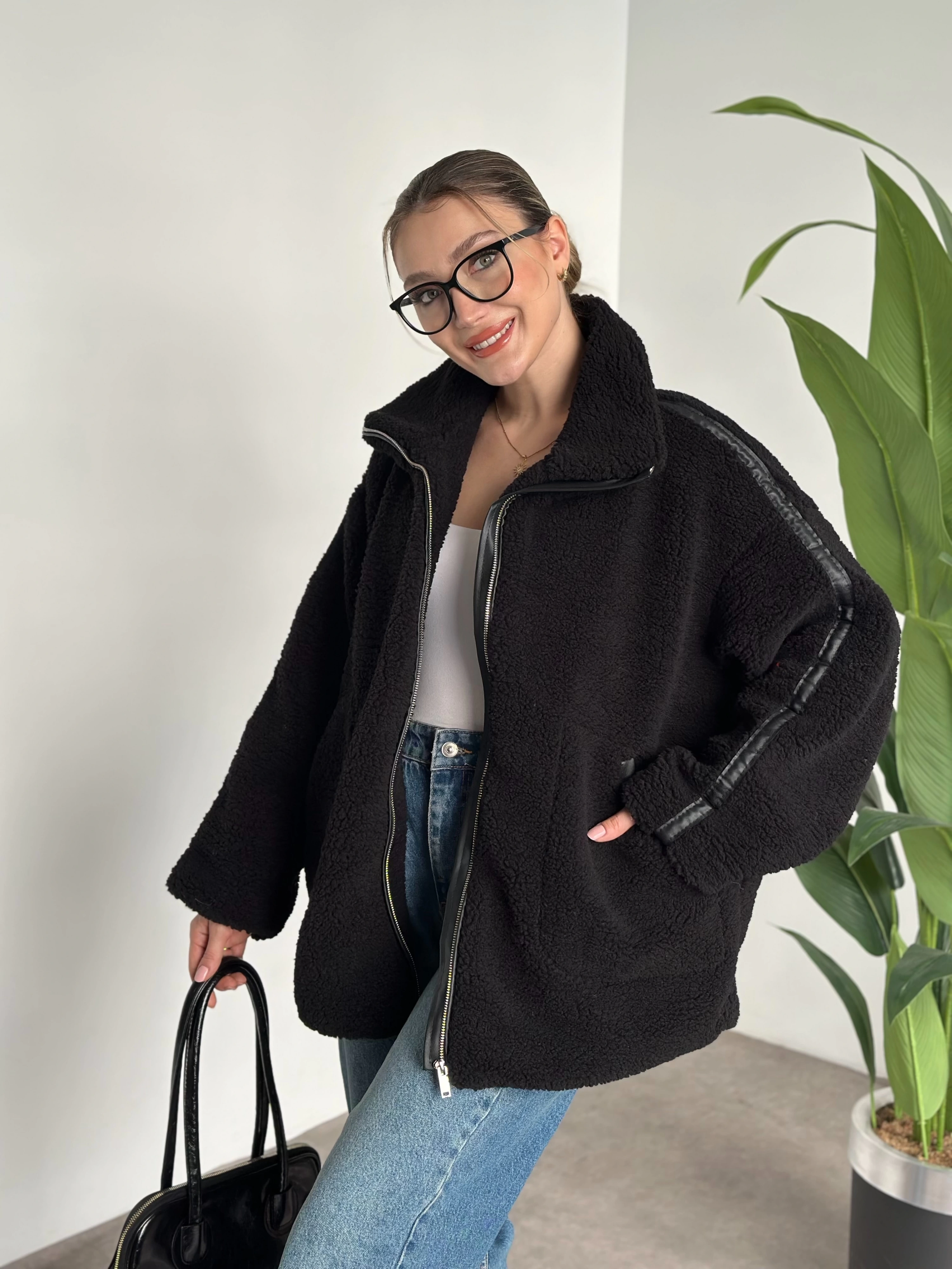 Dokulu süet içi peluşlu oversize marka model mont siyah