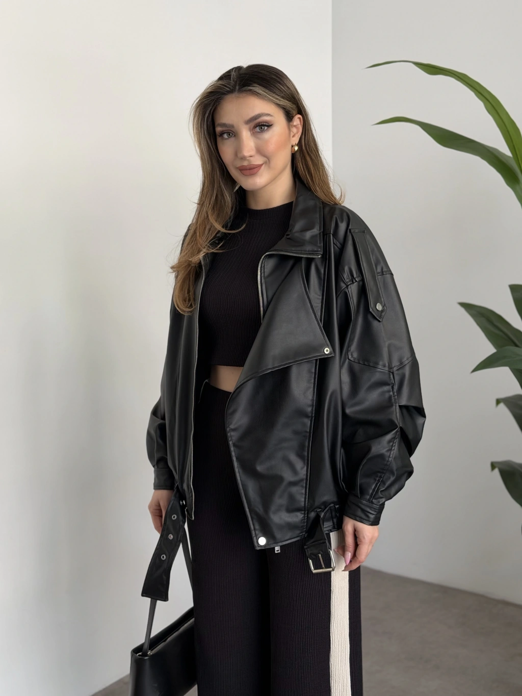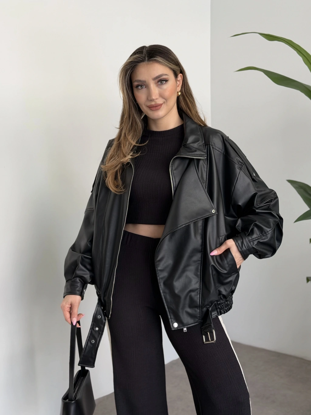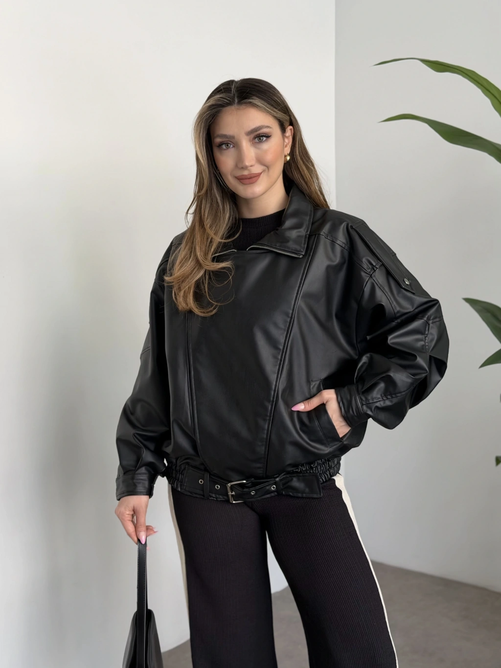 Dokulu süet içi peluşlu oversize marka model mont siyah