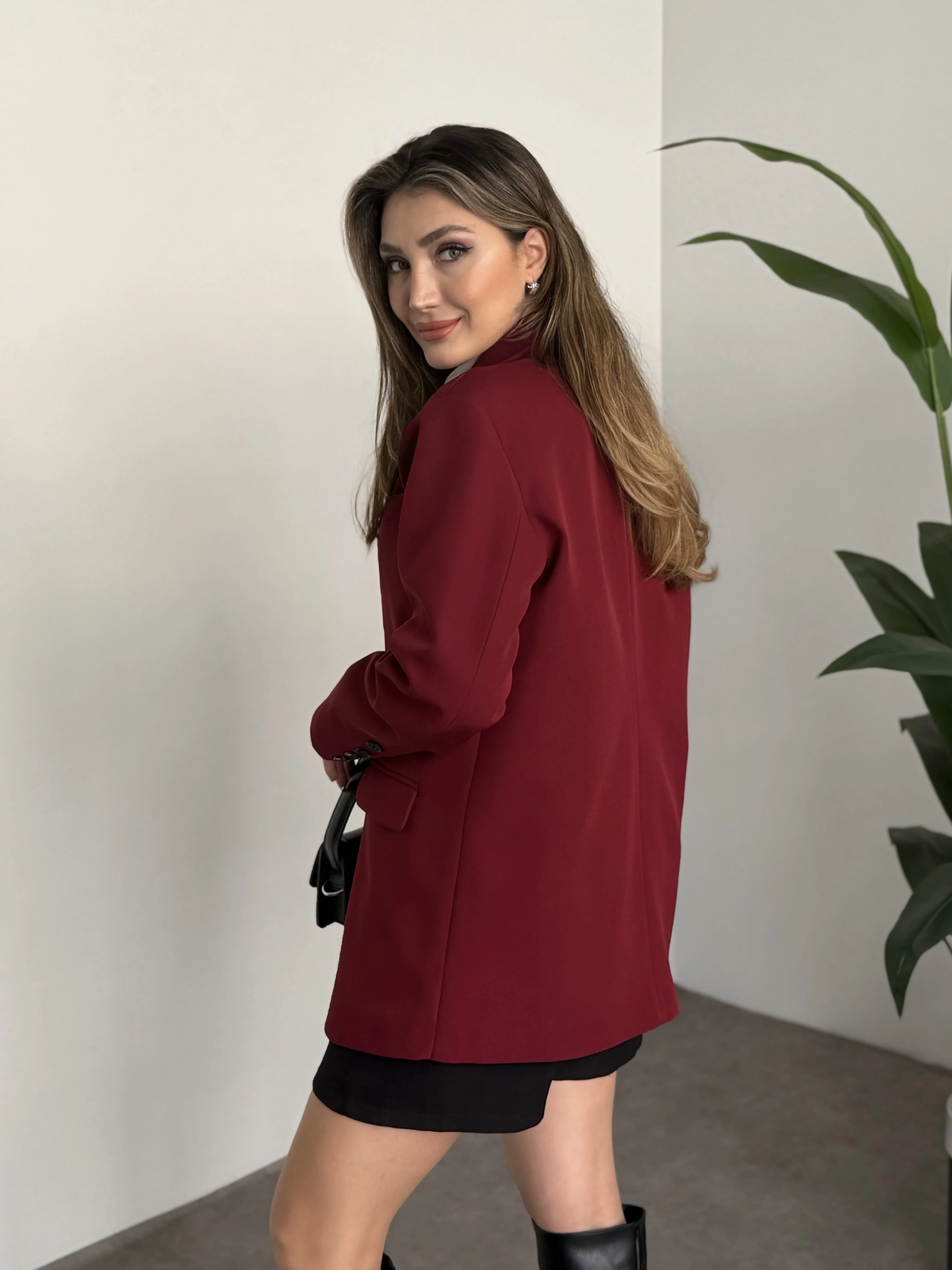 Oversize düğme detaylı blazer ceket bordo