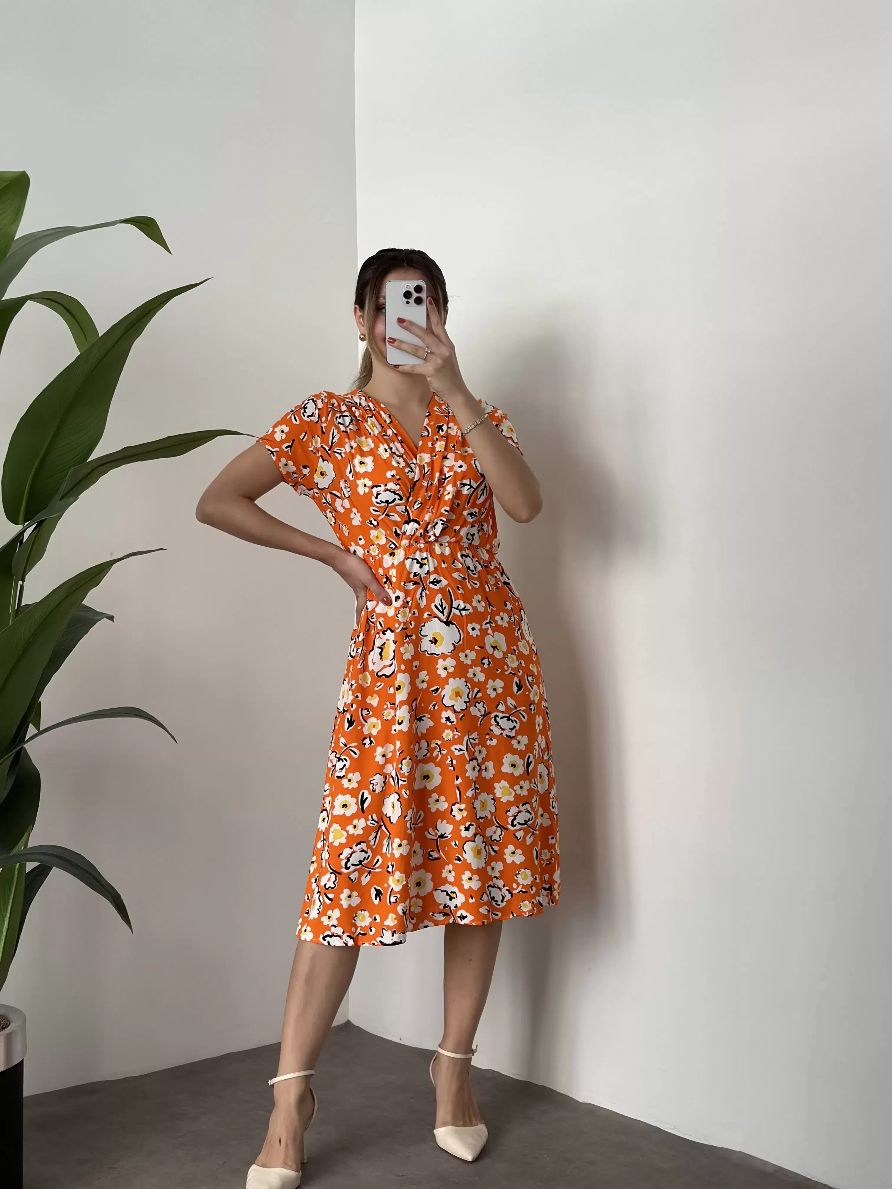 Yanları büzgülü aksesuar detaylı mini elbise kırmızı