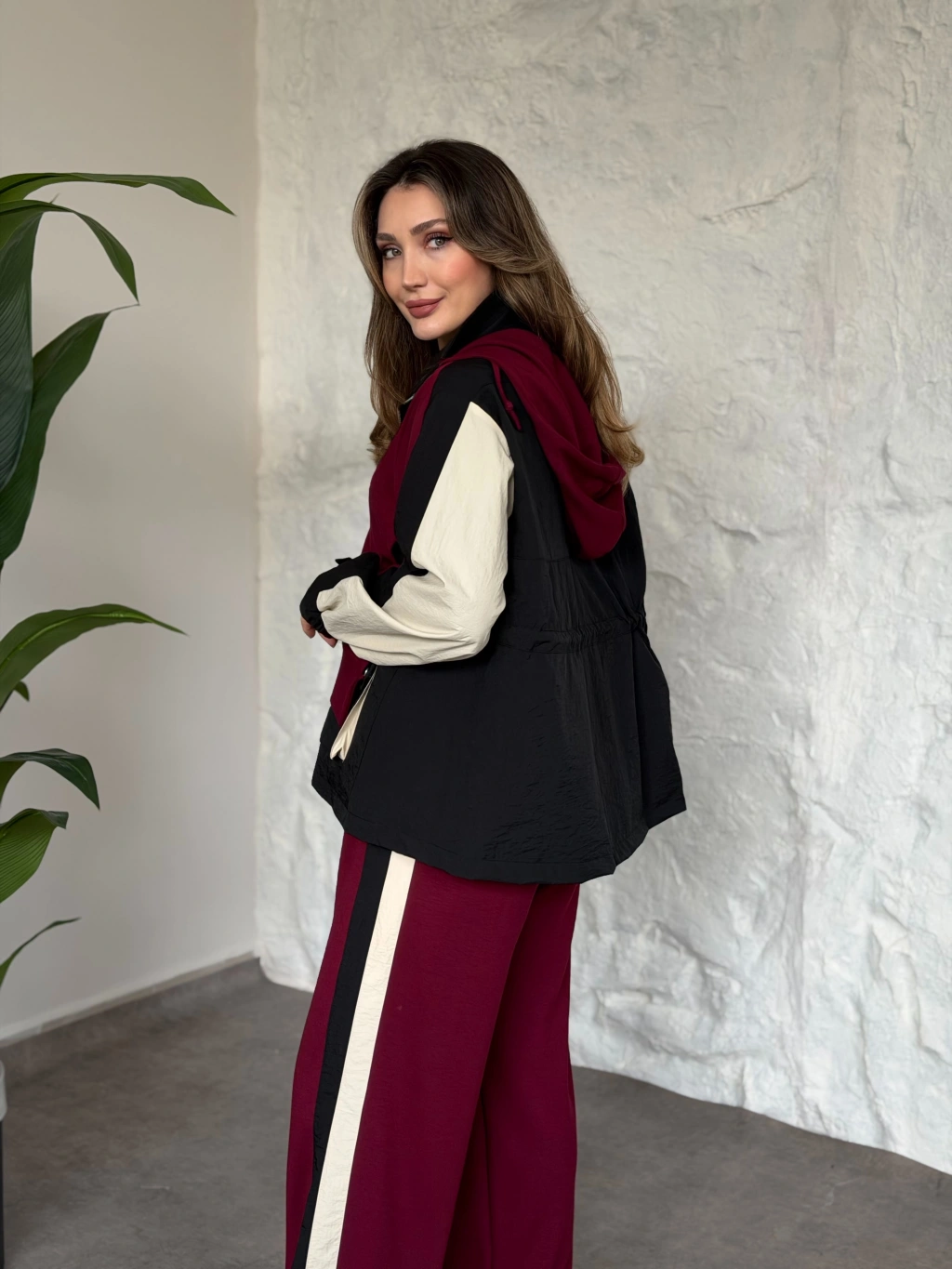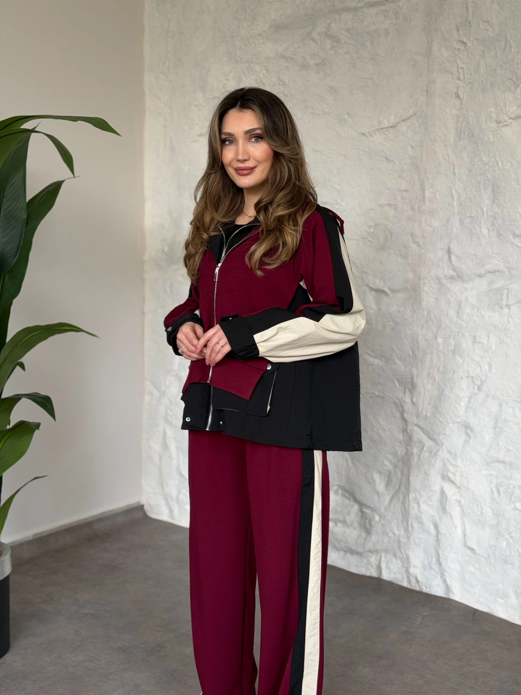 Premium yandan bağlama detaylı double kumaş takım bordo