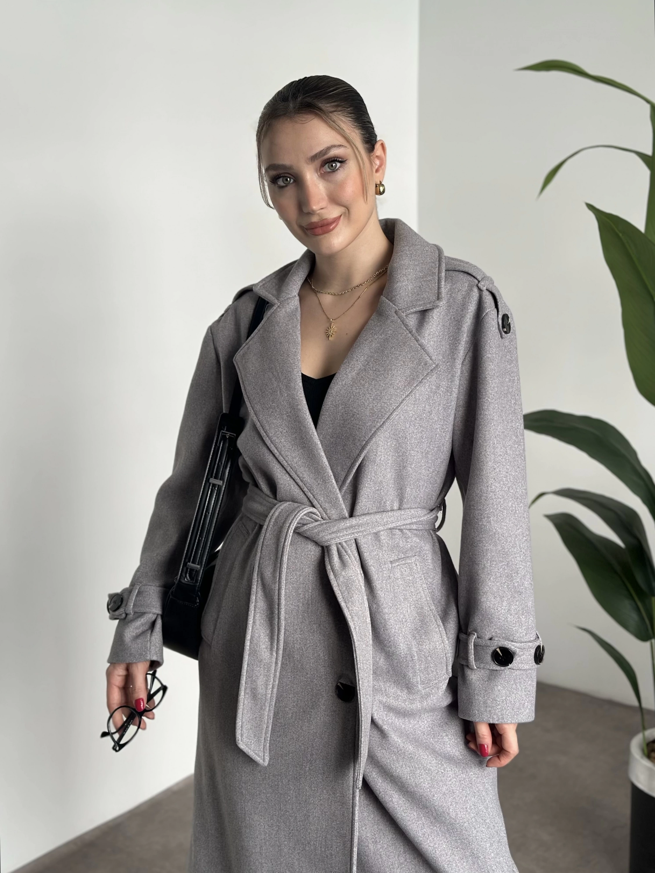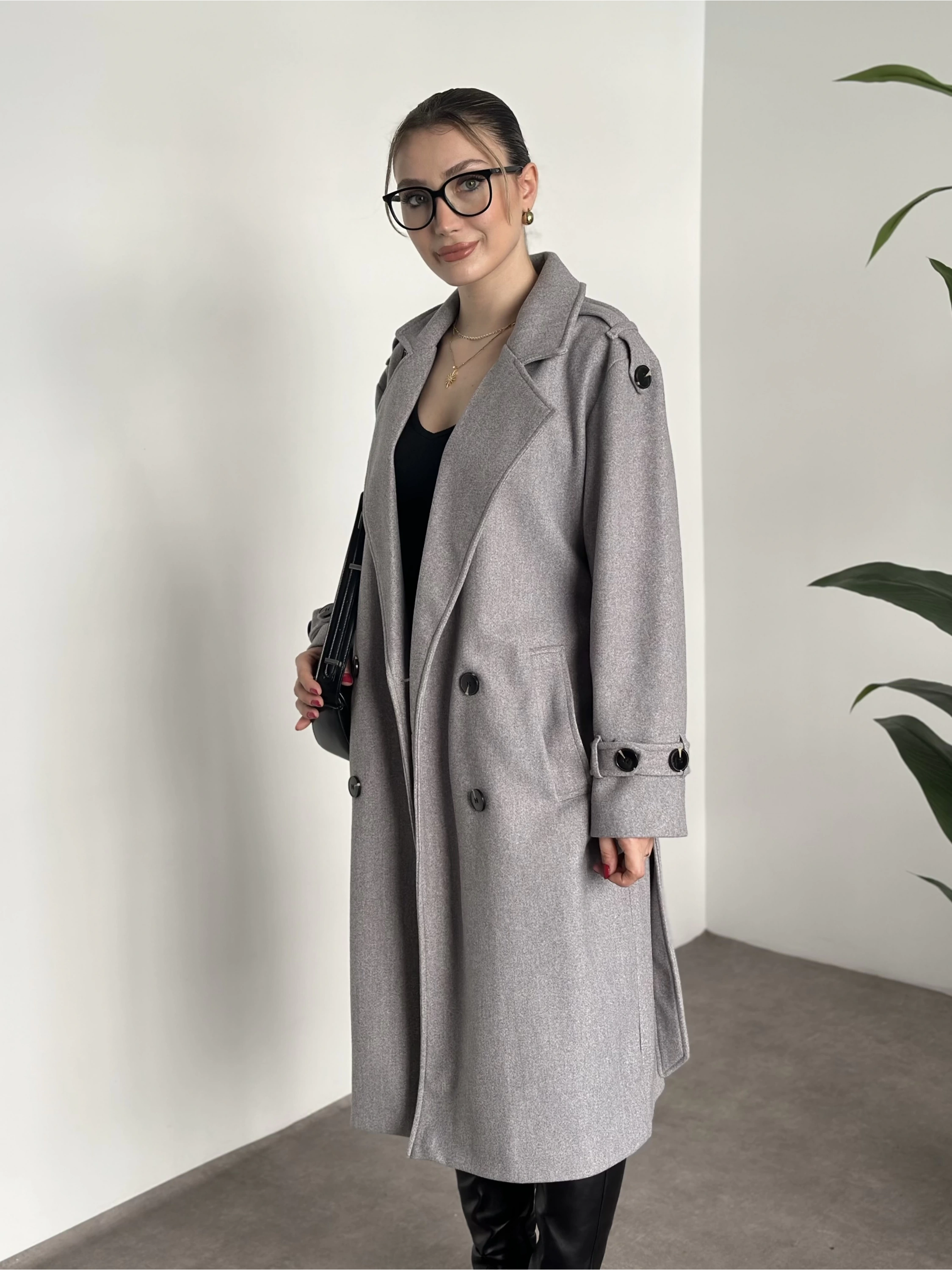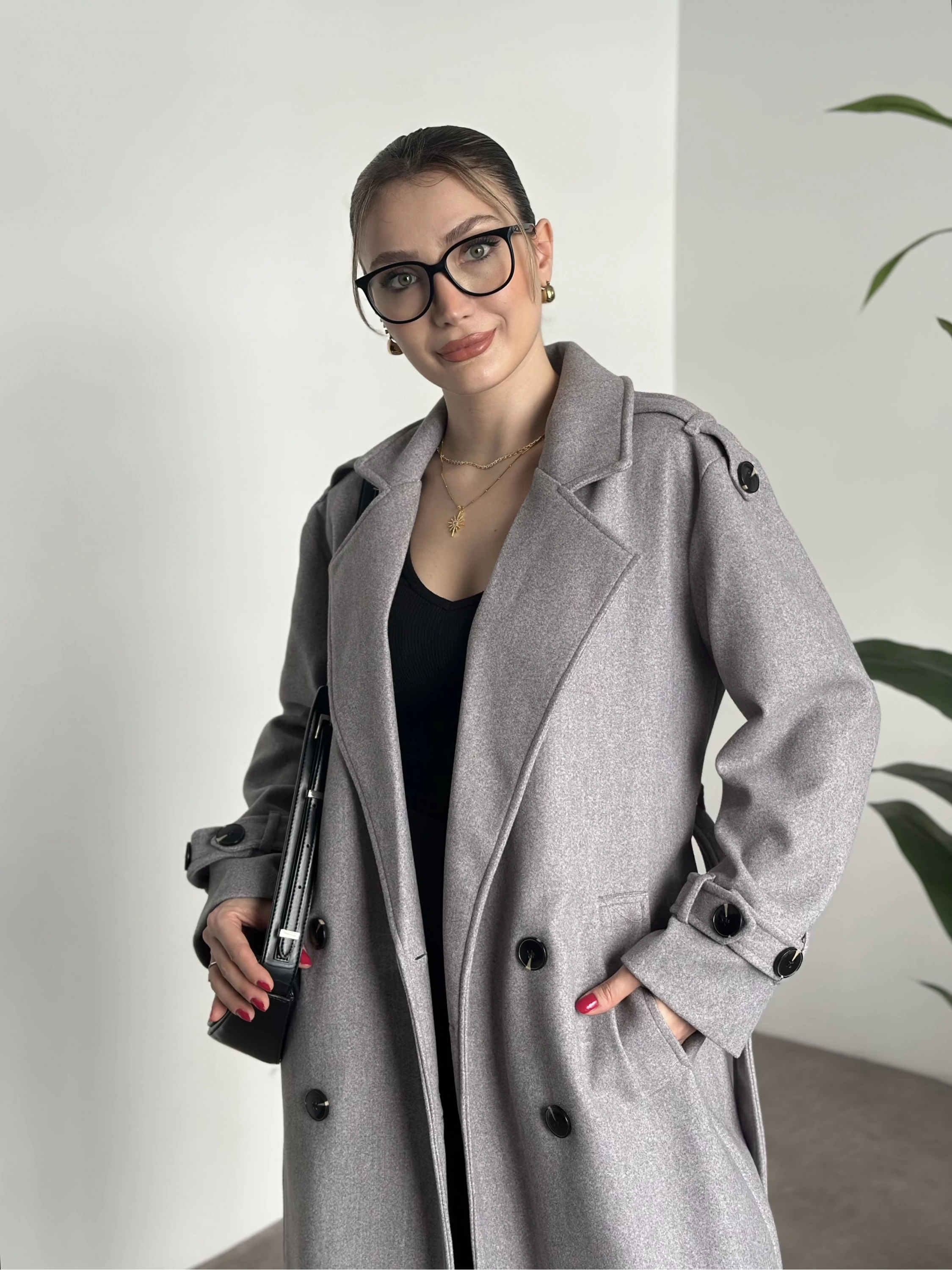 Oversize düğmeli astarlı bağlamalı kaşe kaban antrasit