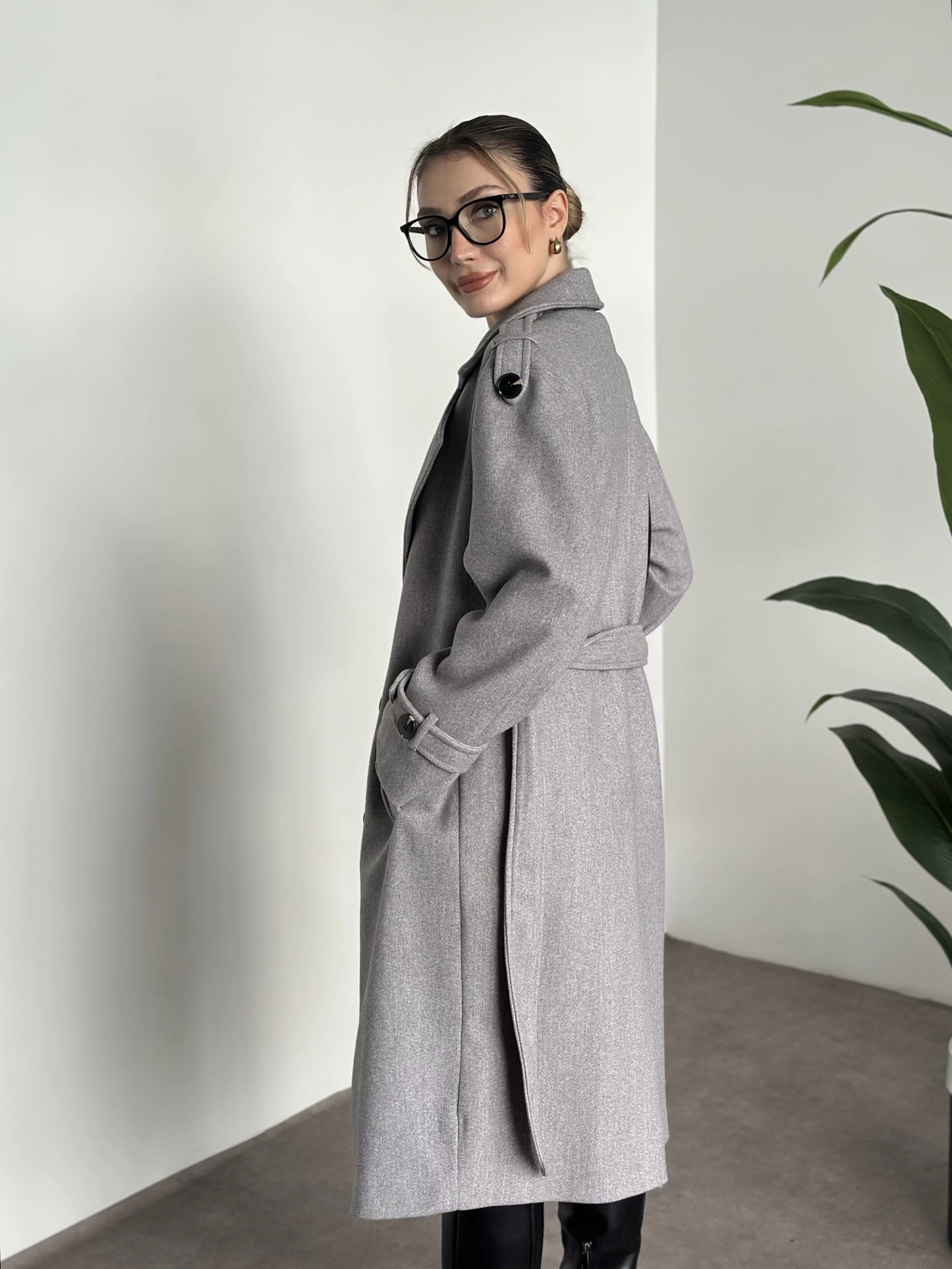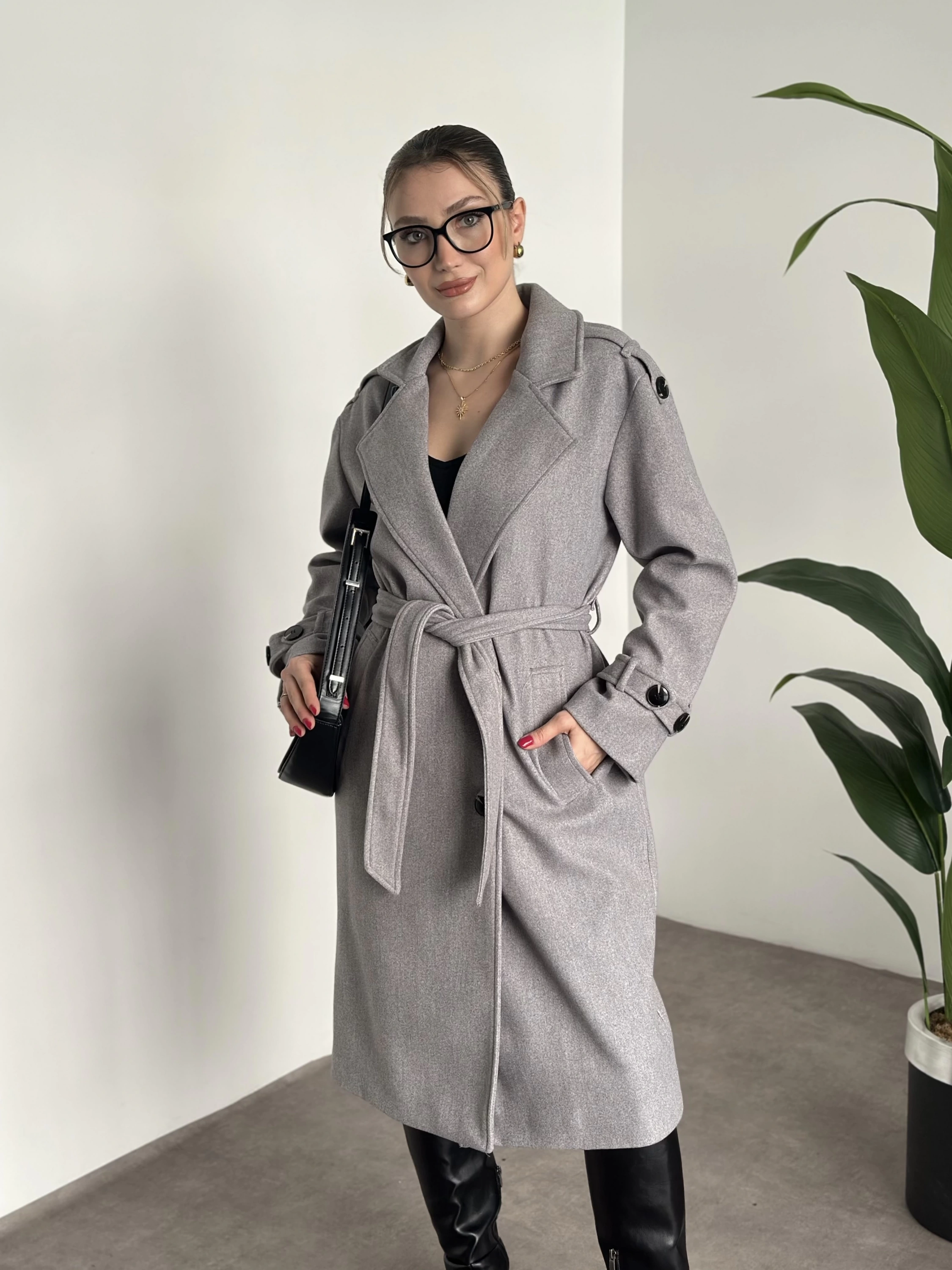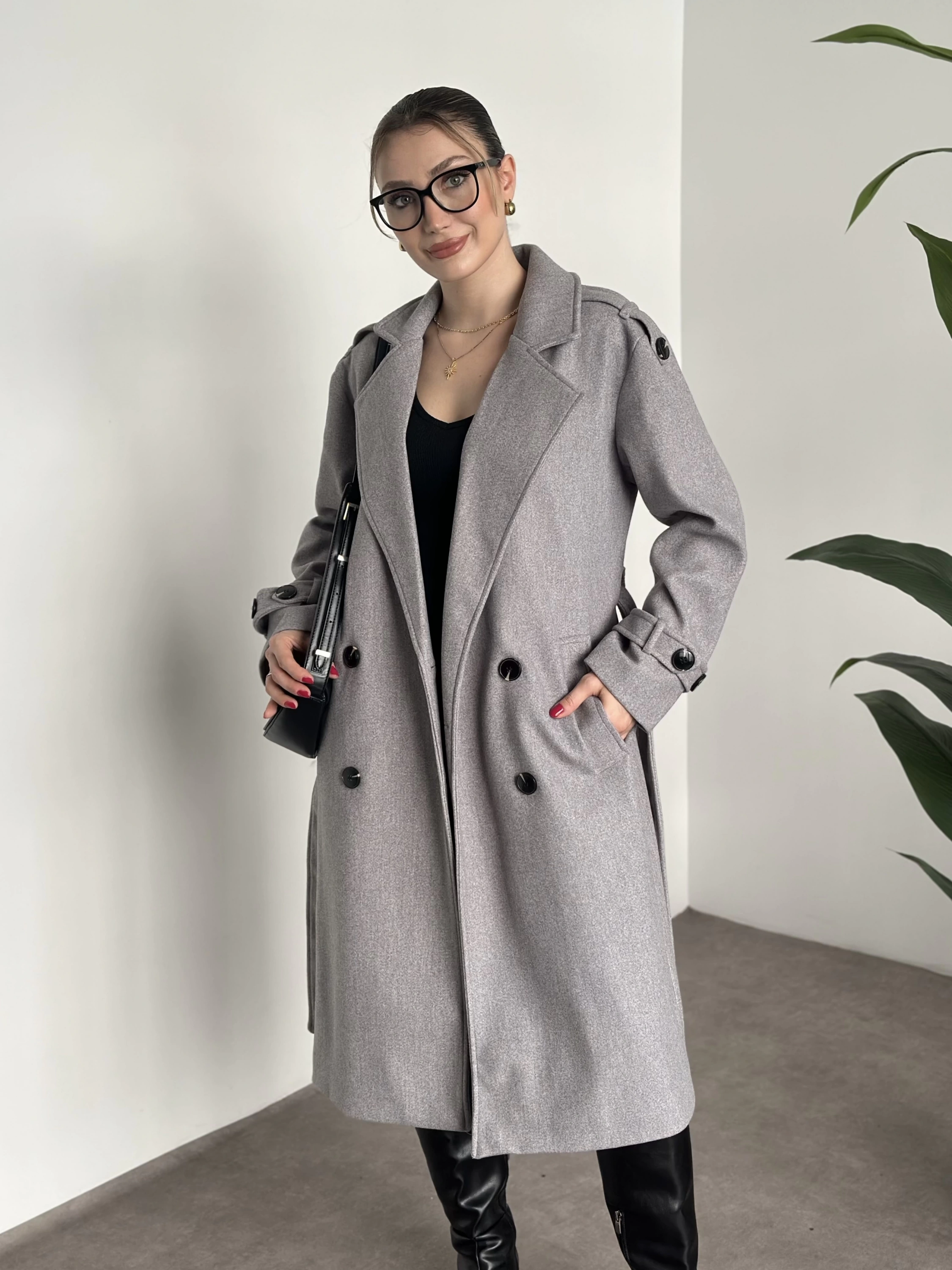 Oversize düğmeli astarlı bağlamalı kaşe kaban antrasit