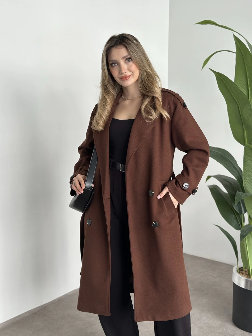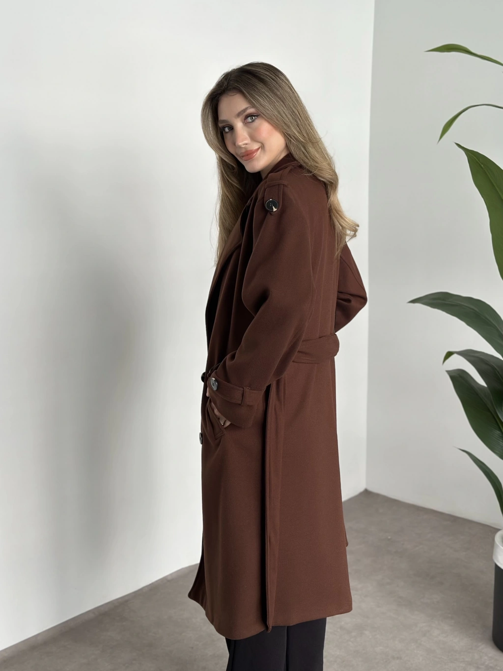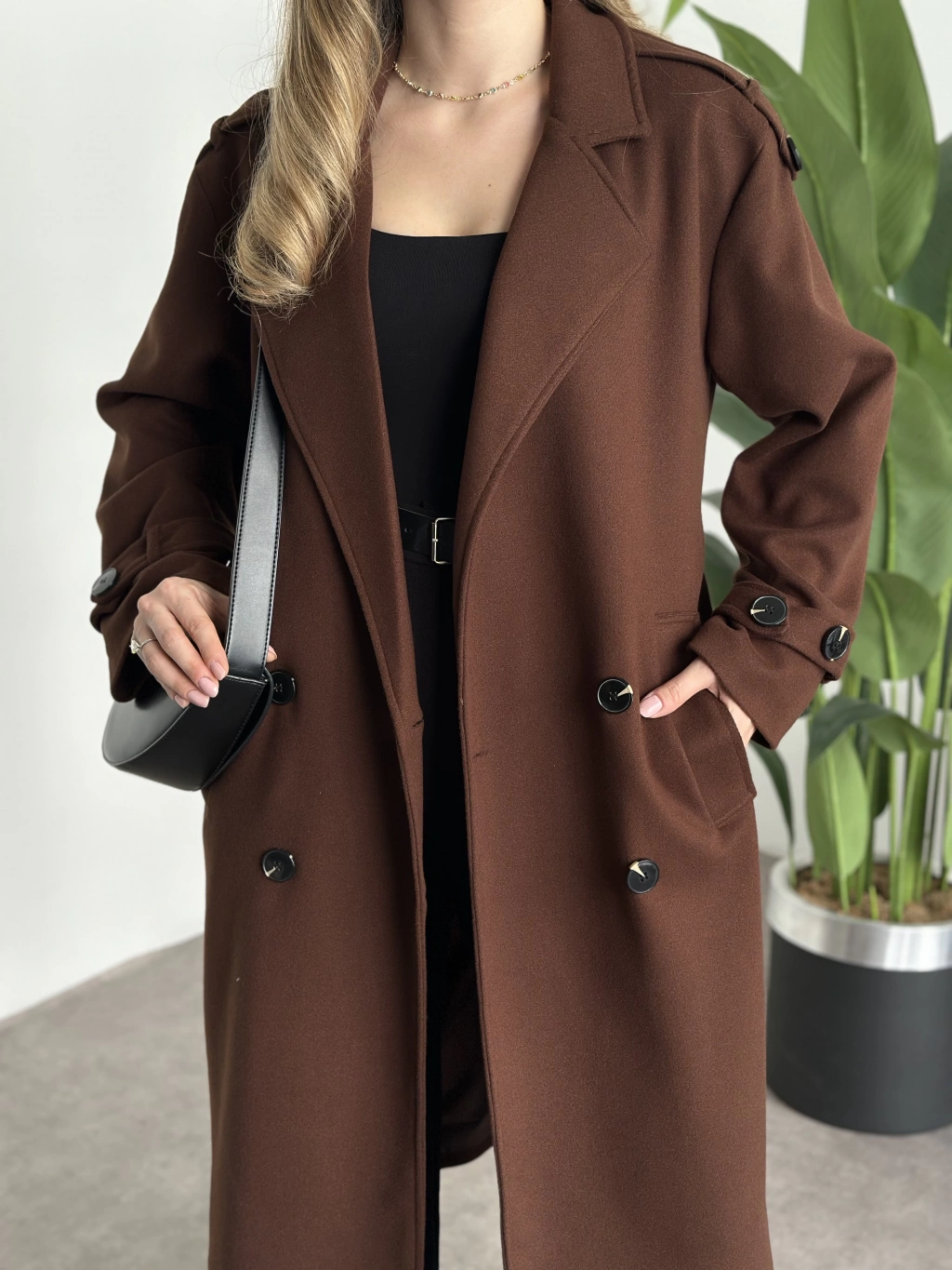 Çizgili uzun düğmeli beli kuşaklı oversize astarlı trençkot kahve ( ÜRÜN ÖN SİPARİŞTEDİR 8-12 İŞ GÜNÜ İÇERİSİNDE KARGOLANICAKTIR. ! ! )