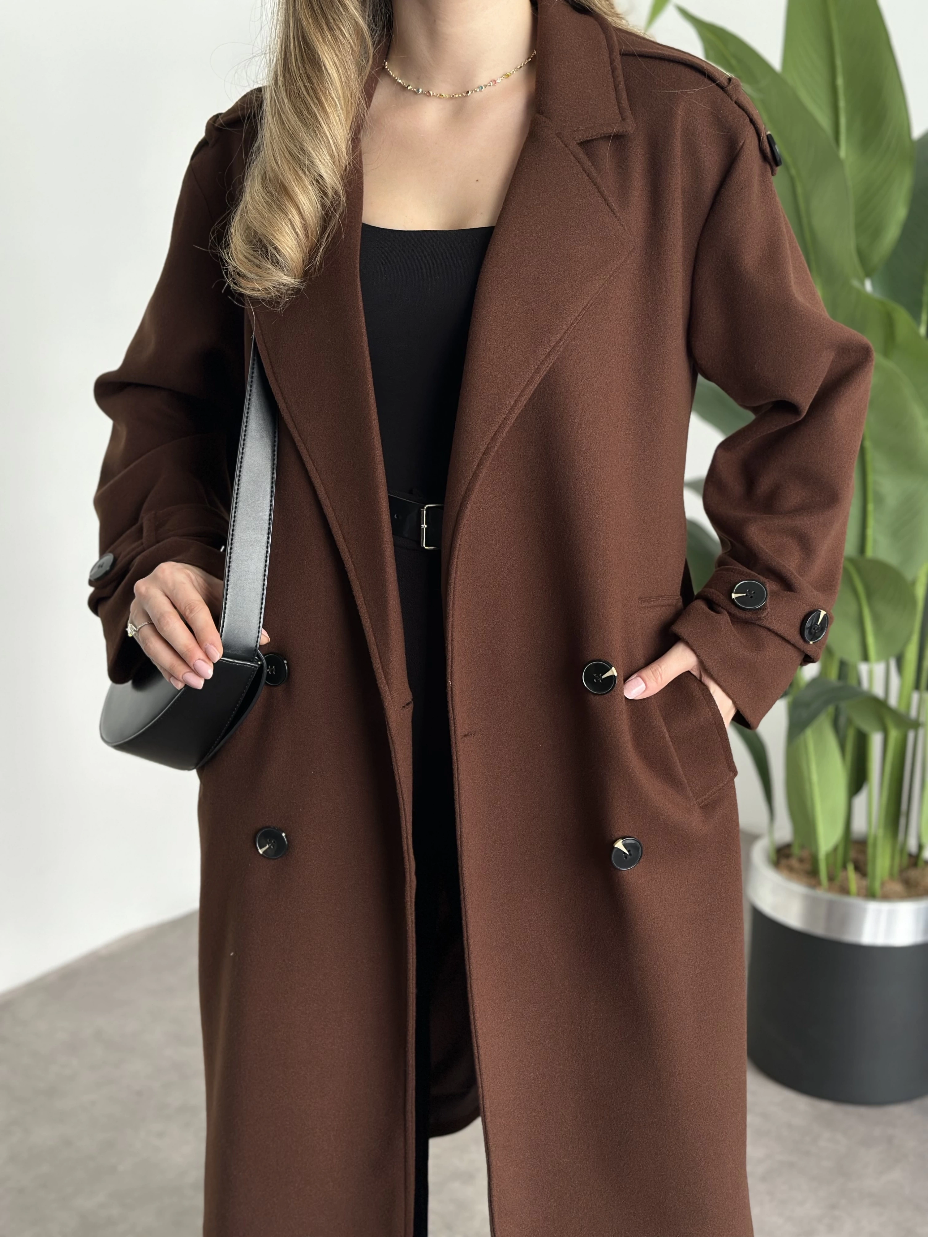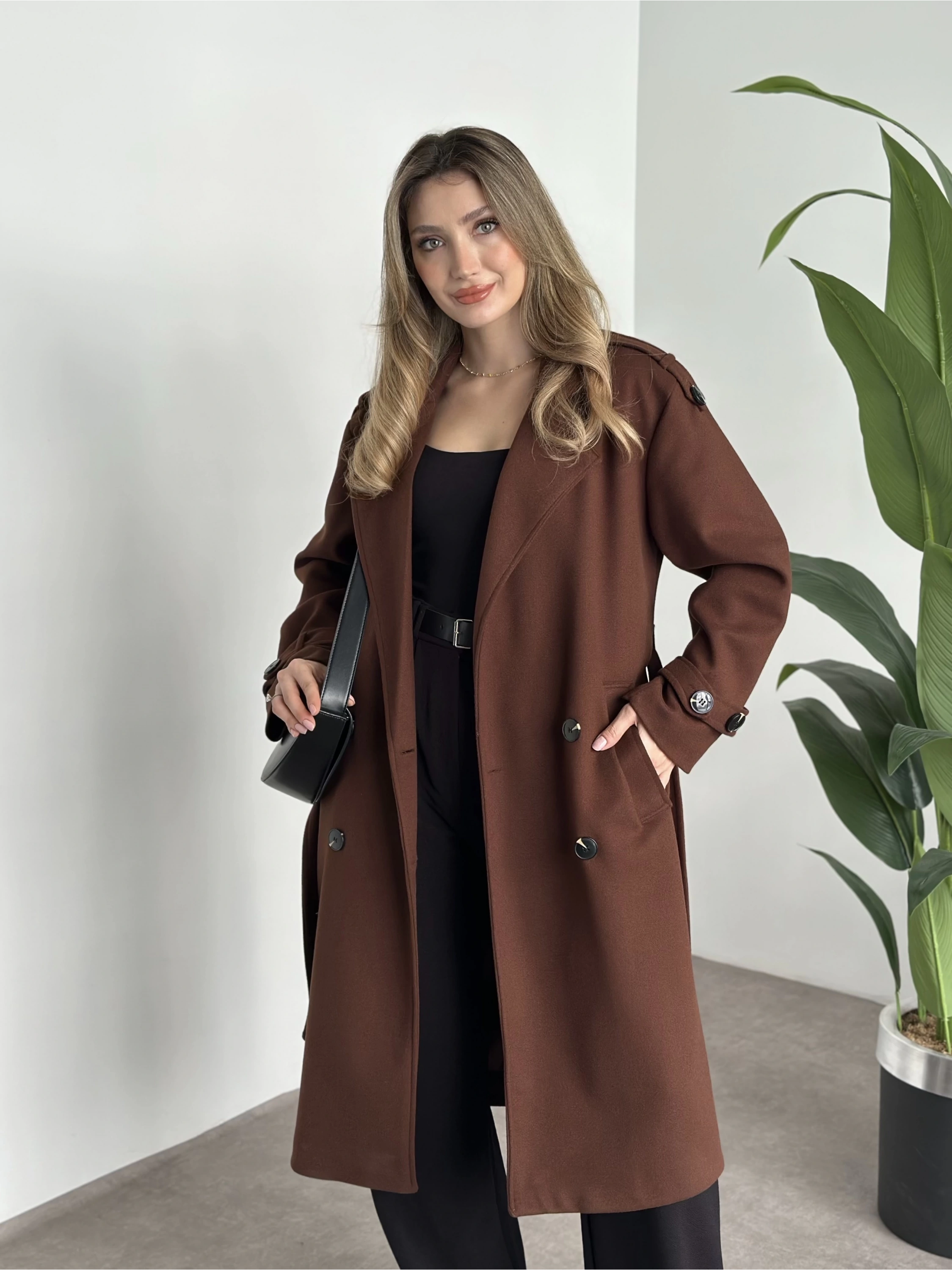 Dokulu süet içi peluşlu oversize marka model mont kahve