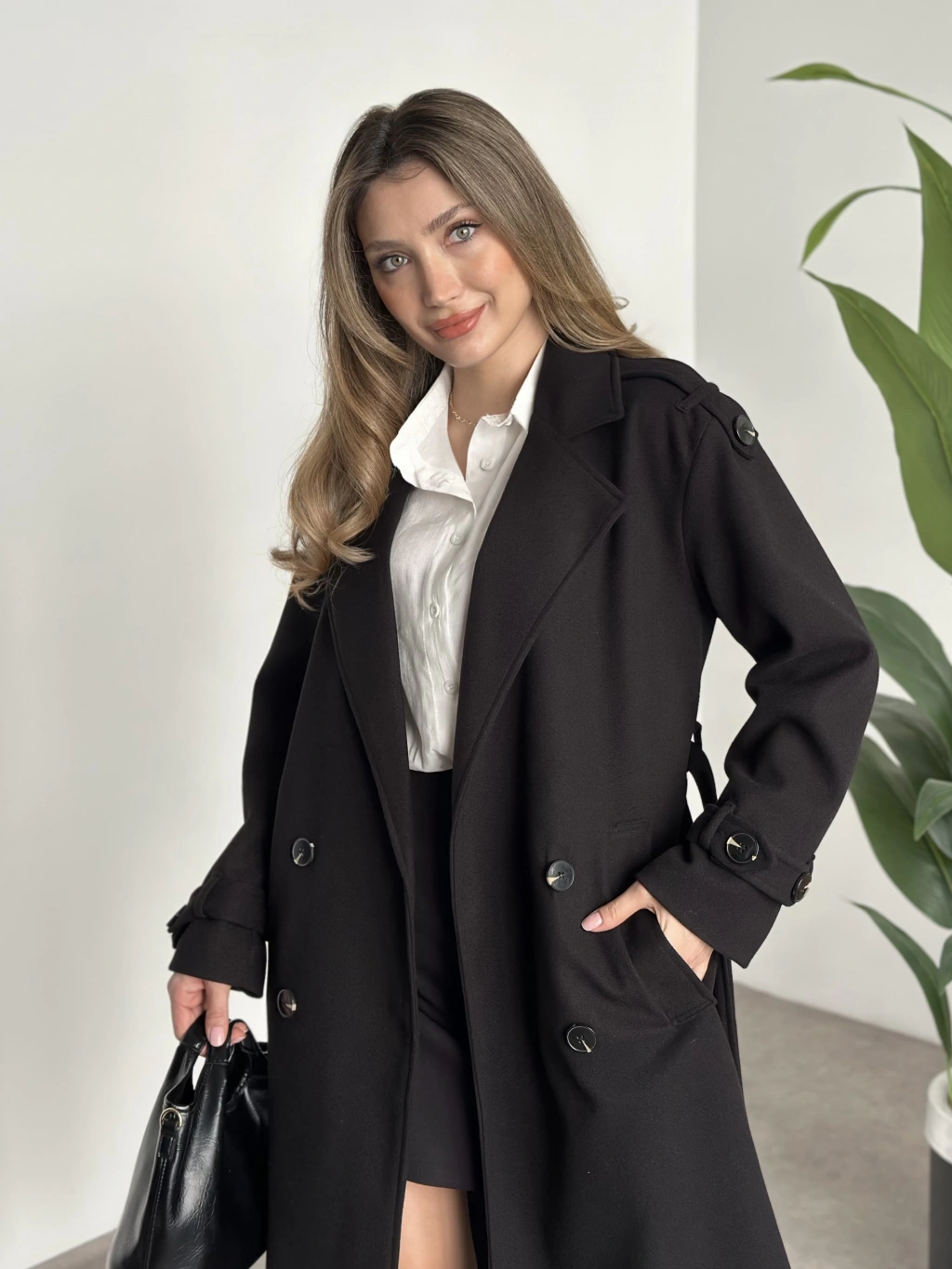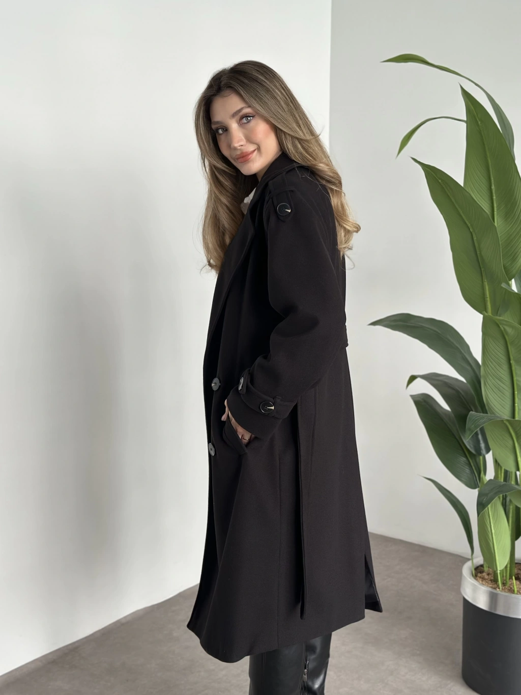 Çizgili uzun düğmeli beli kuşaklı oversize astarlı trençkot kahve ( ÜRÜN ÖN SİPARİŞTEDİR 8-12 İŞ GÜNÜ İÇERİSİNDE KARGOLANICAKTIR. ! ! )