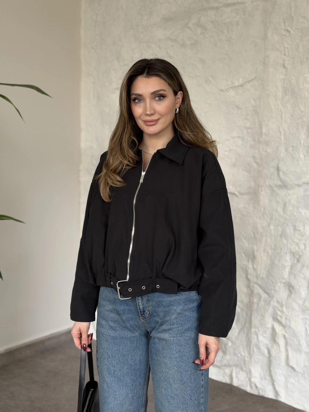 Premium kalite Torino kumaş beli kemerli trenç ceket siyah