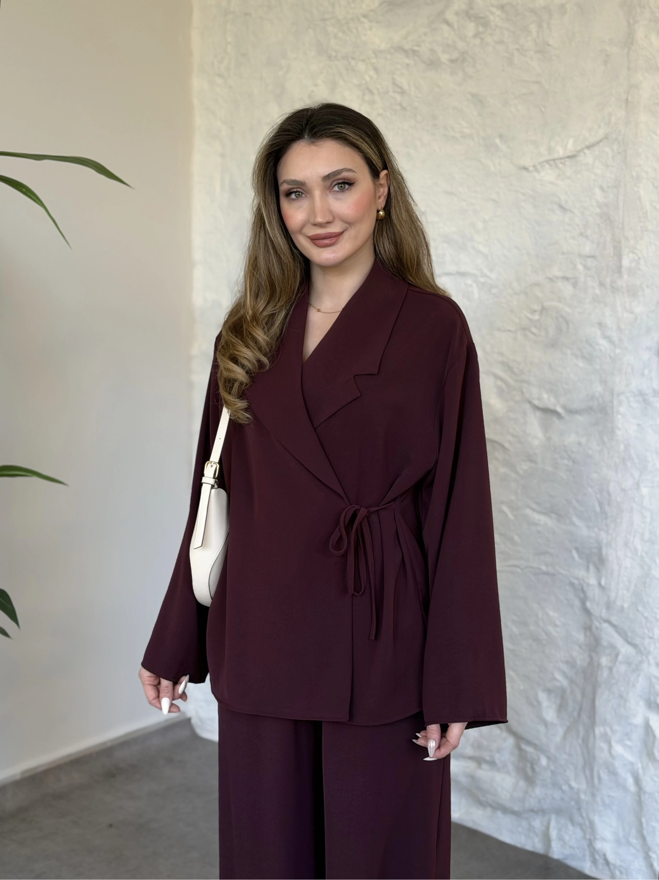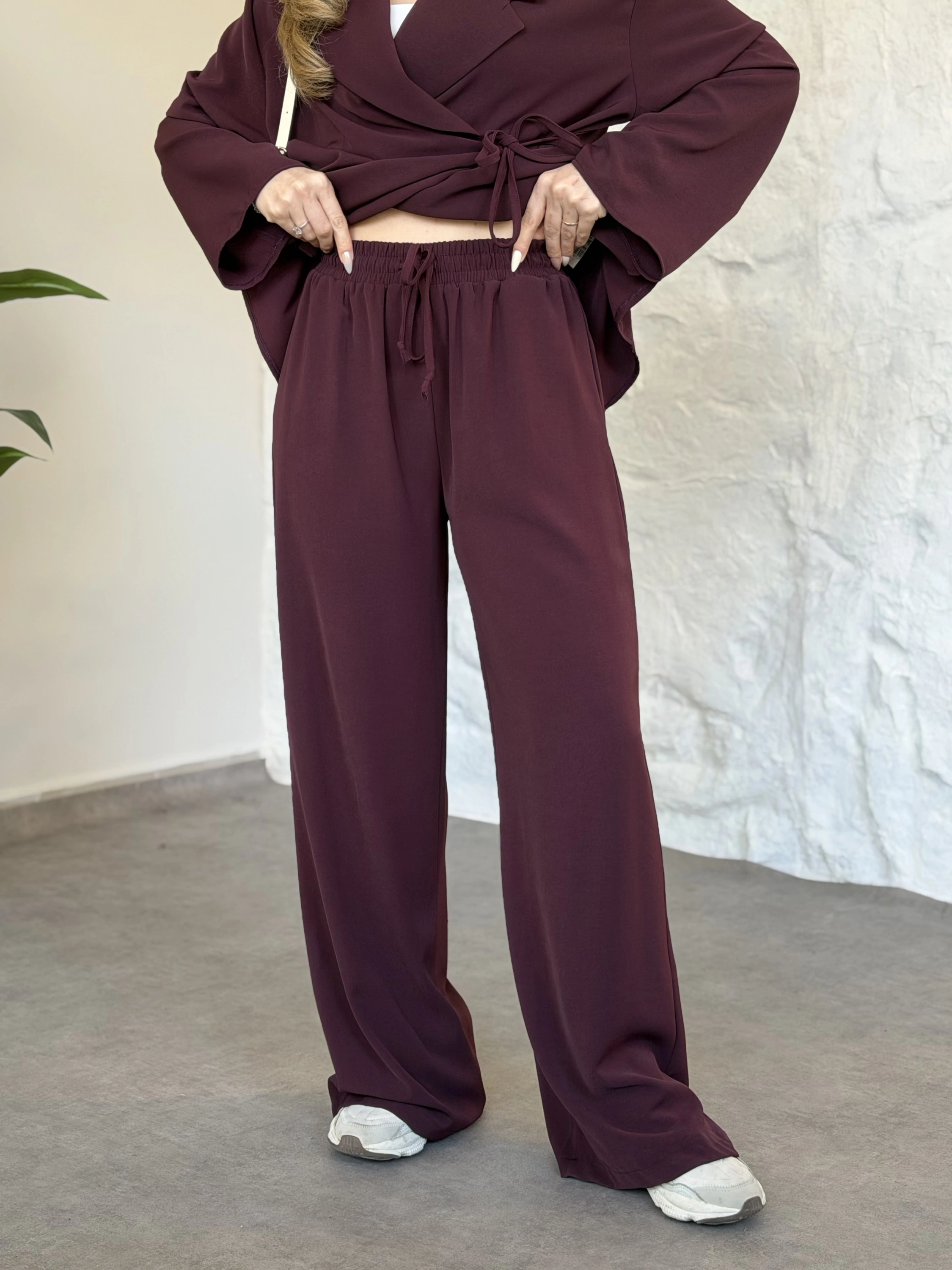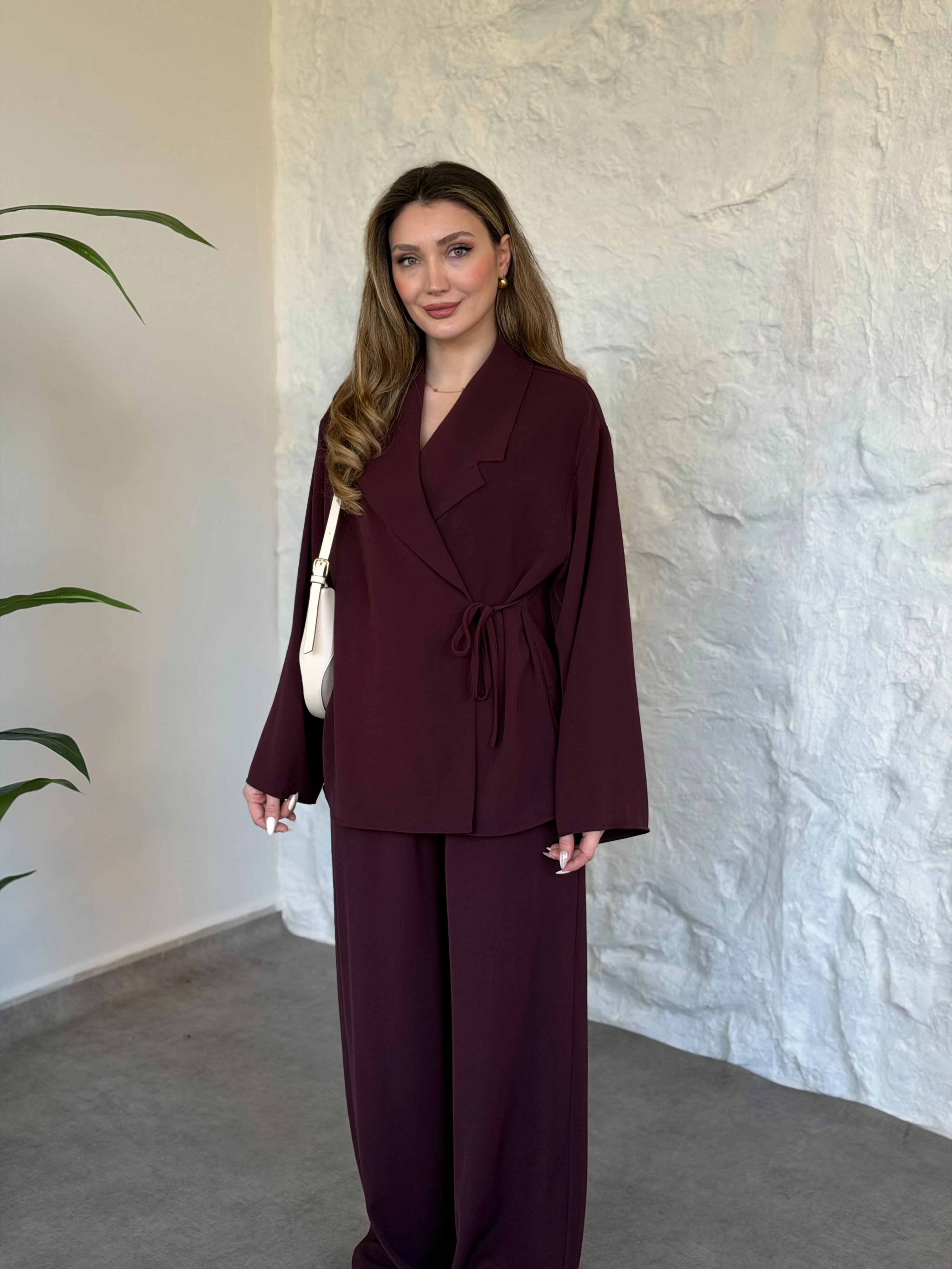 Premium viskon keten yandan bağlamalı takım bordo