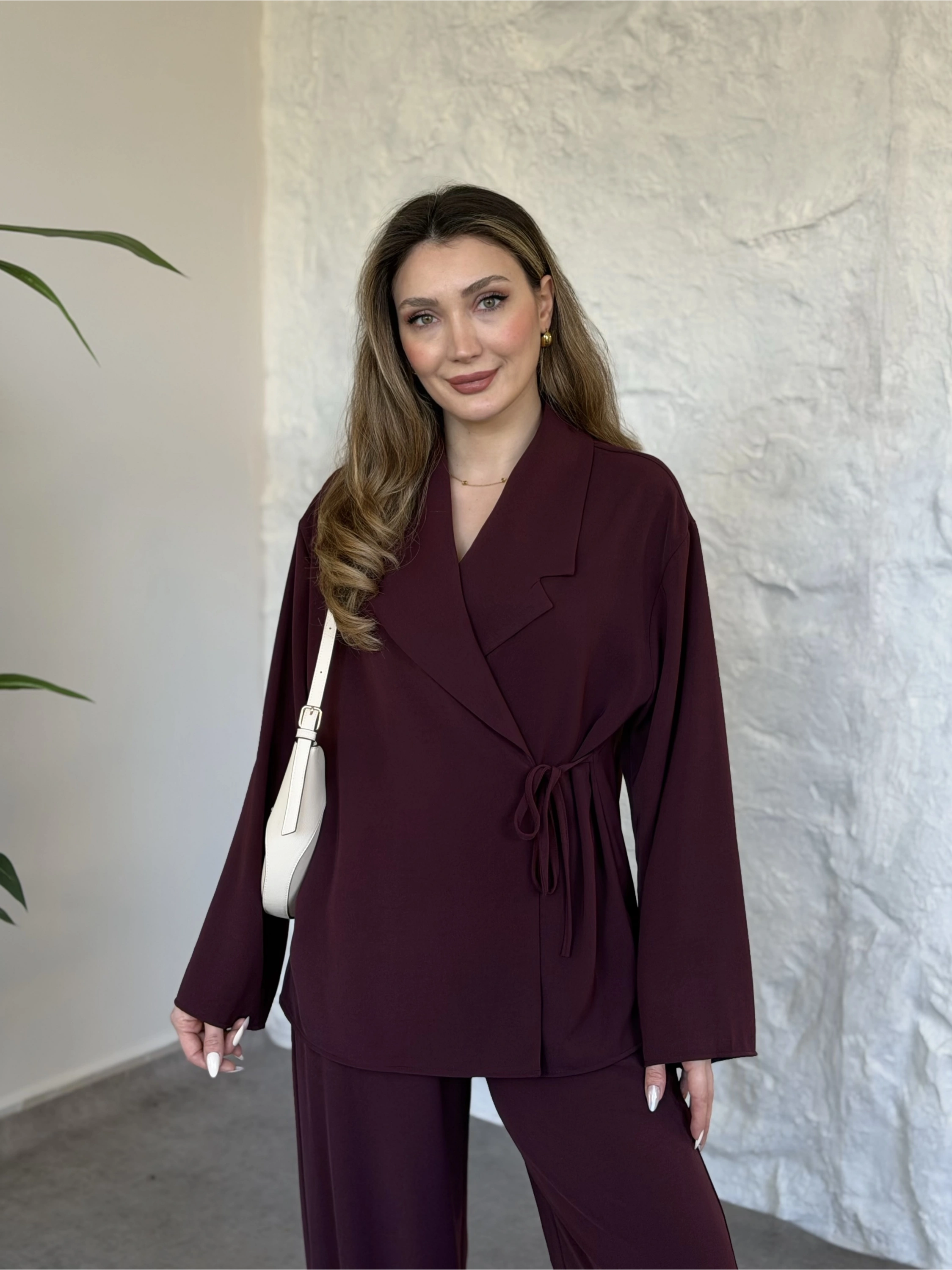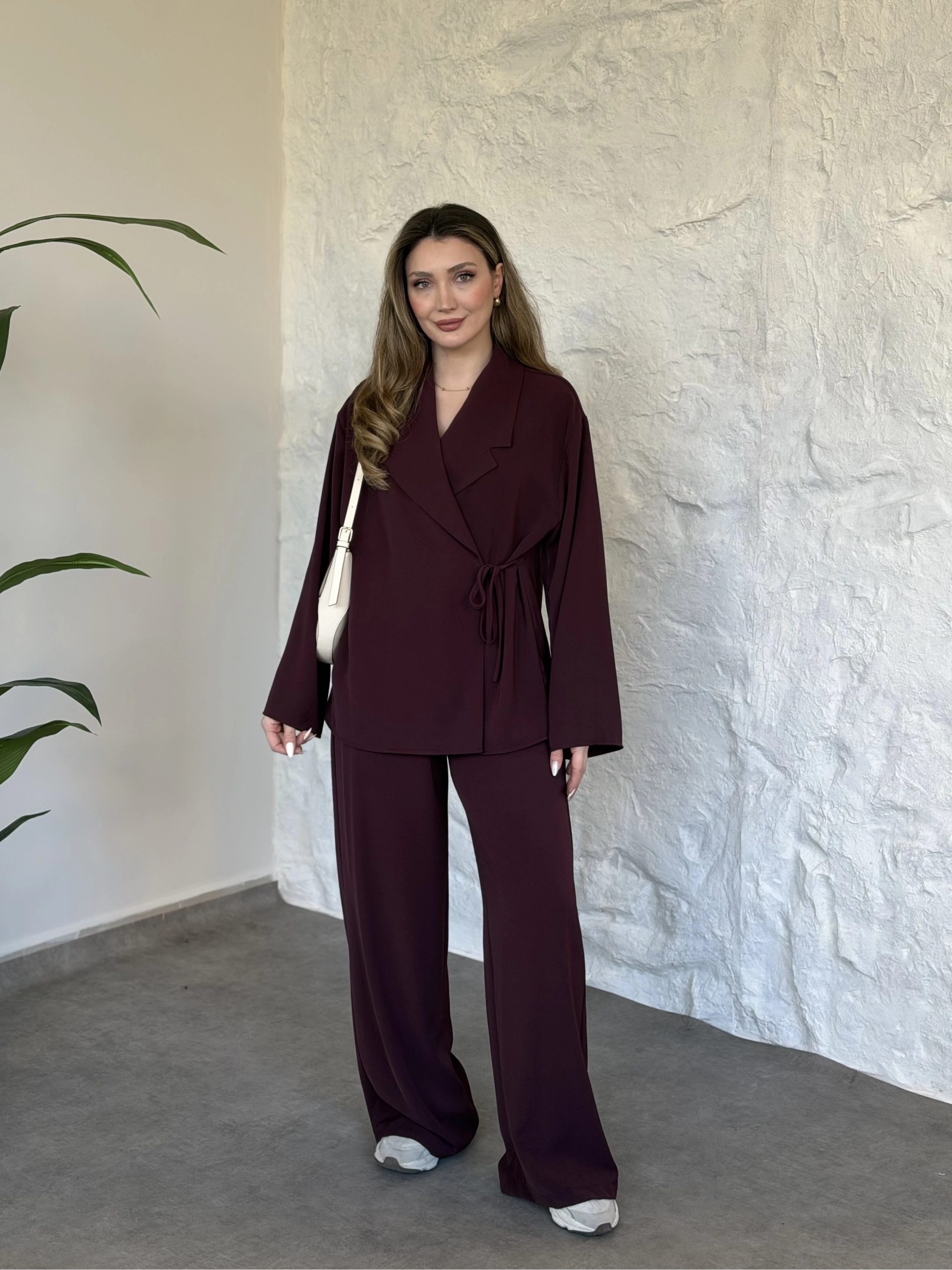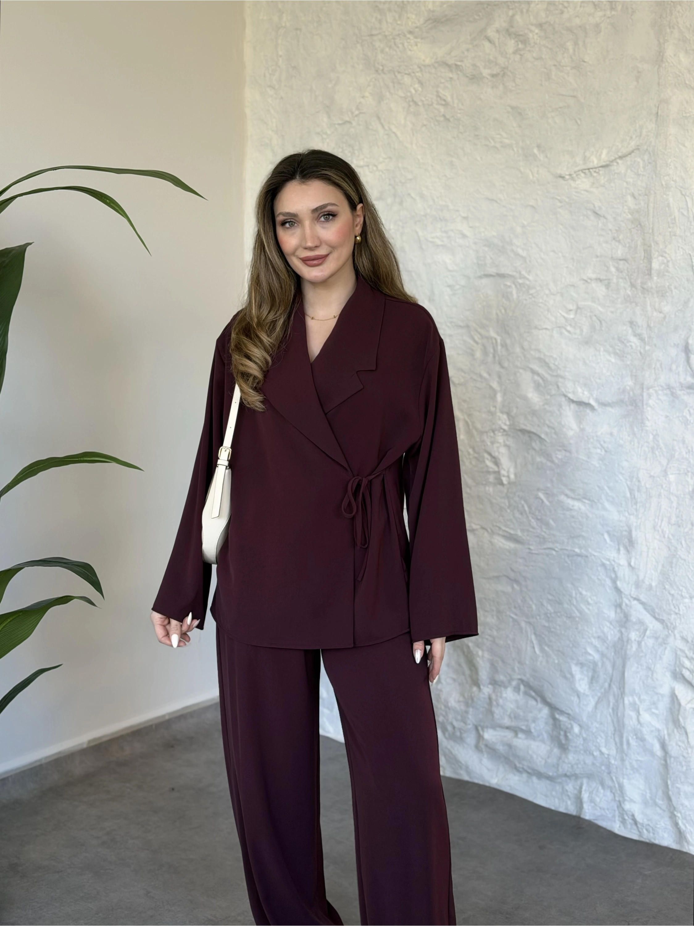 Premium viskon keten yandan bağlamalı takım bordo