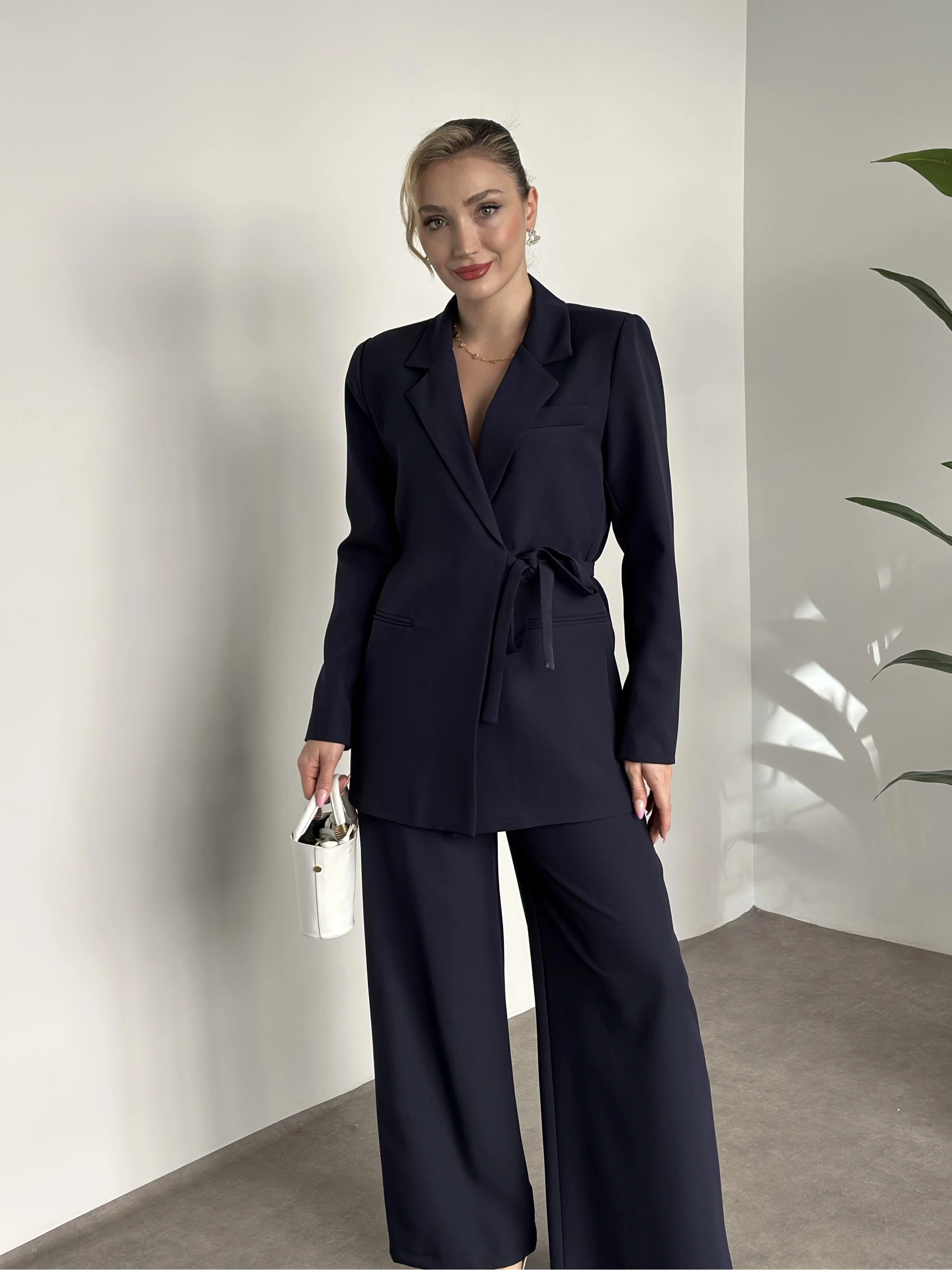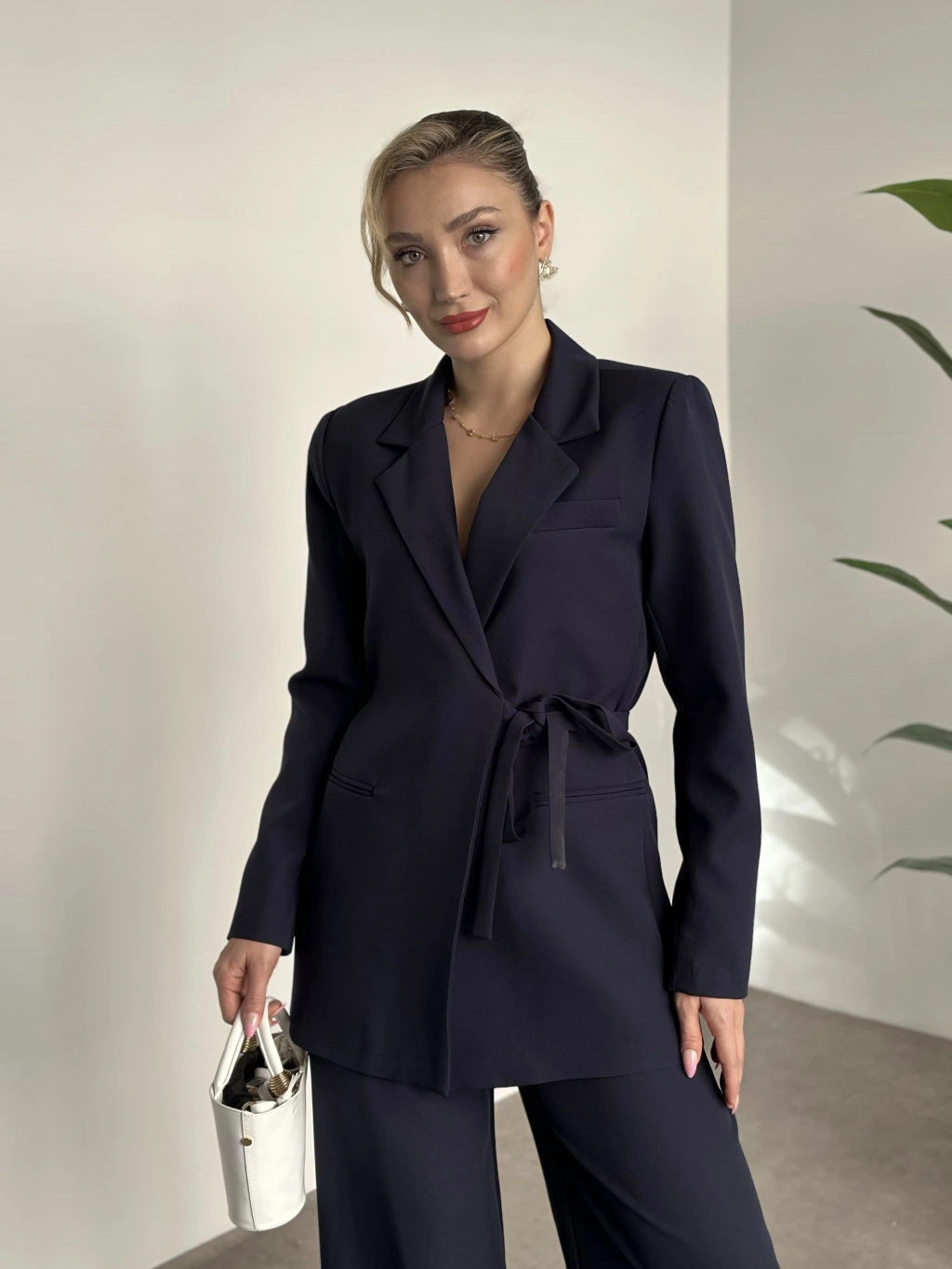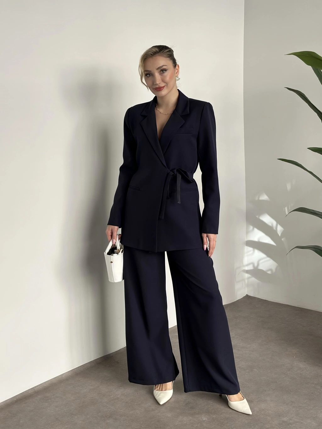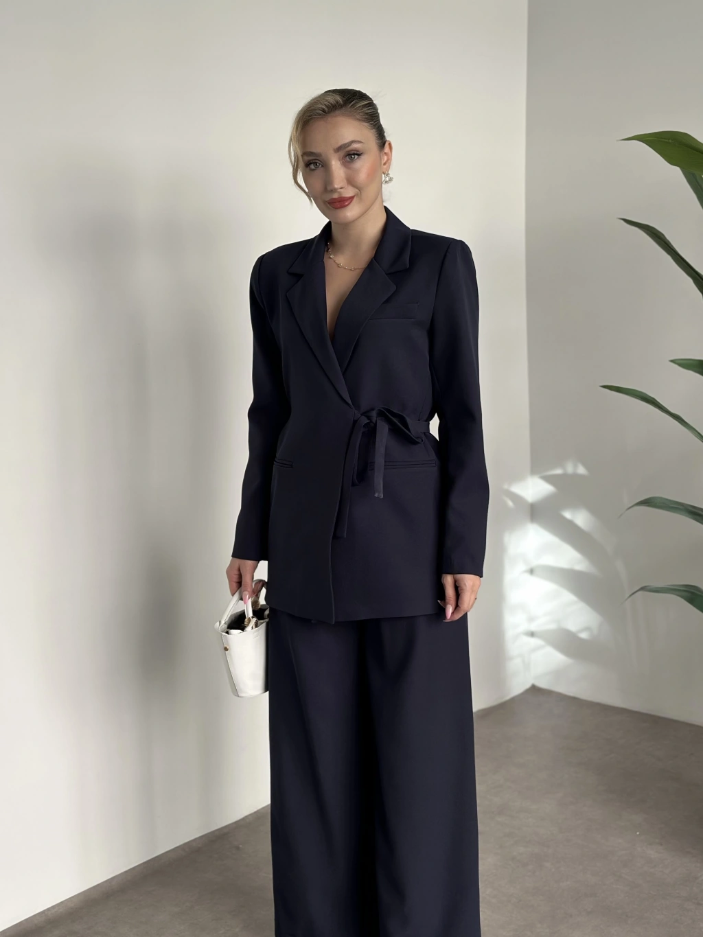 Premium yandan bağlama detaylı double kumaş takım lacivert