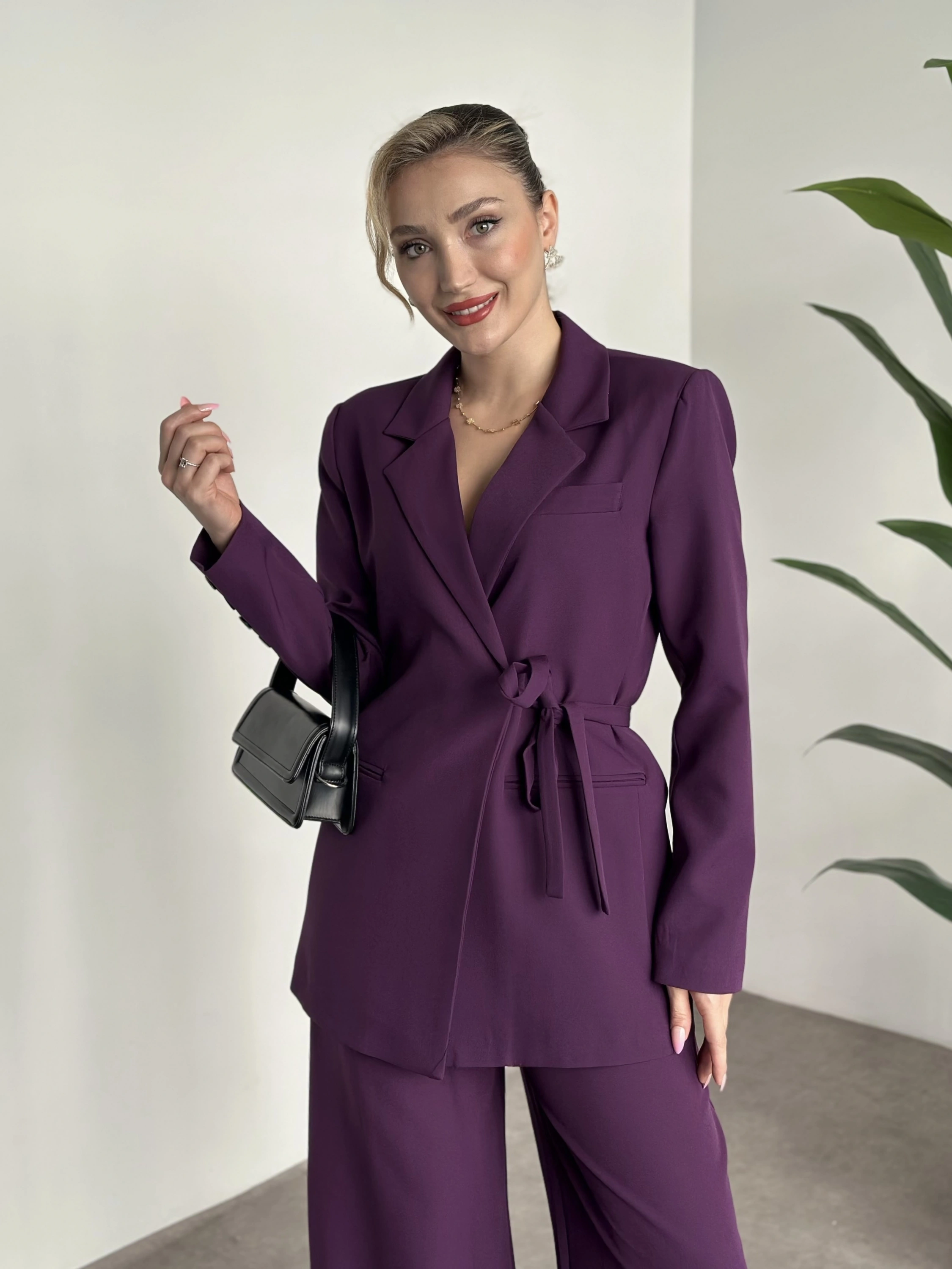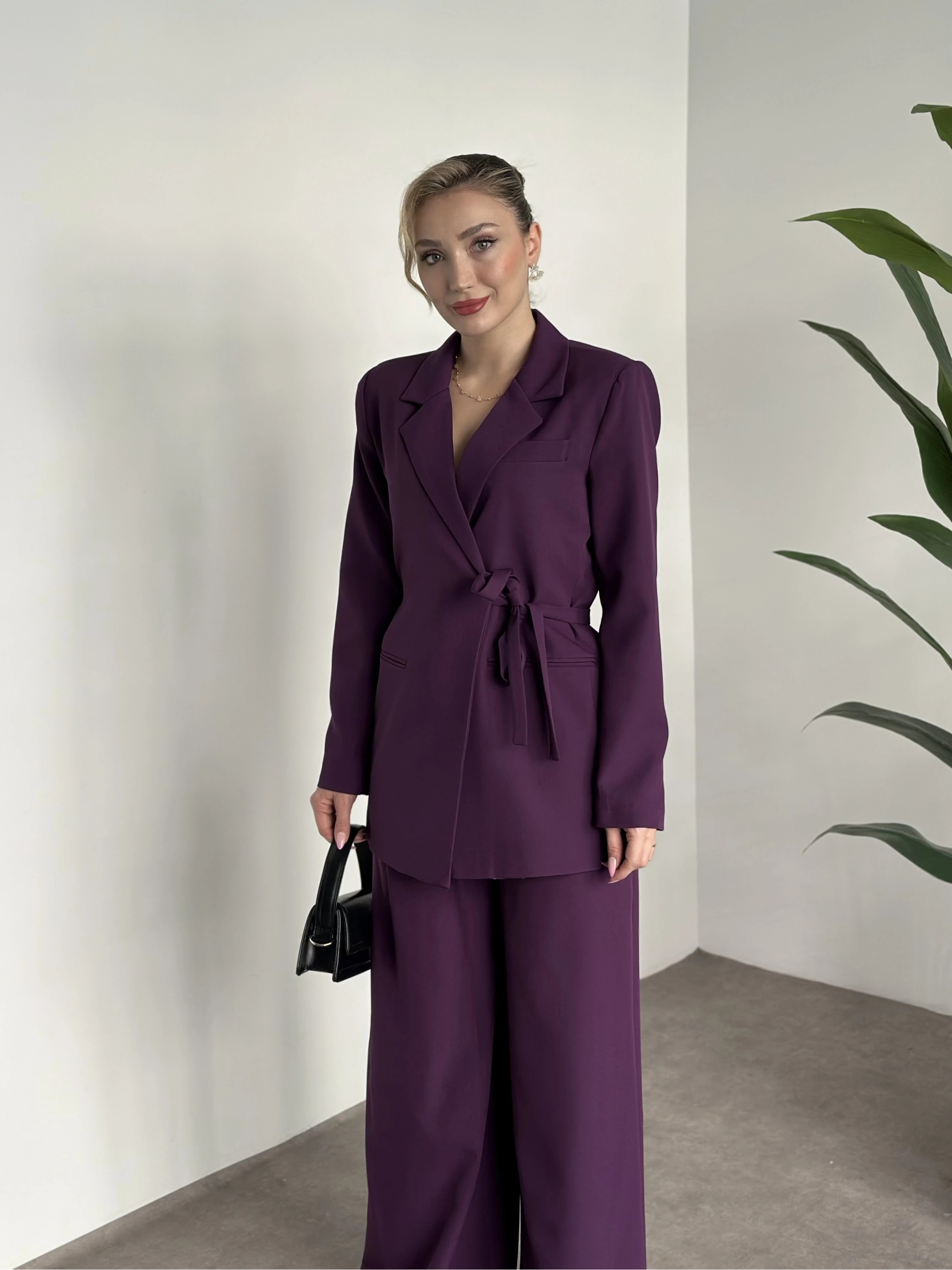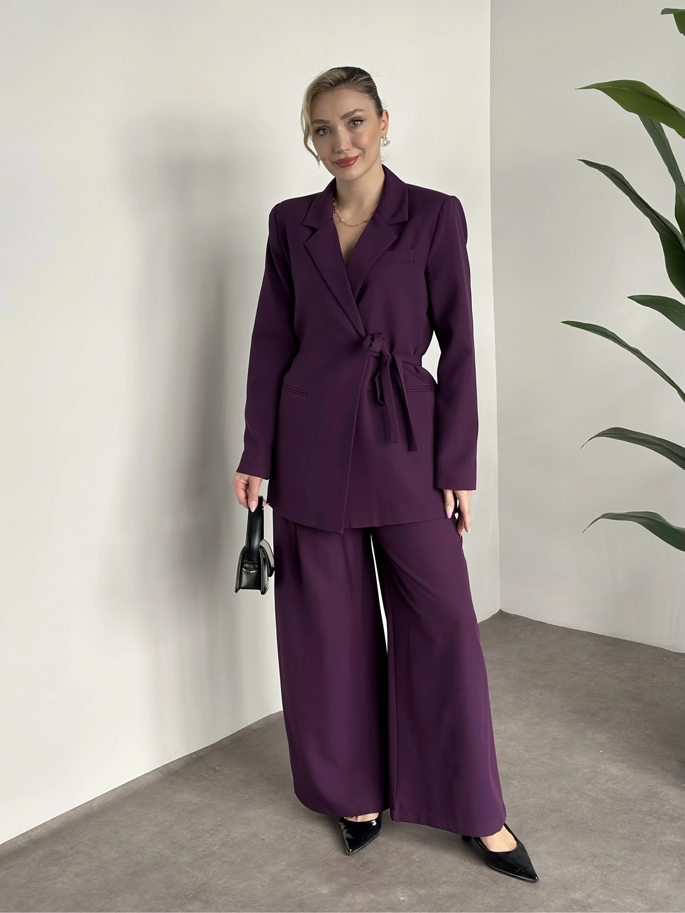 Premium yandan bağlama detaylı double kumaş takım mürdüm