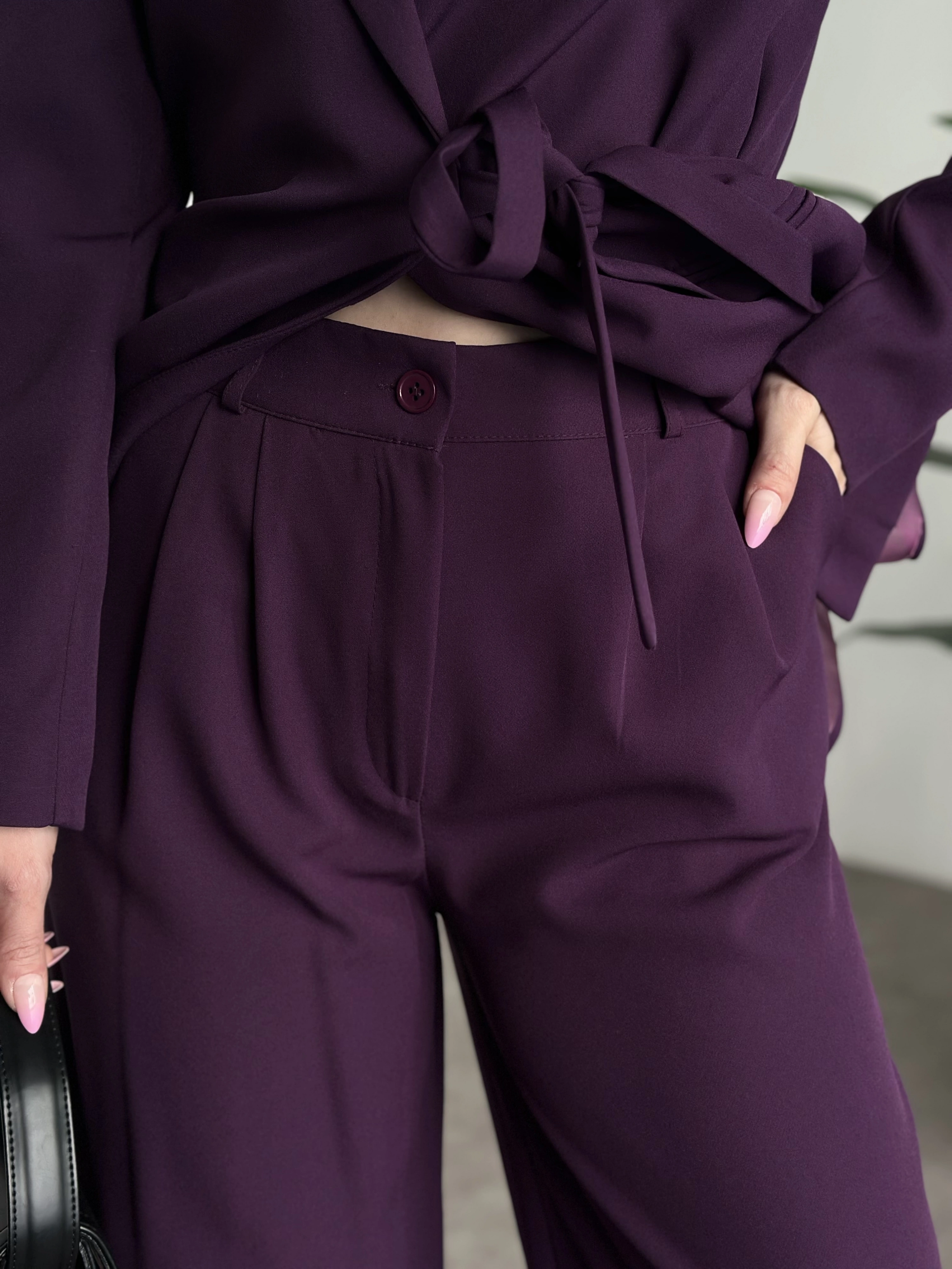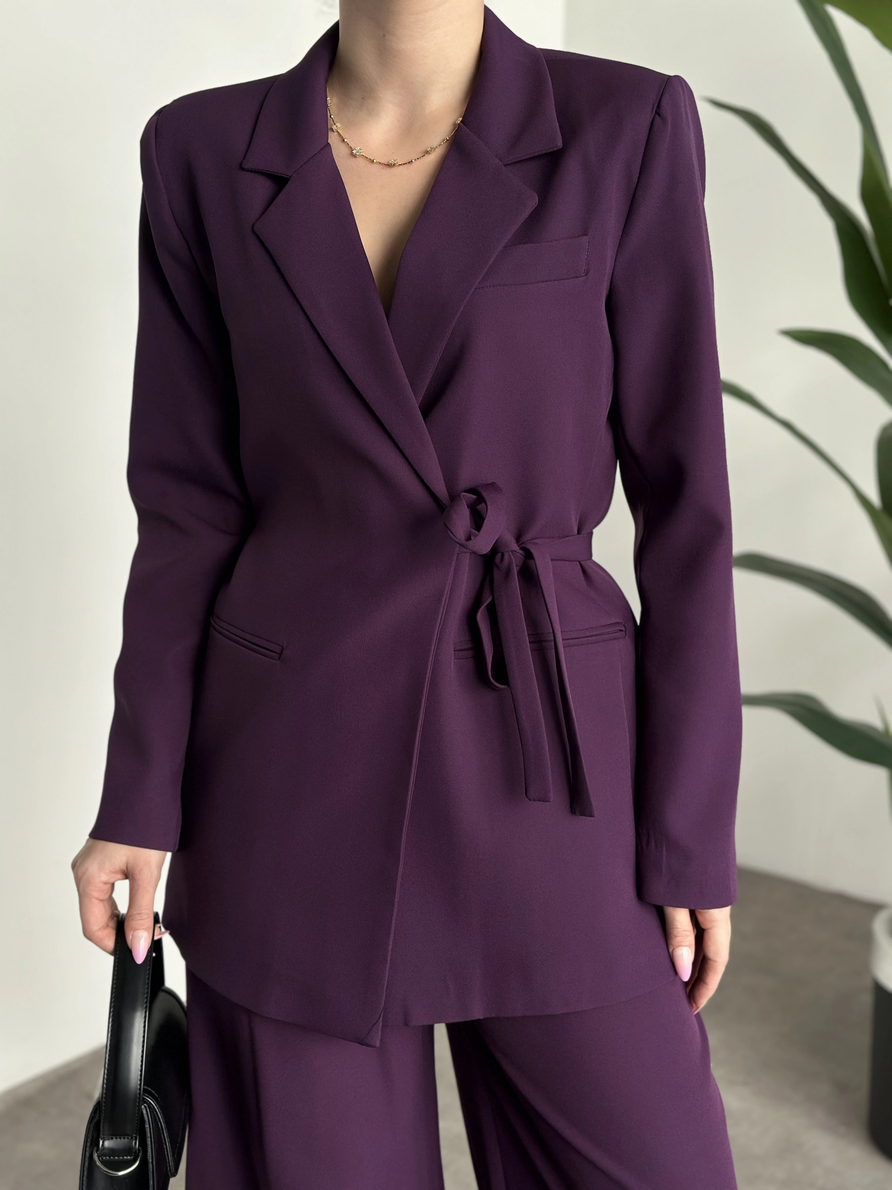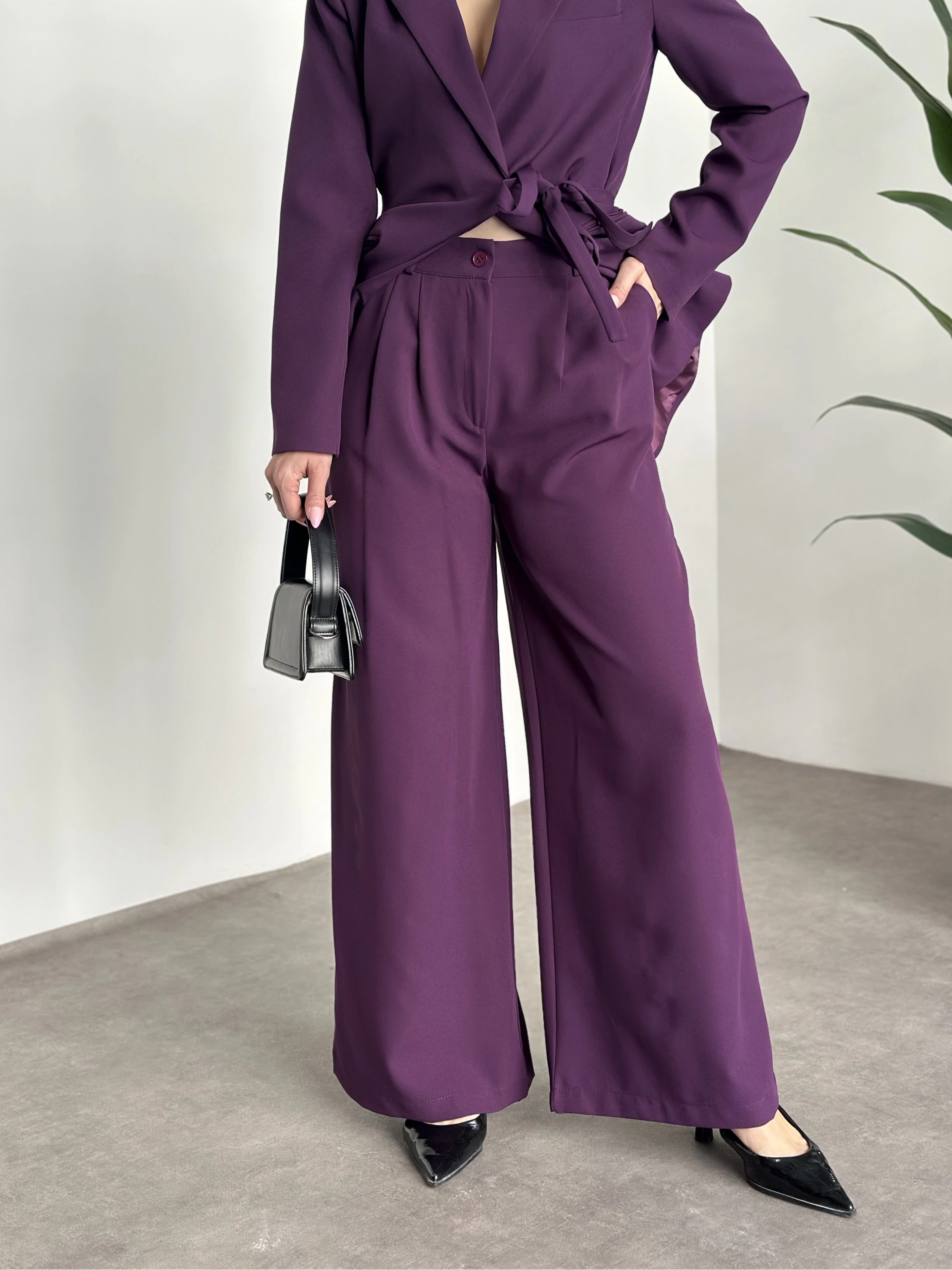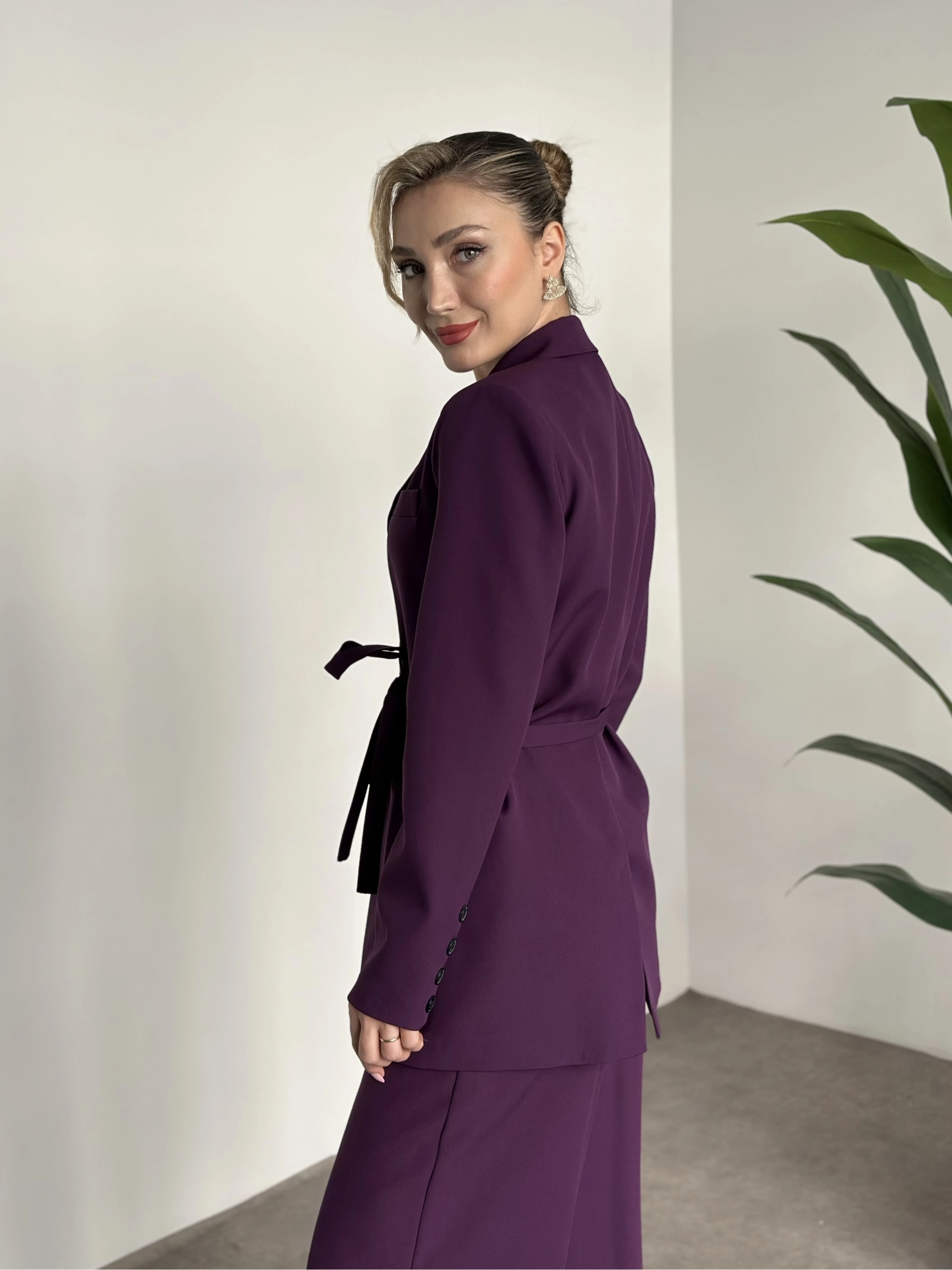 Premium yandan bağlama detaylı double kumaş takım mürdüm