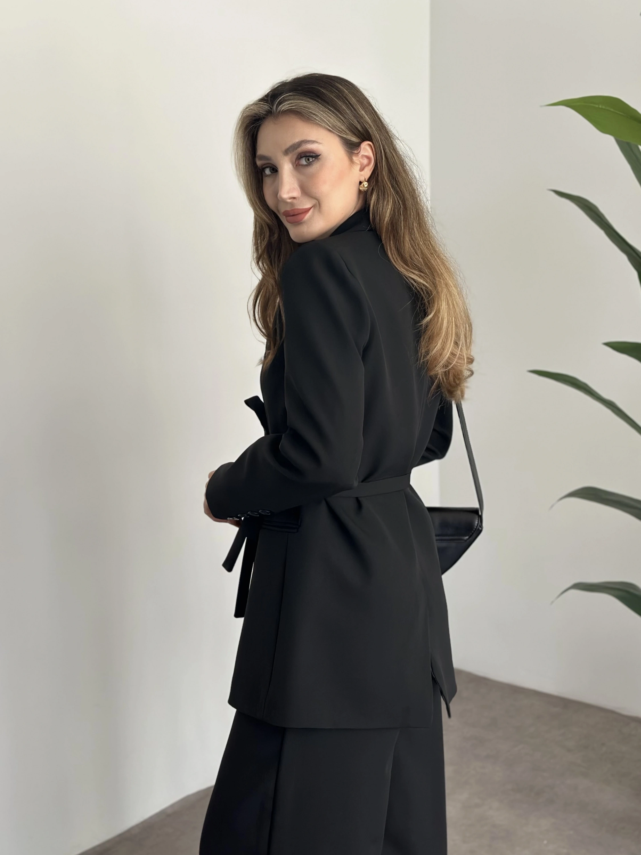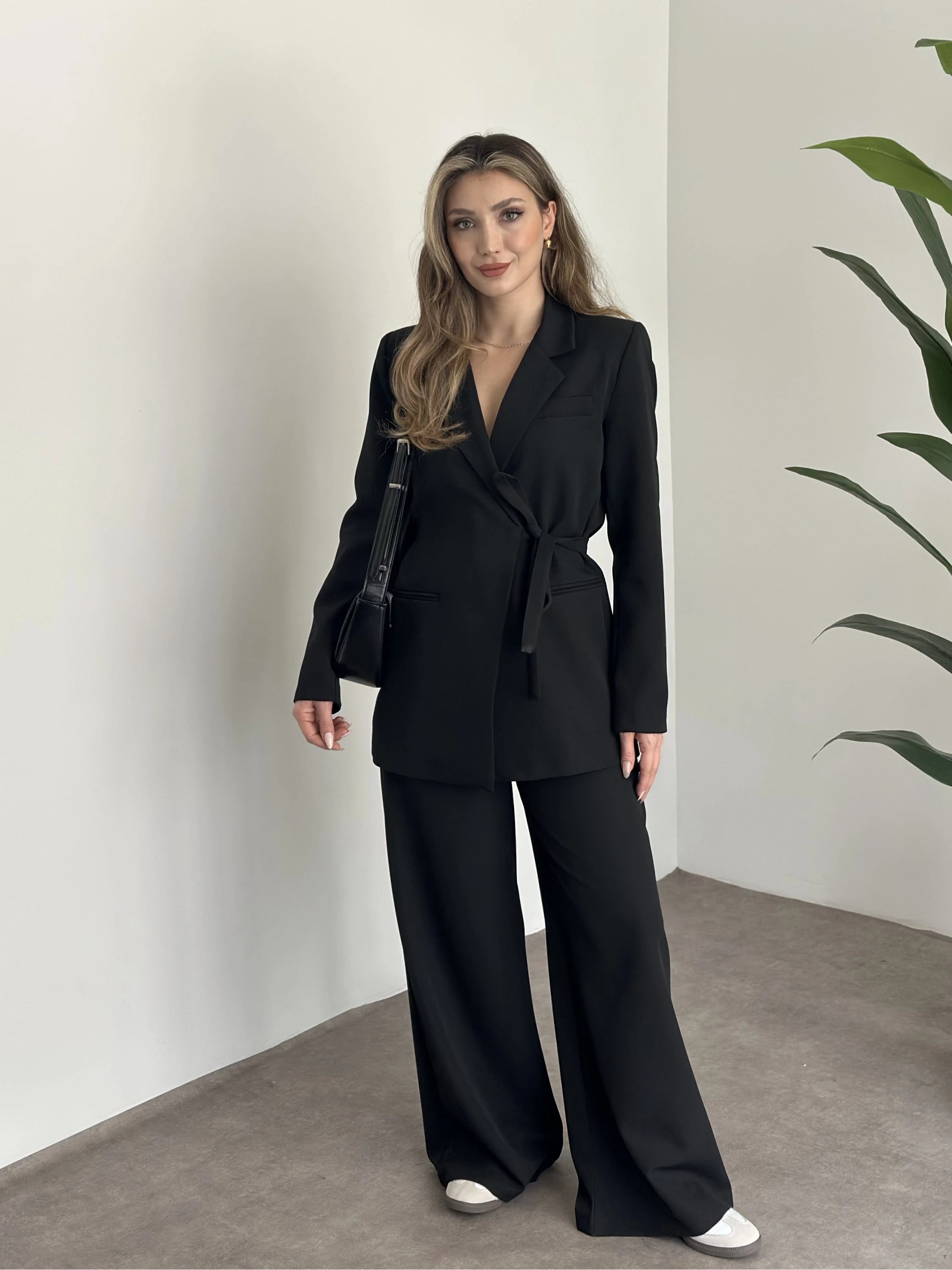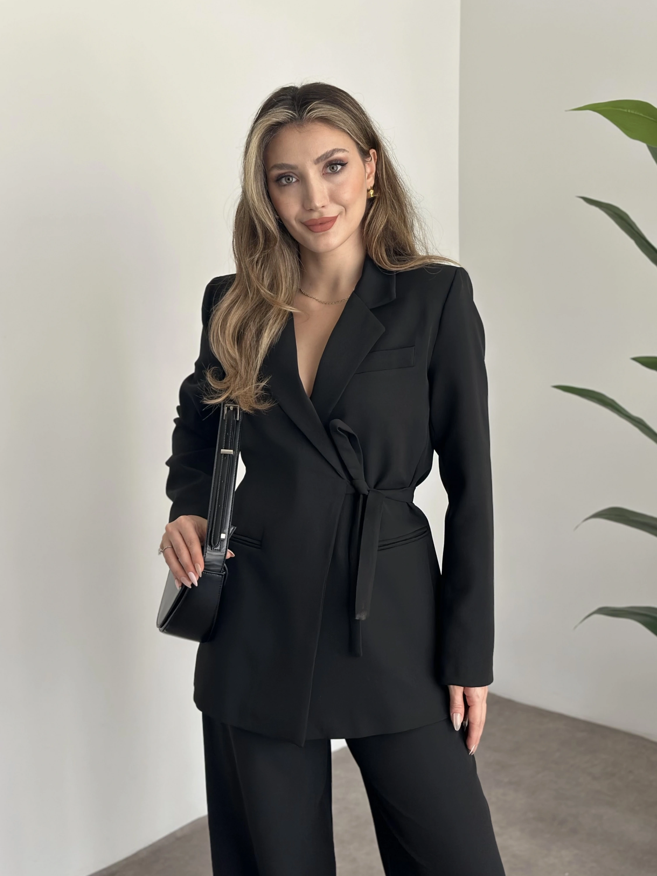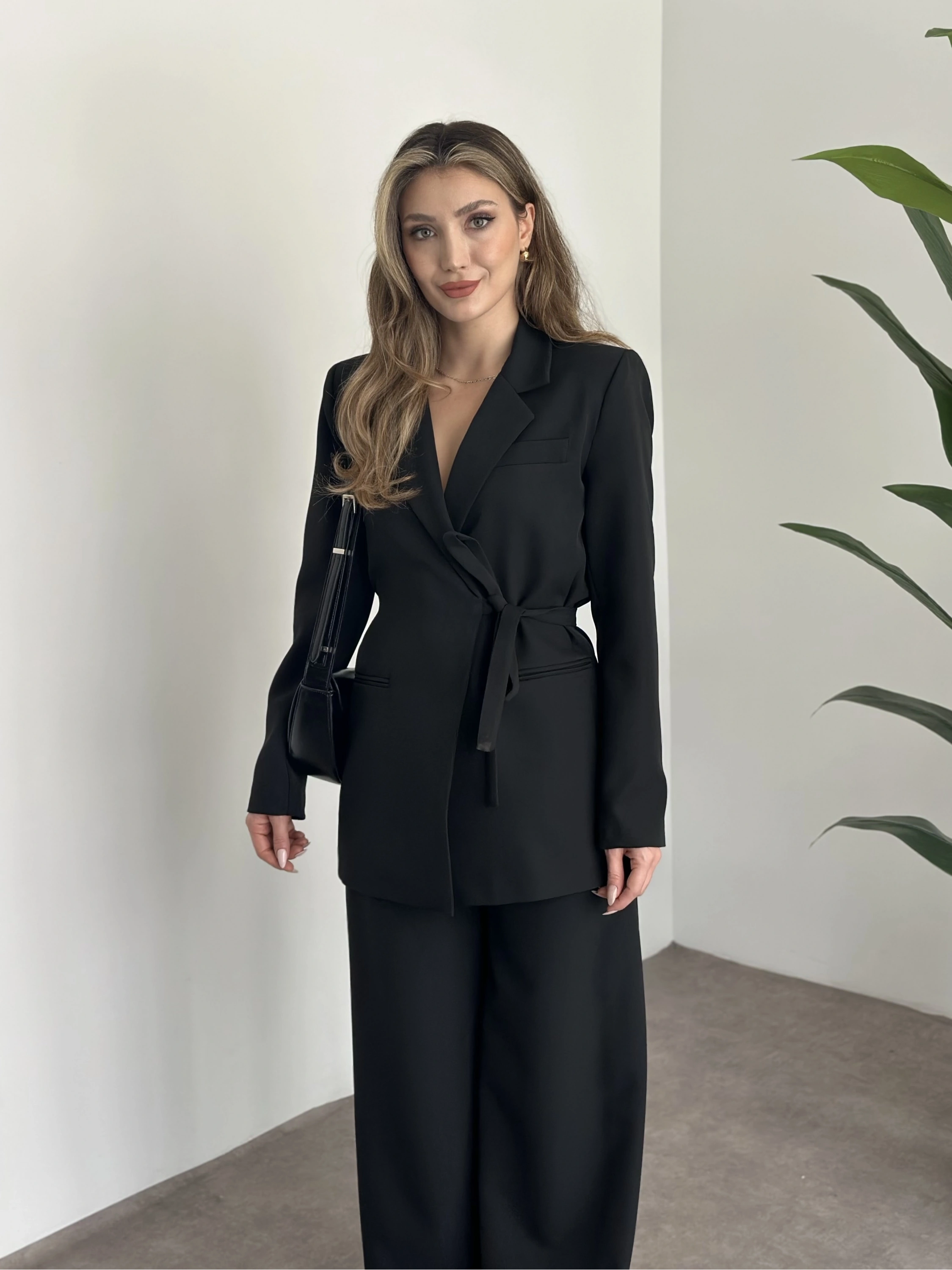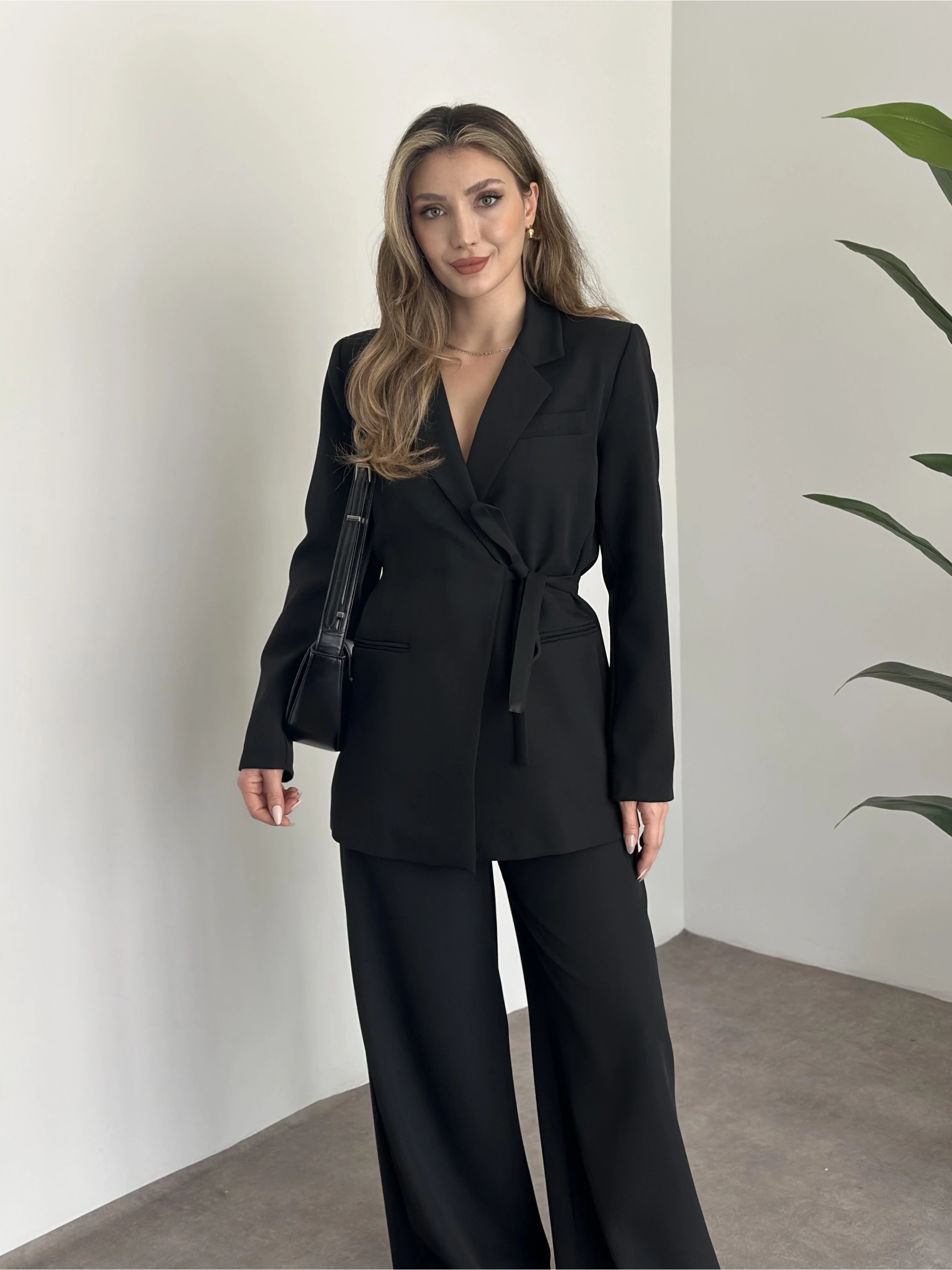 Premium yandan bağlama detaylı double kumaş takım siyah