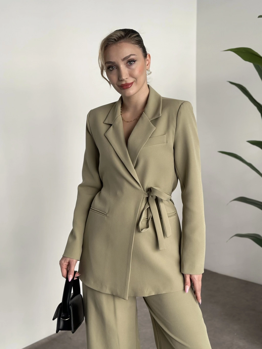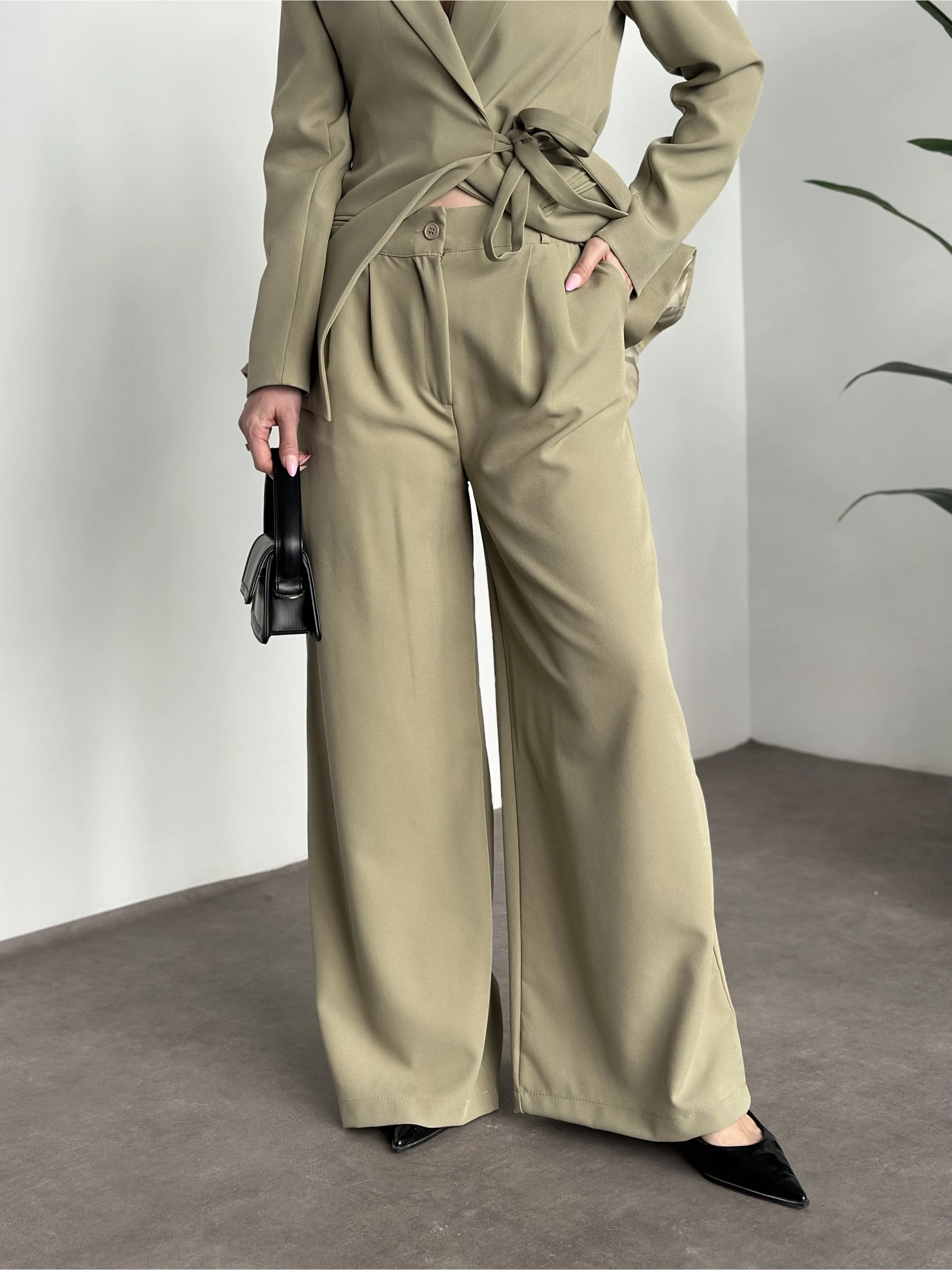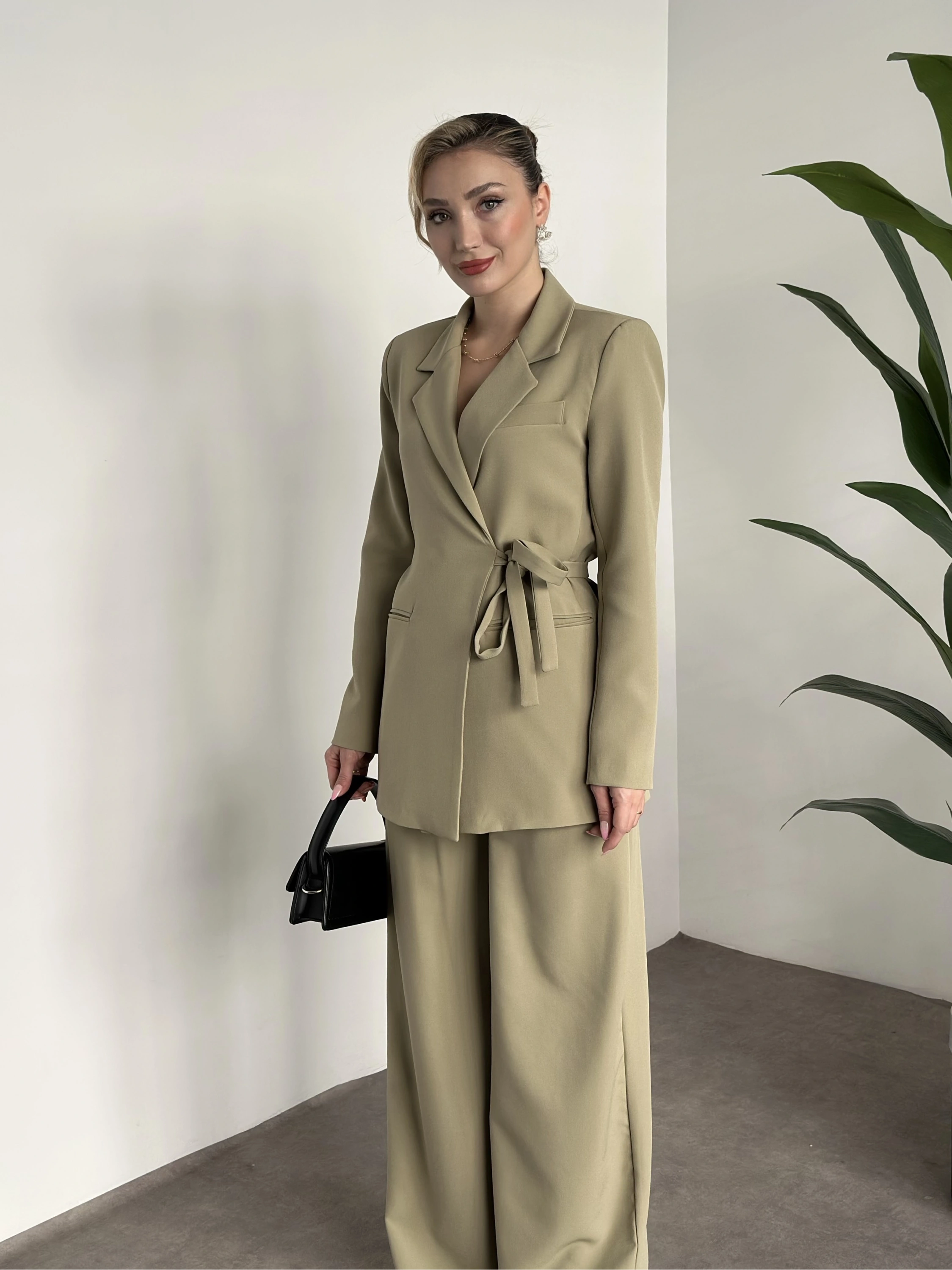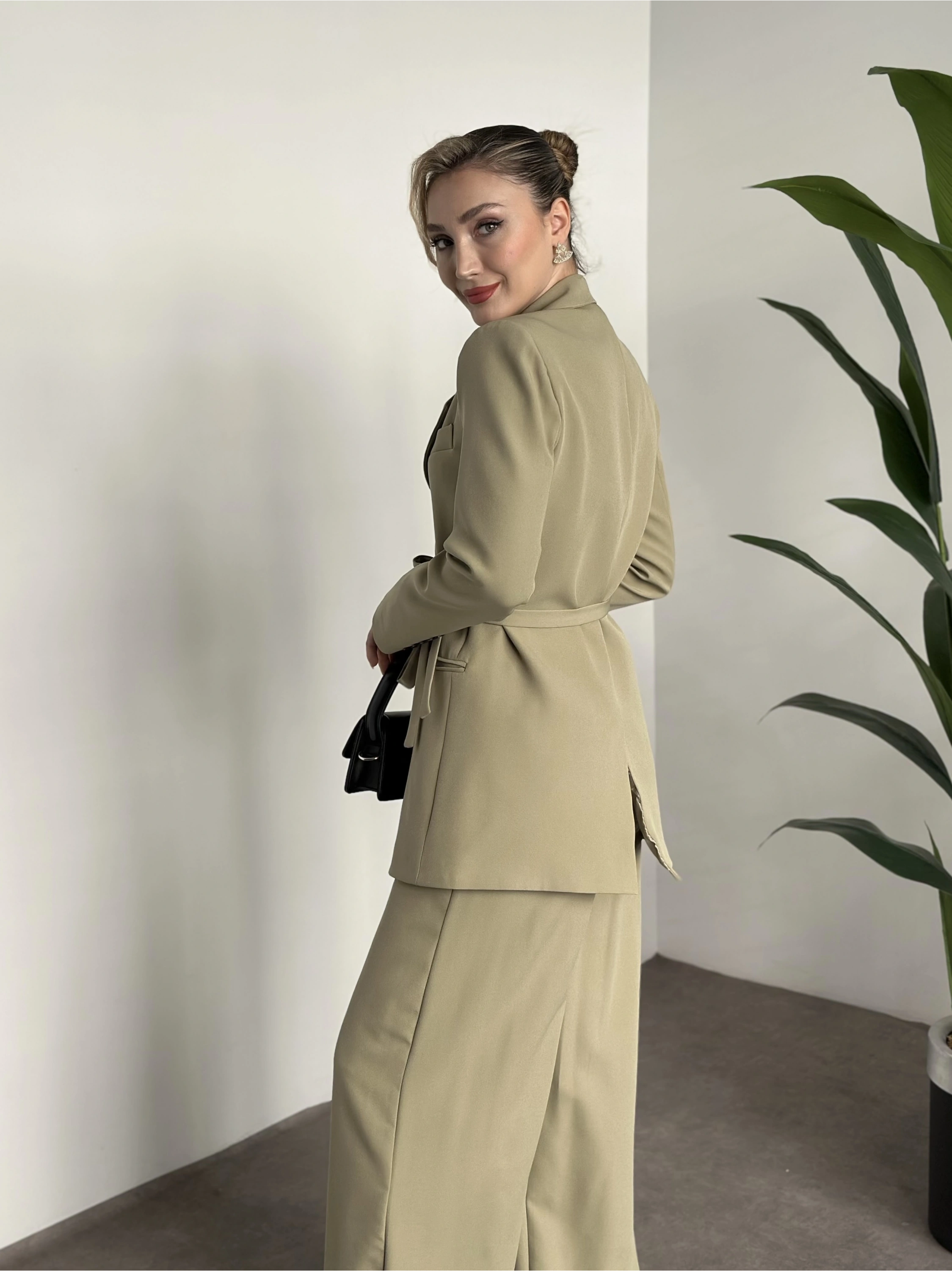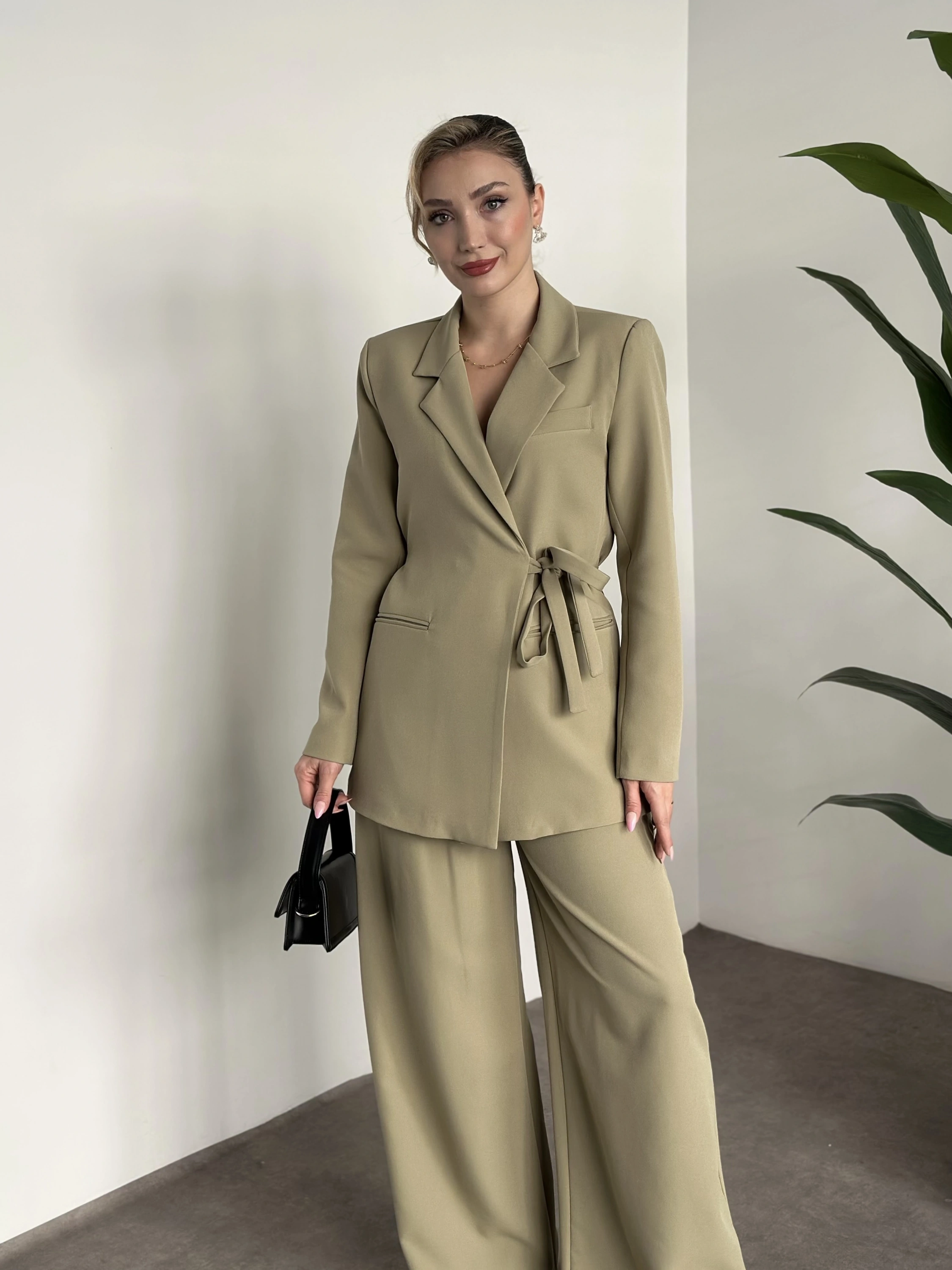 Premium yandan bağlama detaylı double kumaş takım yeşil