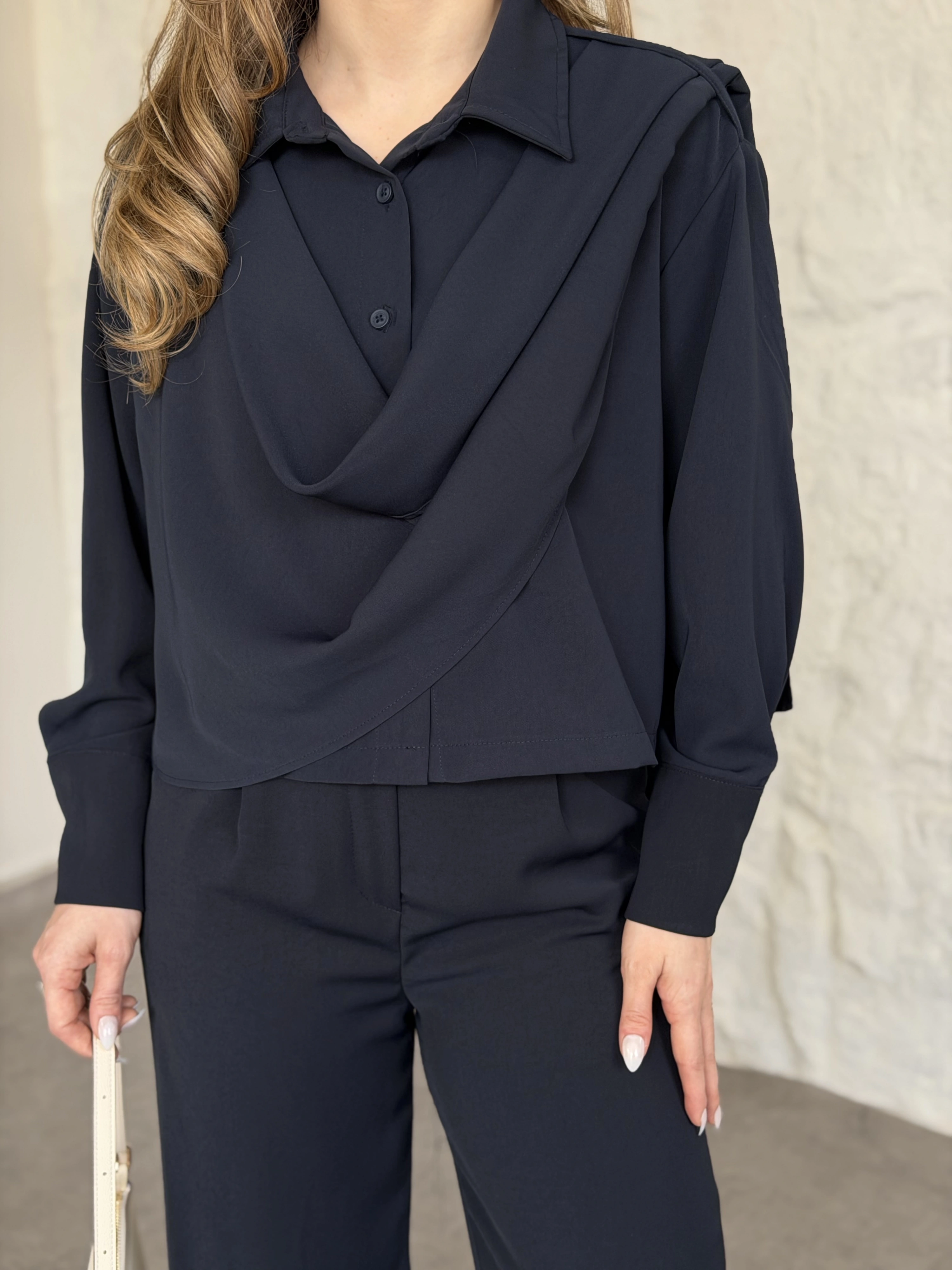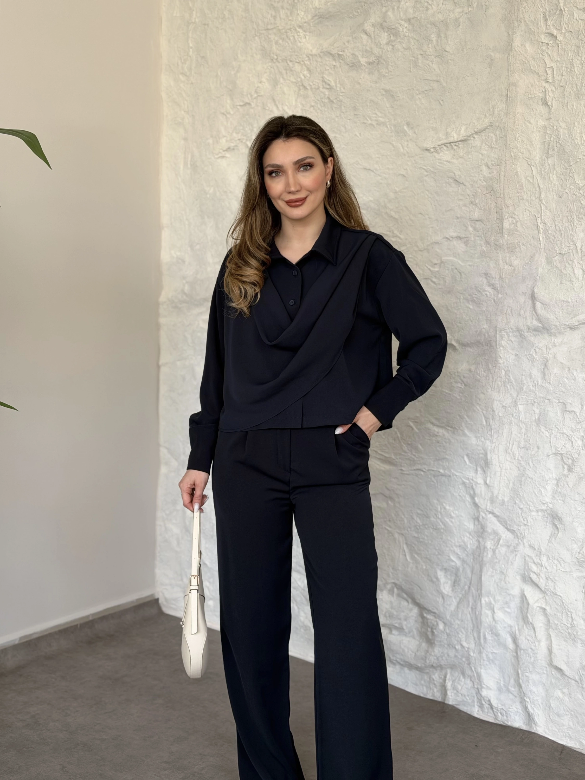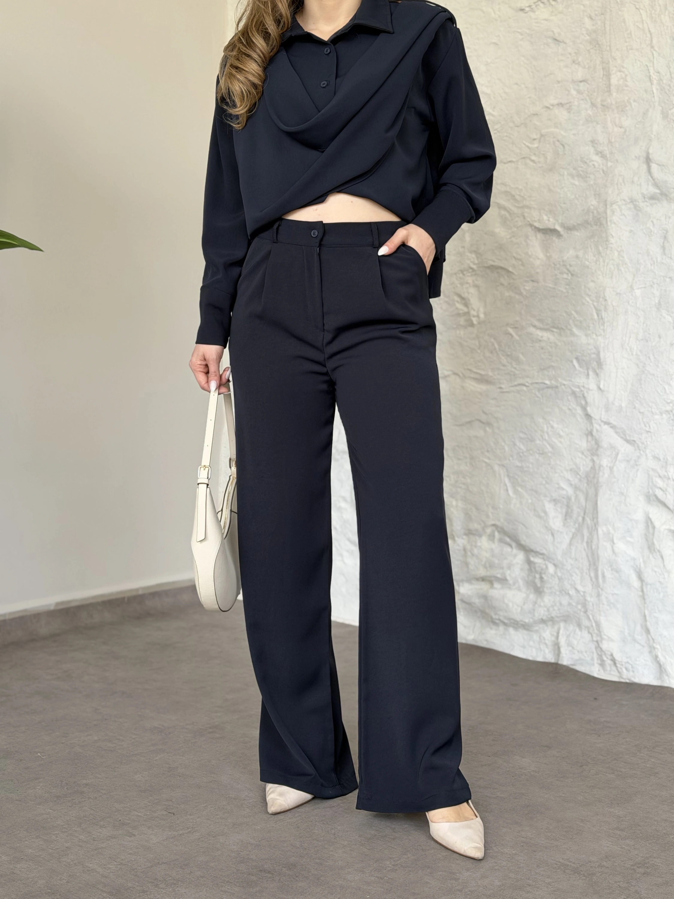 Şal detaylı ikili takım lacivert