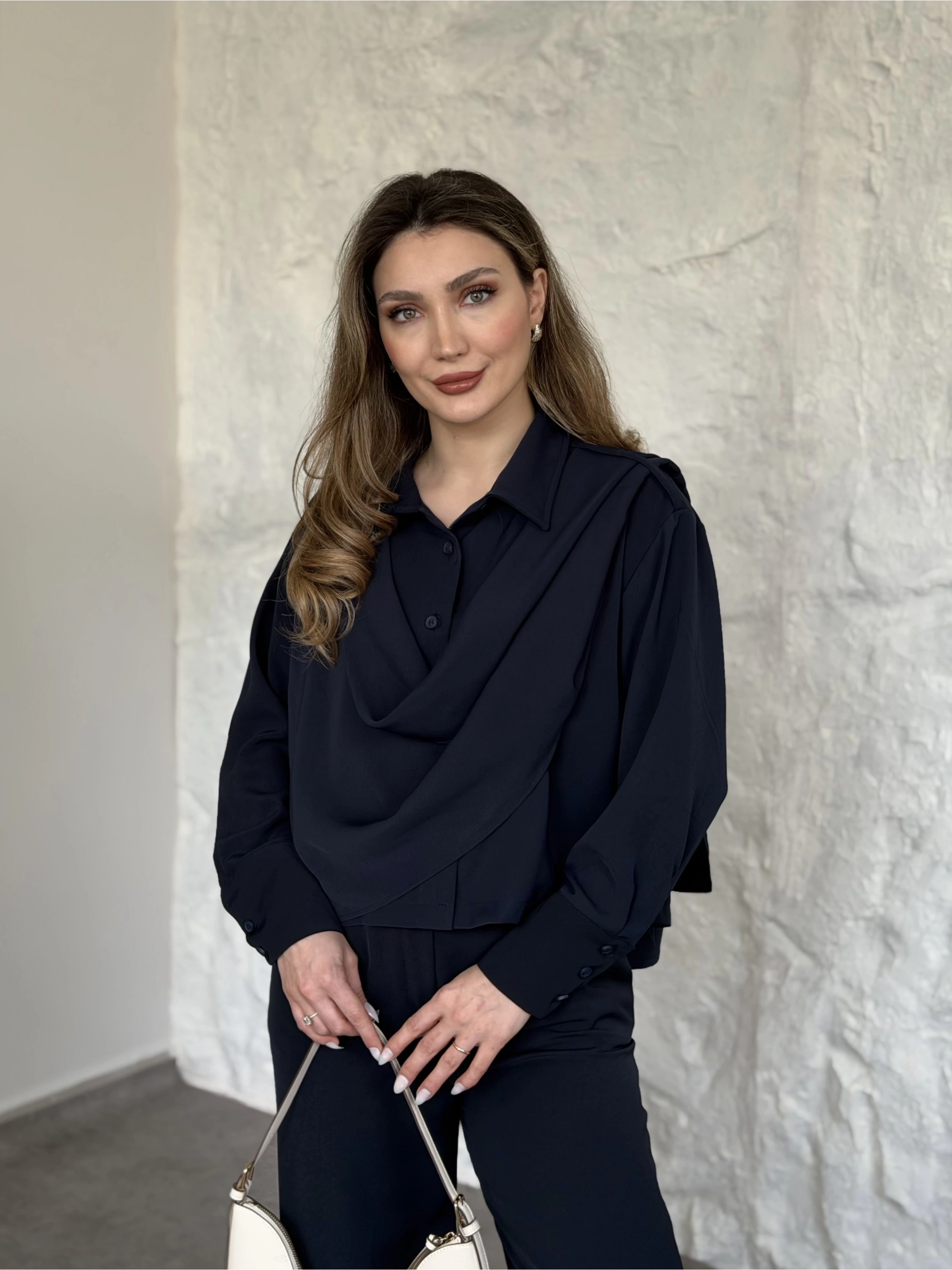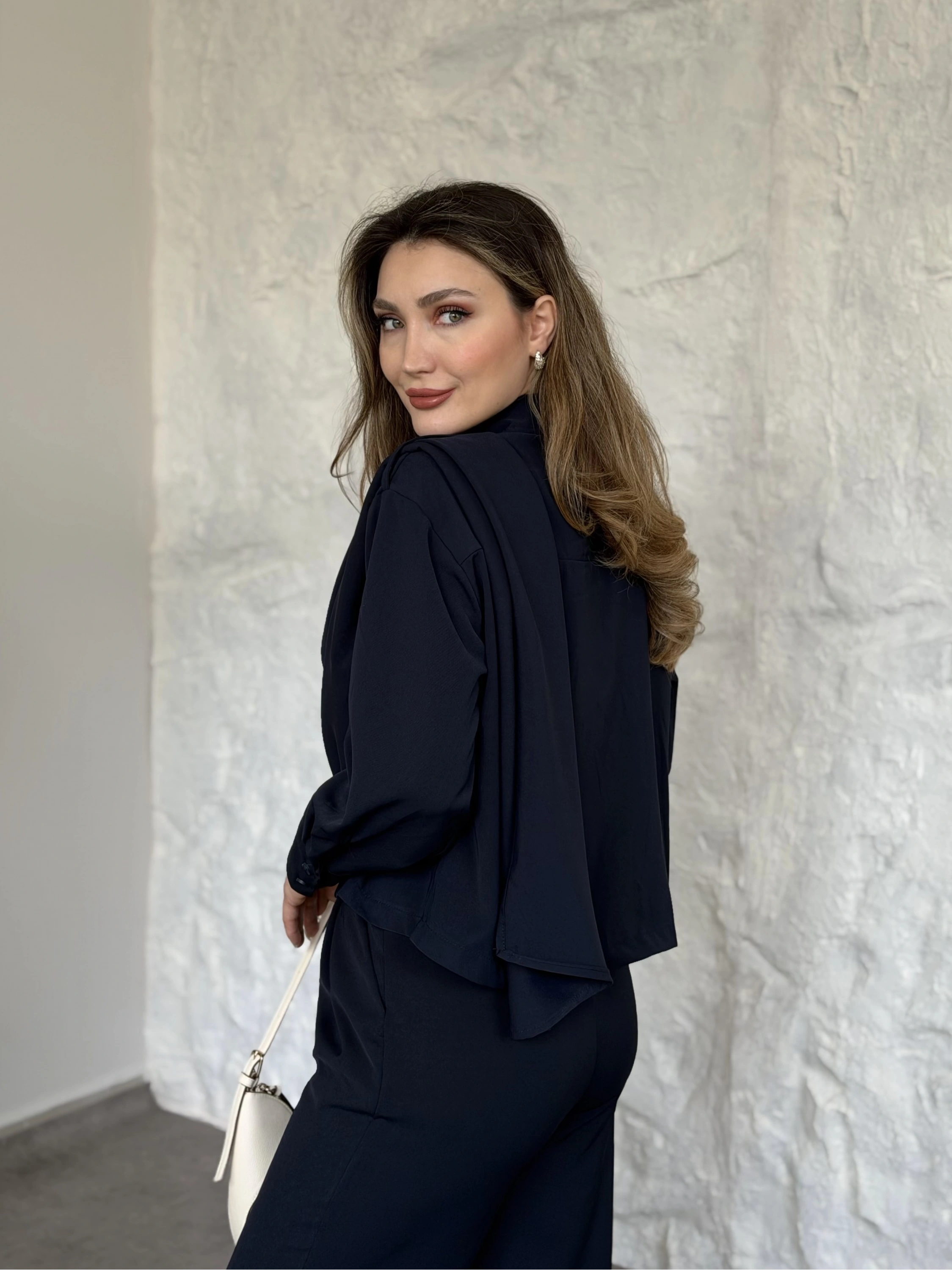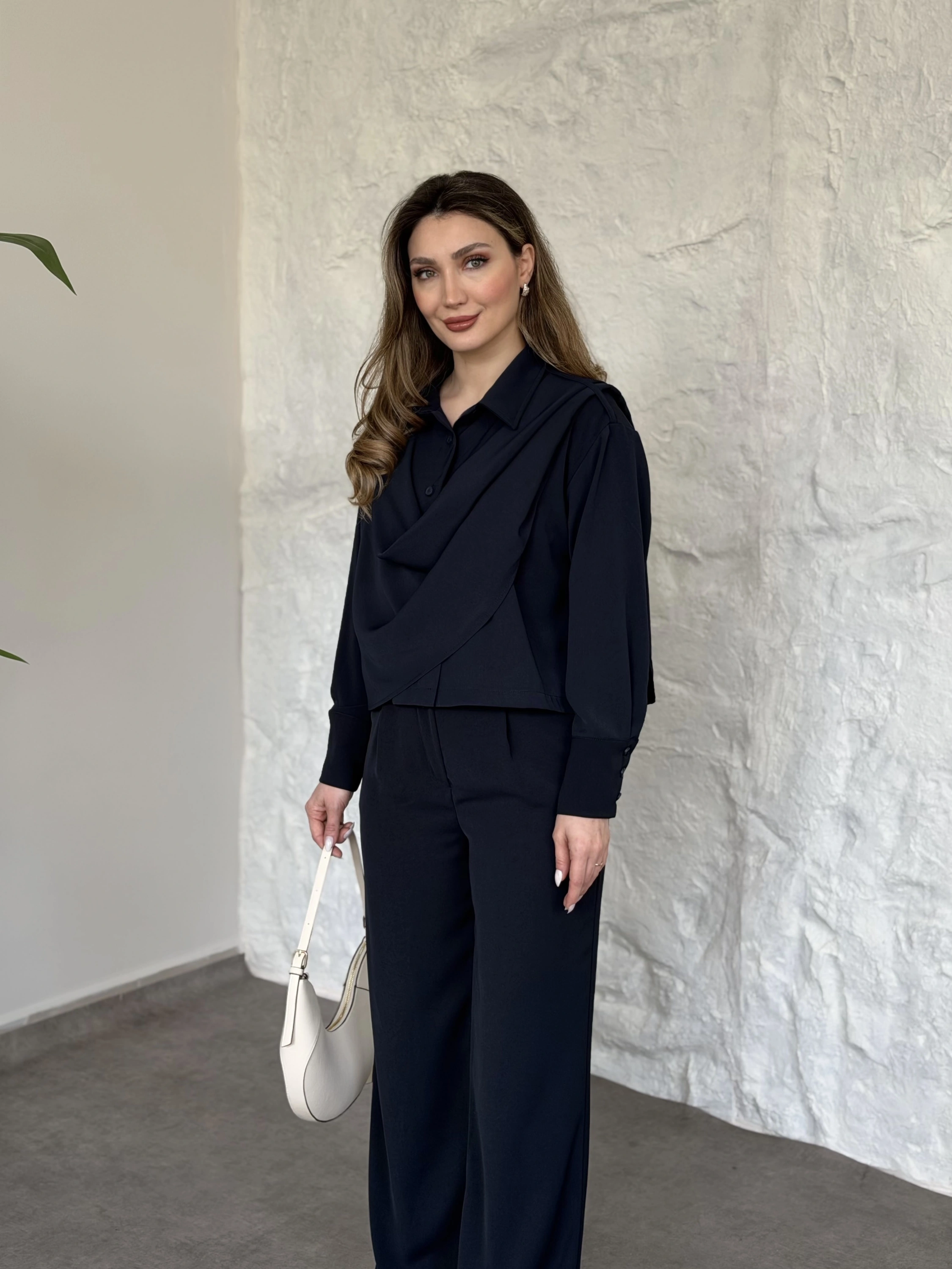 Şal detaylı ikili takım lacivert