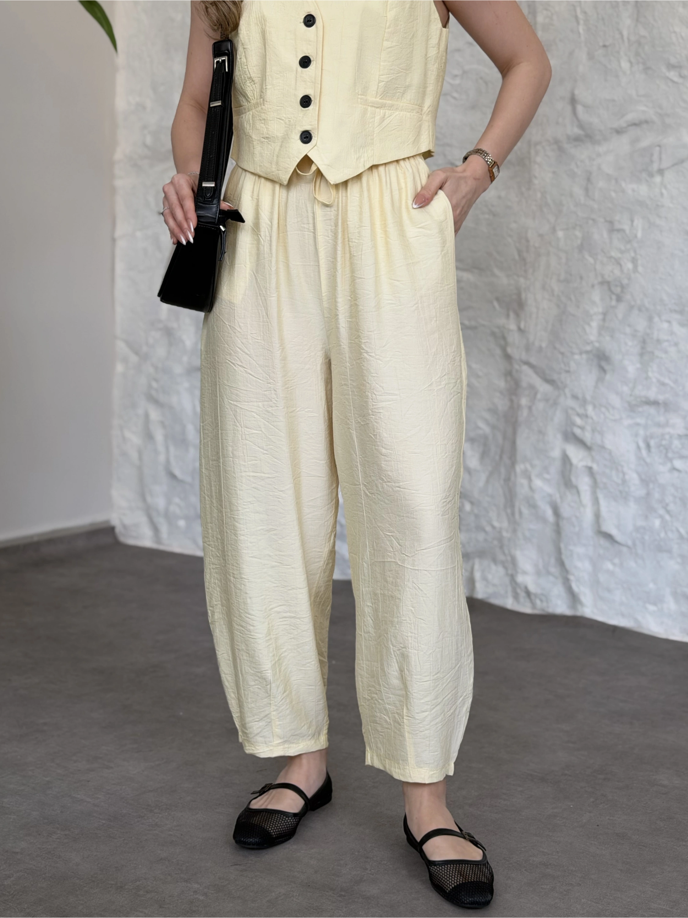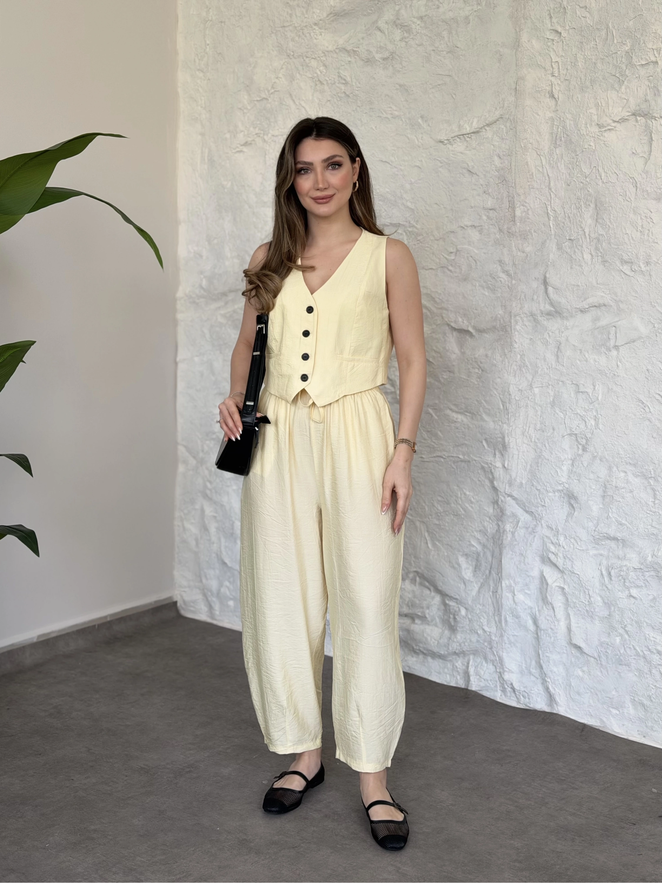Şalvar pantolon yelekli takım sarı