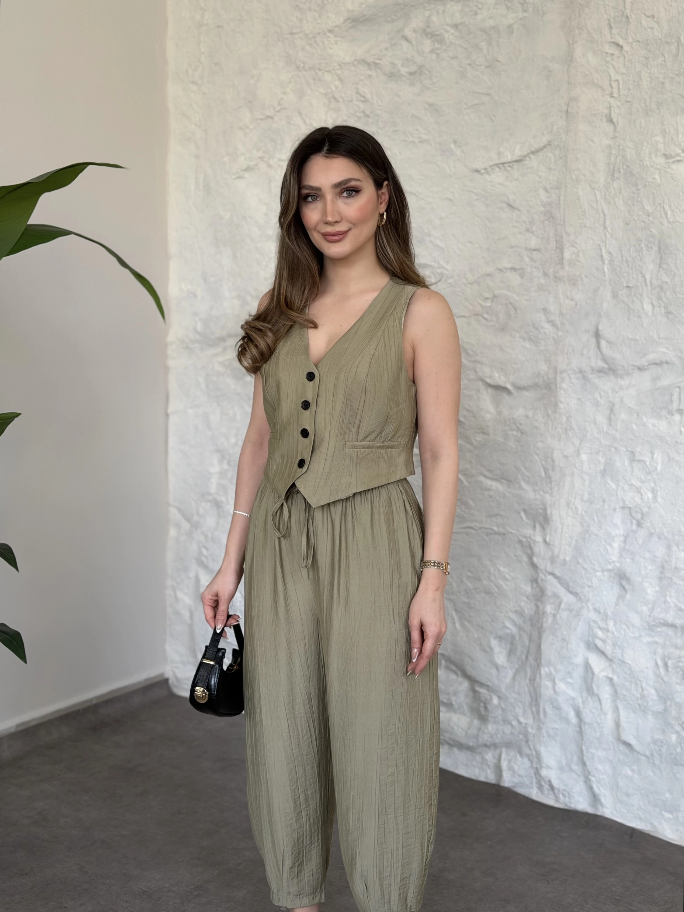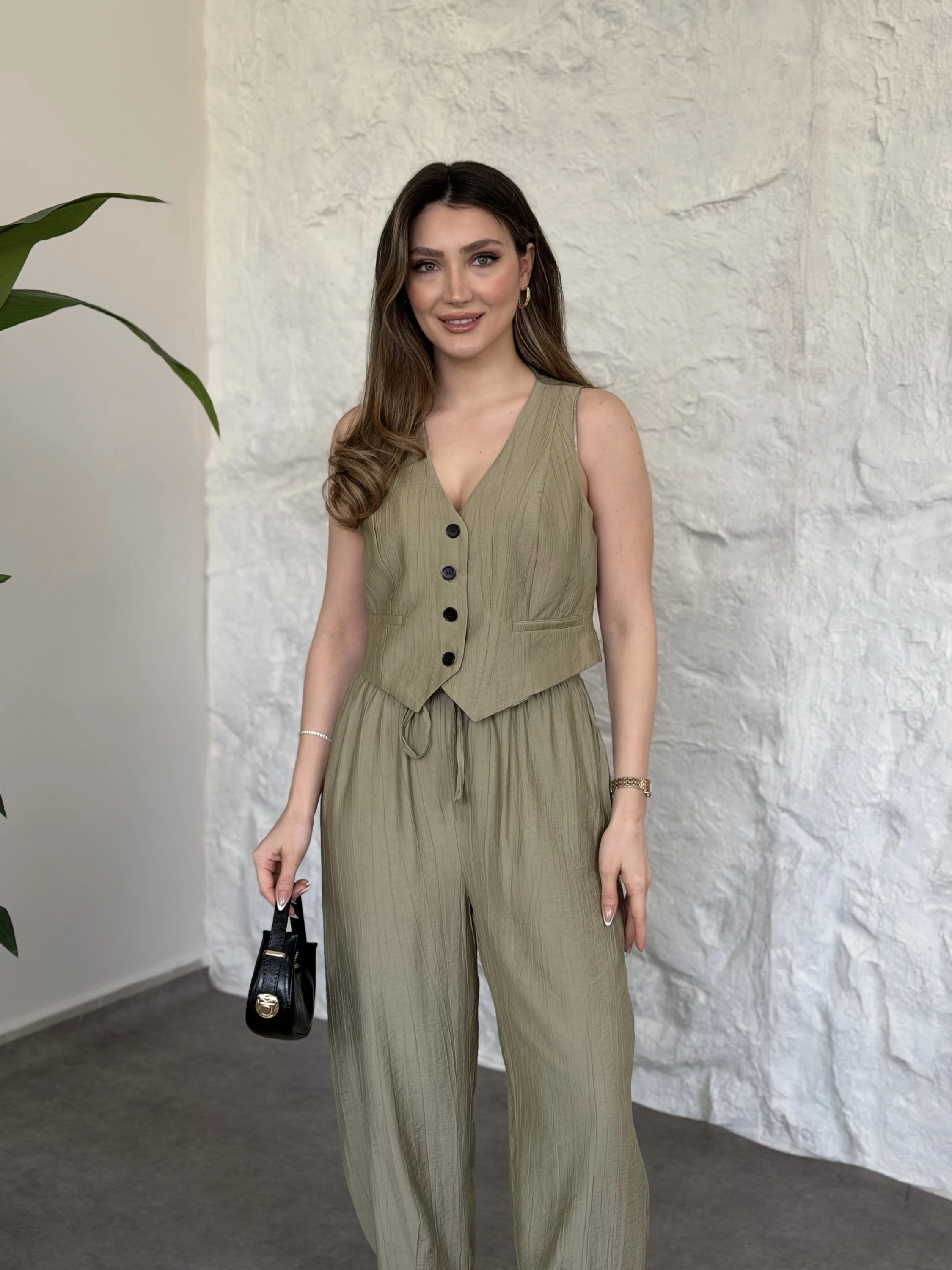 Şalvar pantolon yelekli takım vizon