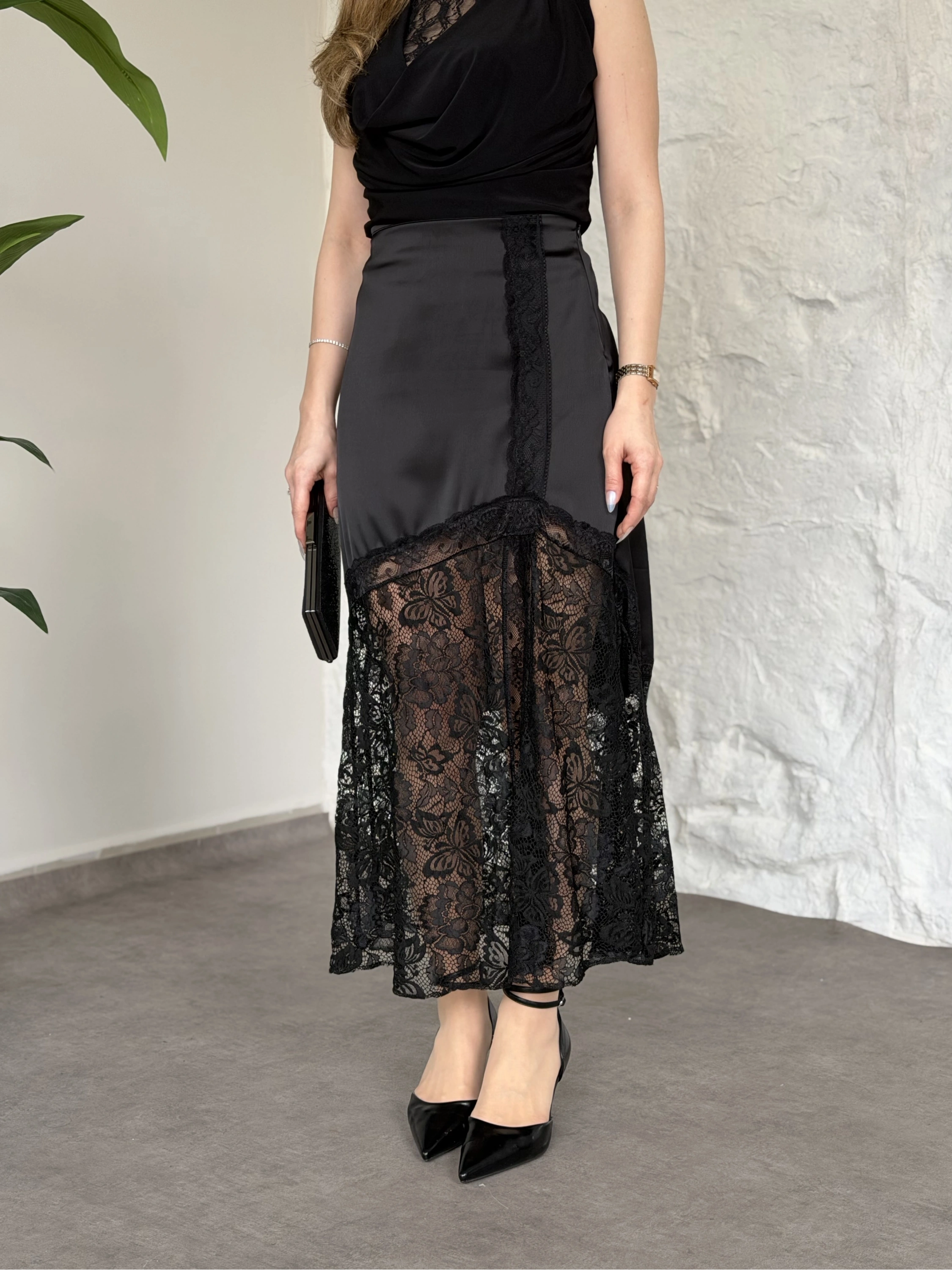 Kemer detaylı yırtmaçlı piliseli etek mürdüm