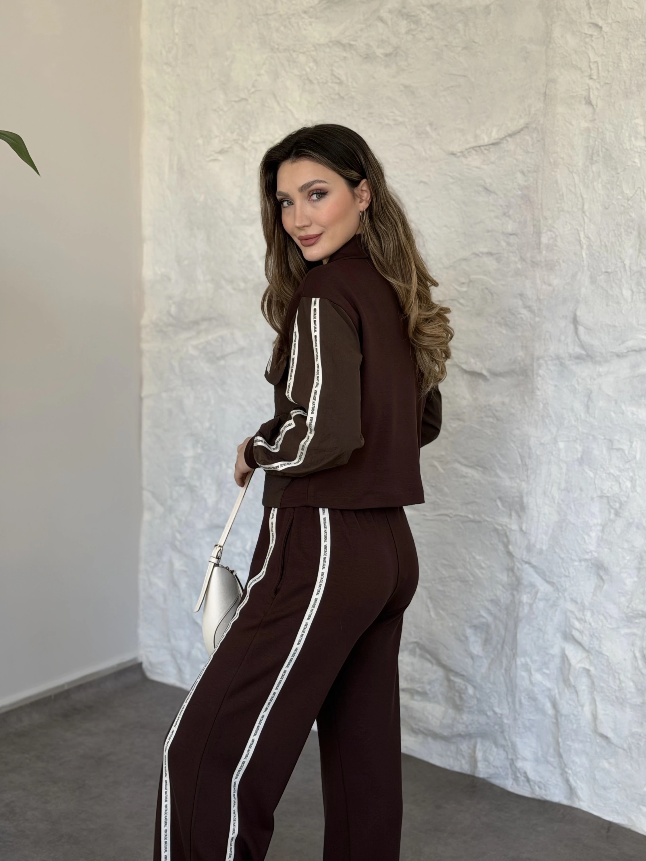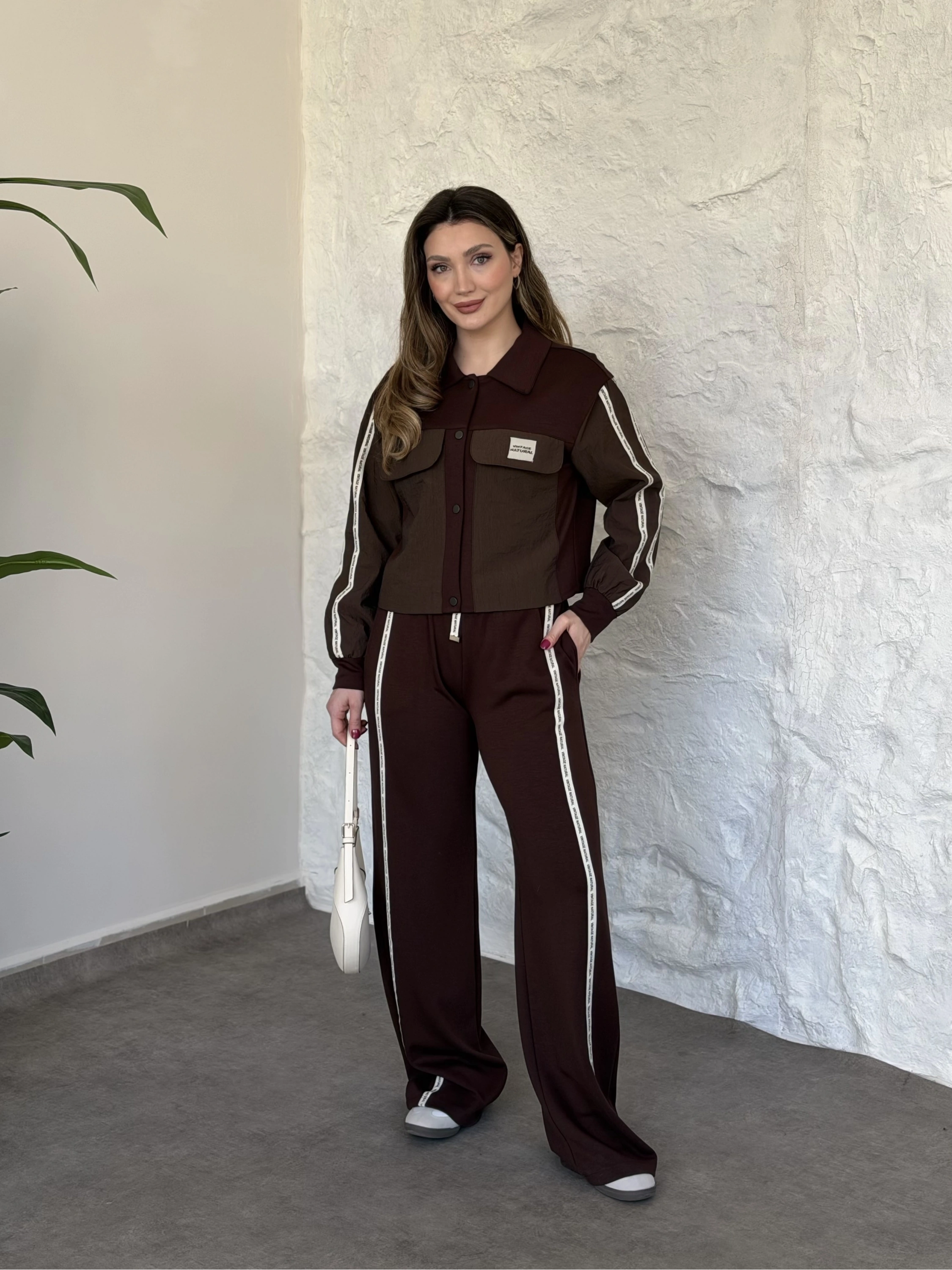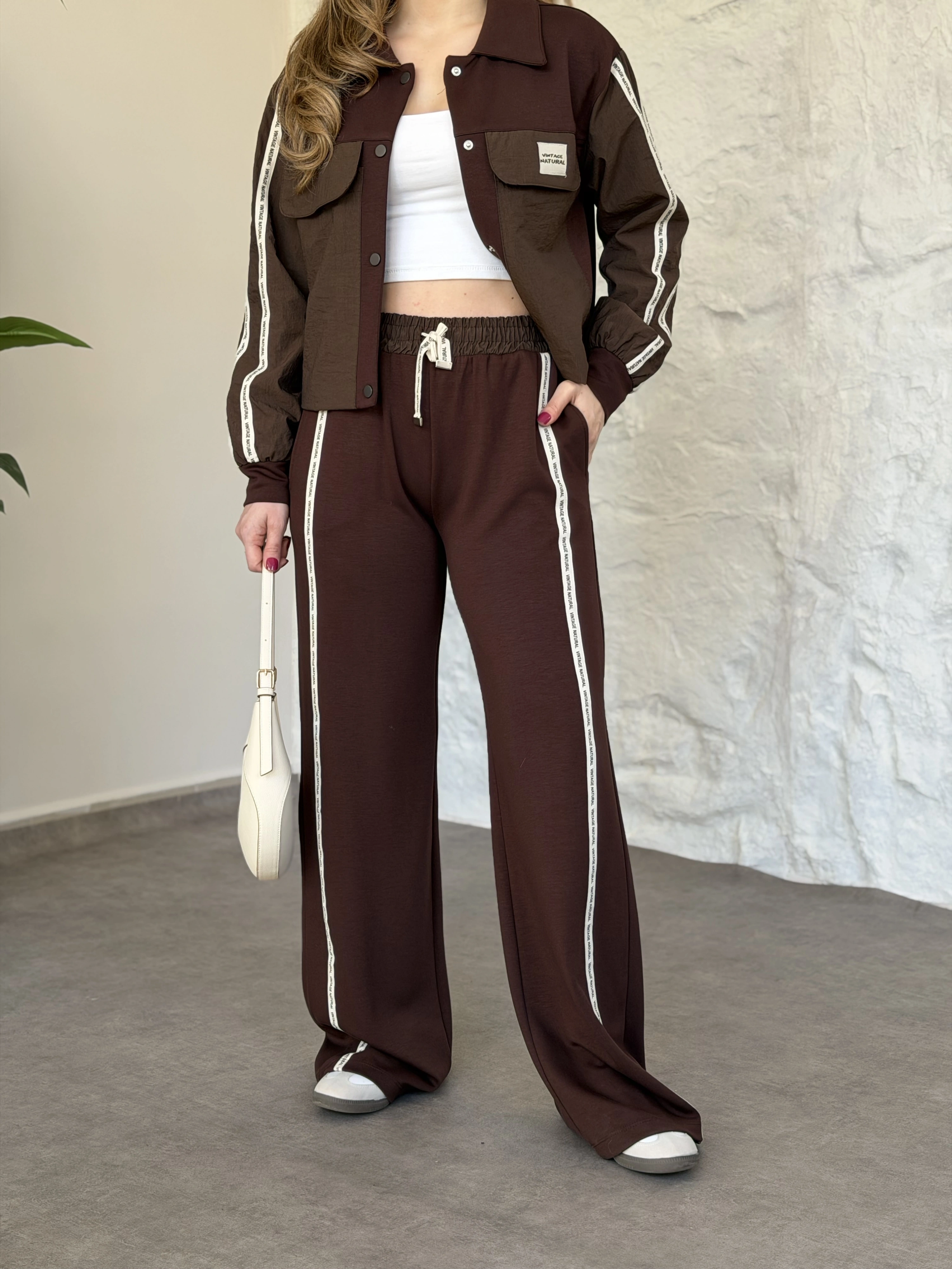 Şerit paraşüt detaylı vintage takım kahve