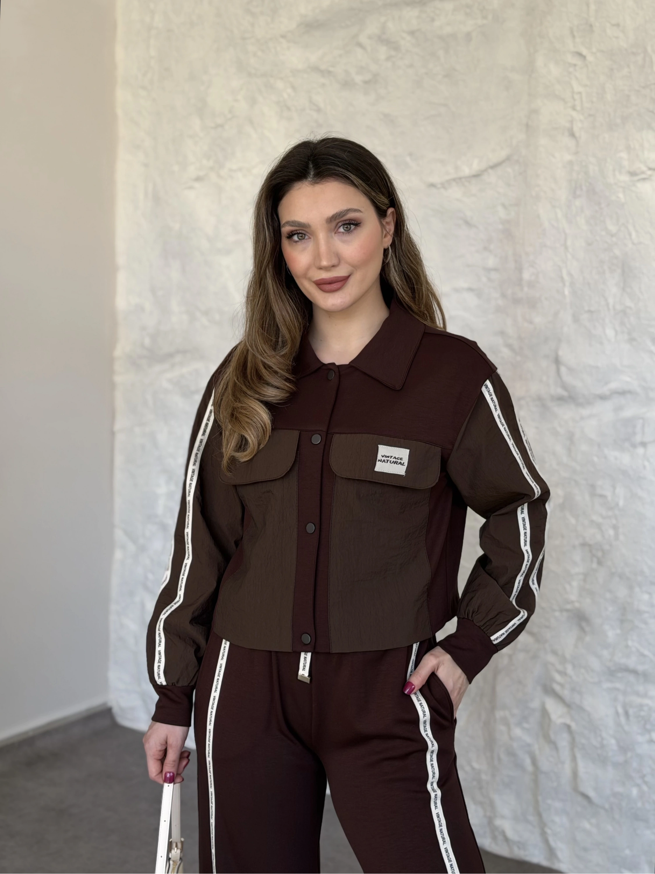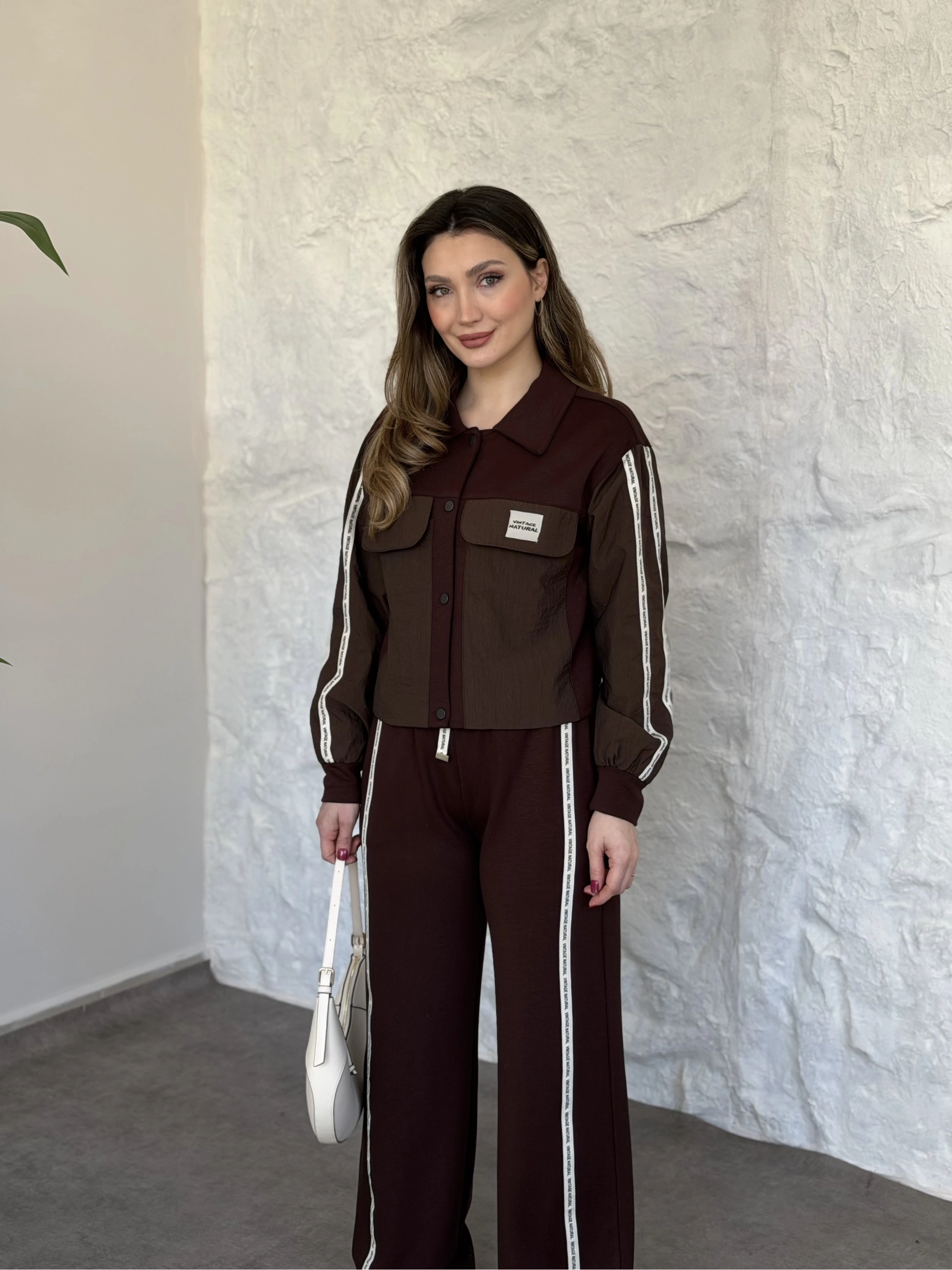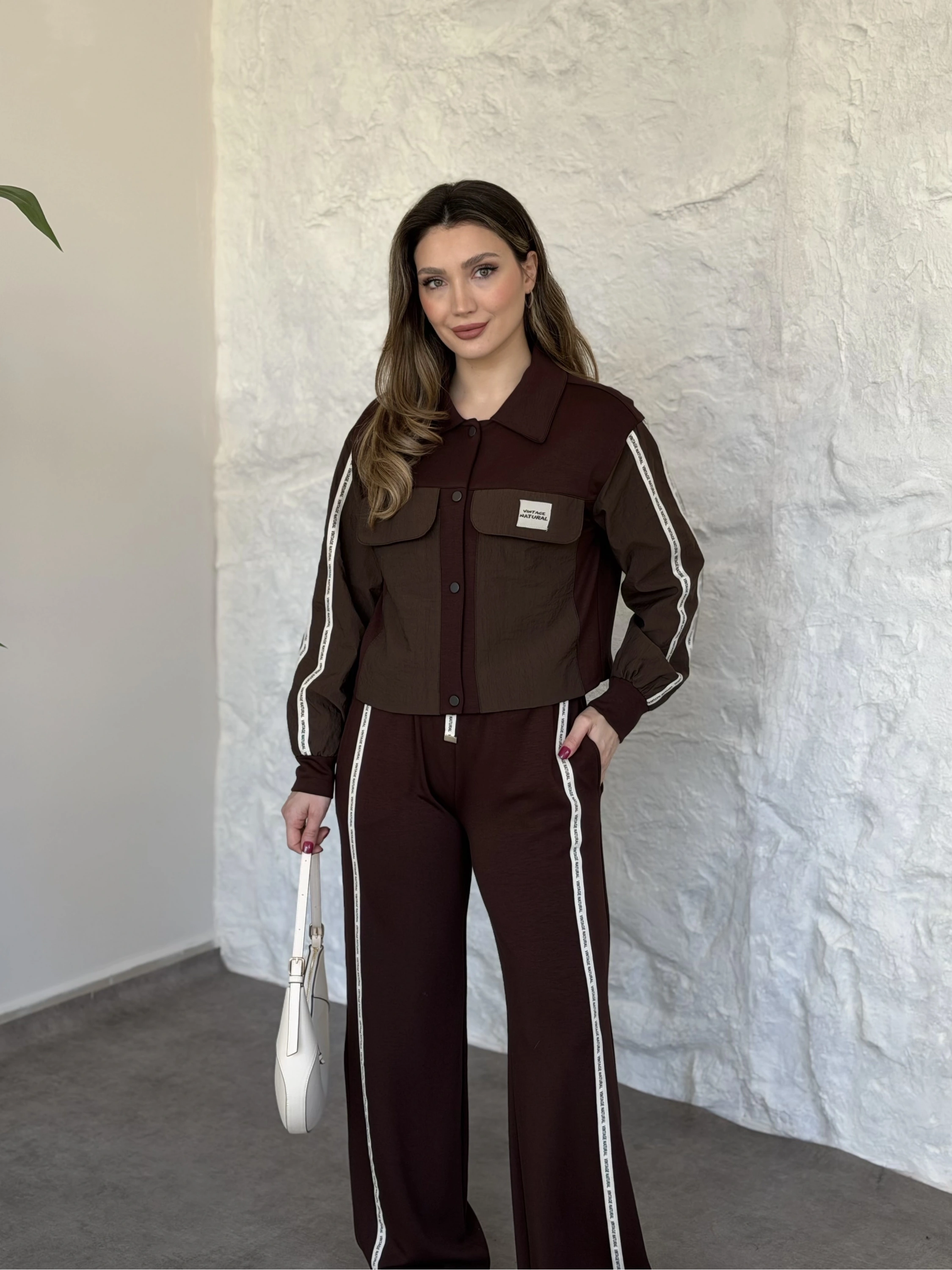 Şerit paraşüt detaylı vintage takım kahve