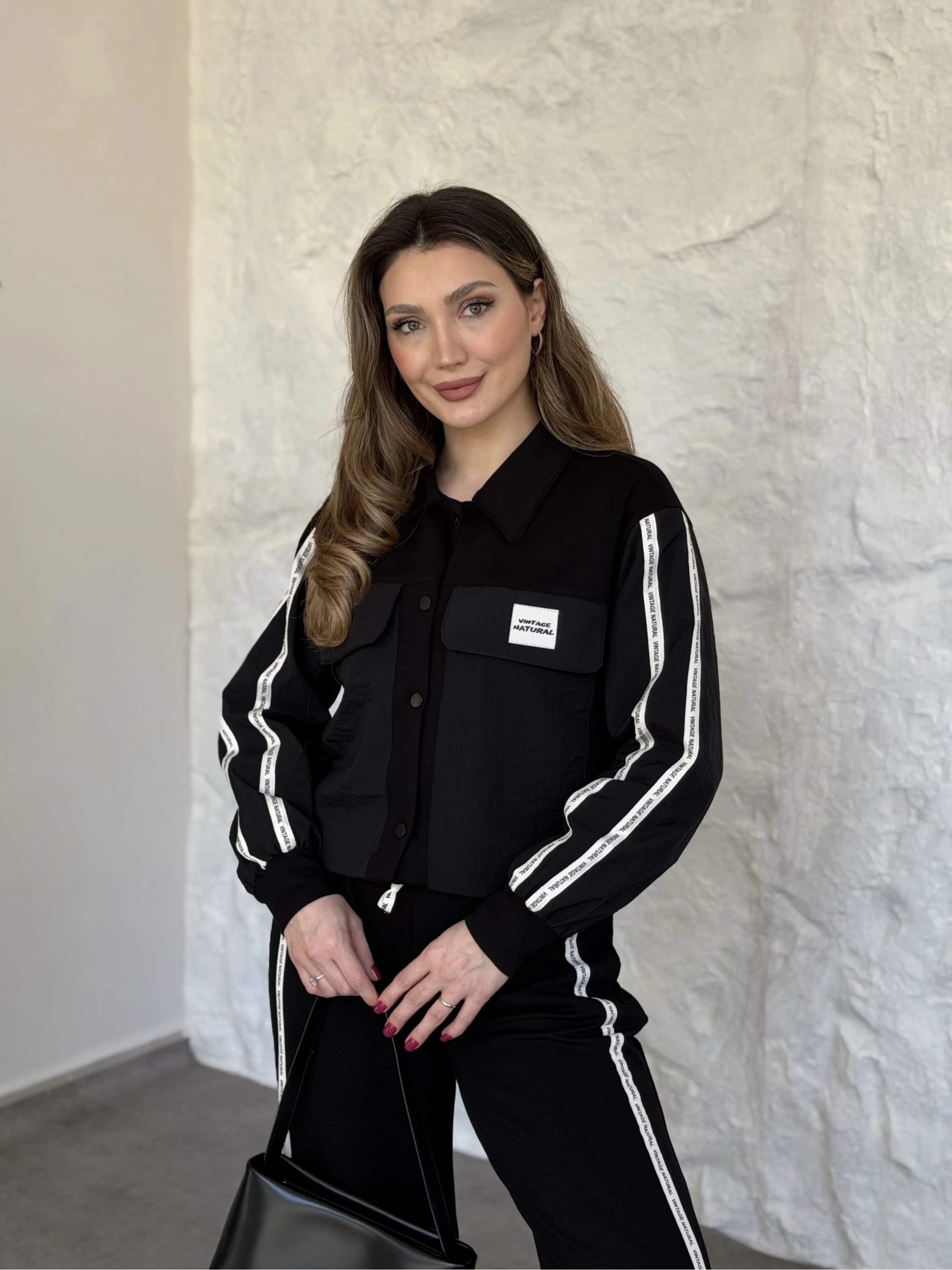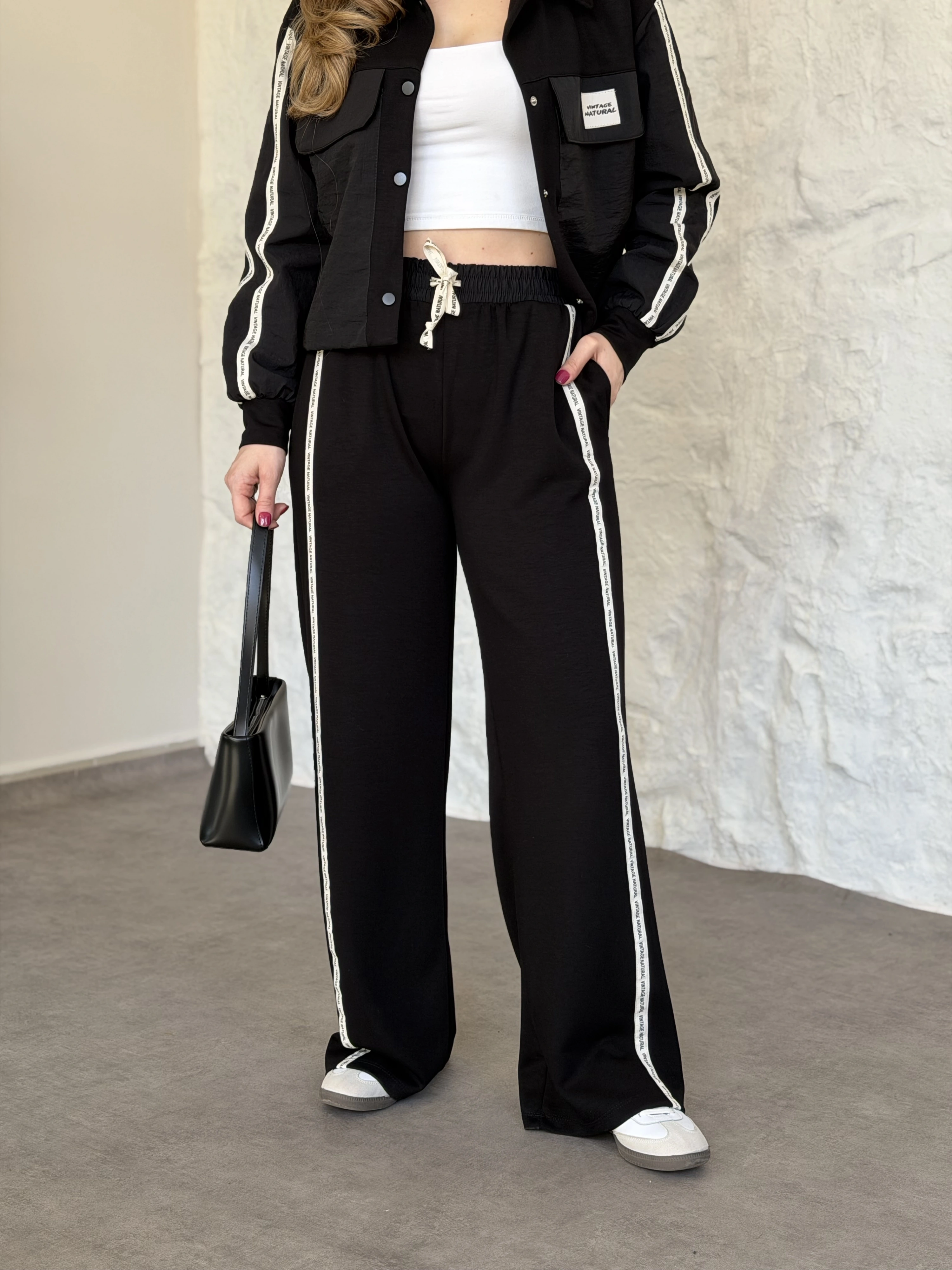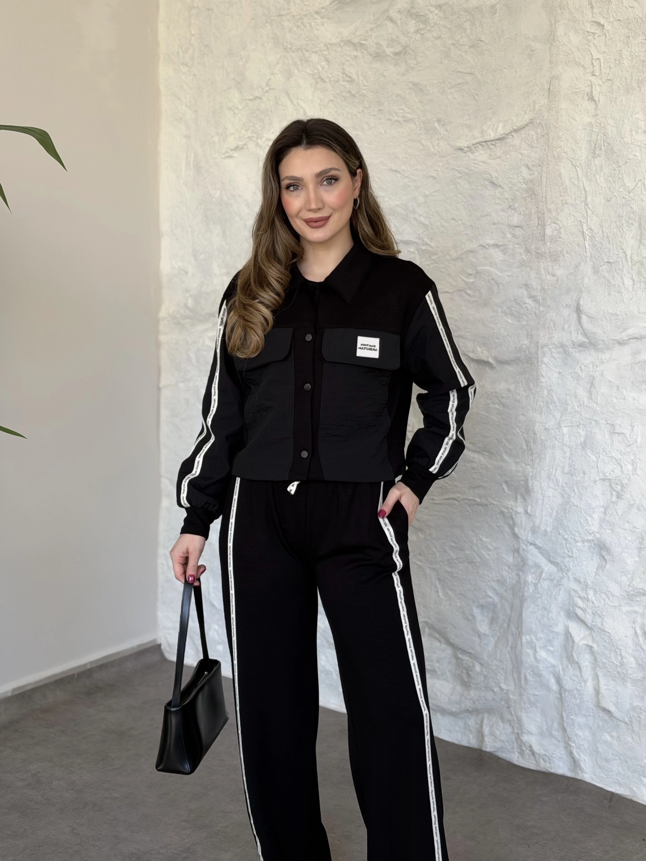 Premium yandan bağlama detaylı double kumaş takım siyah