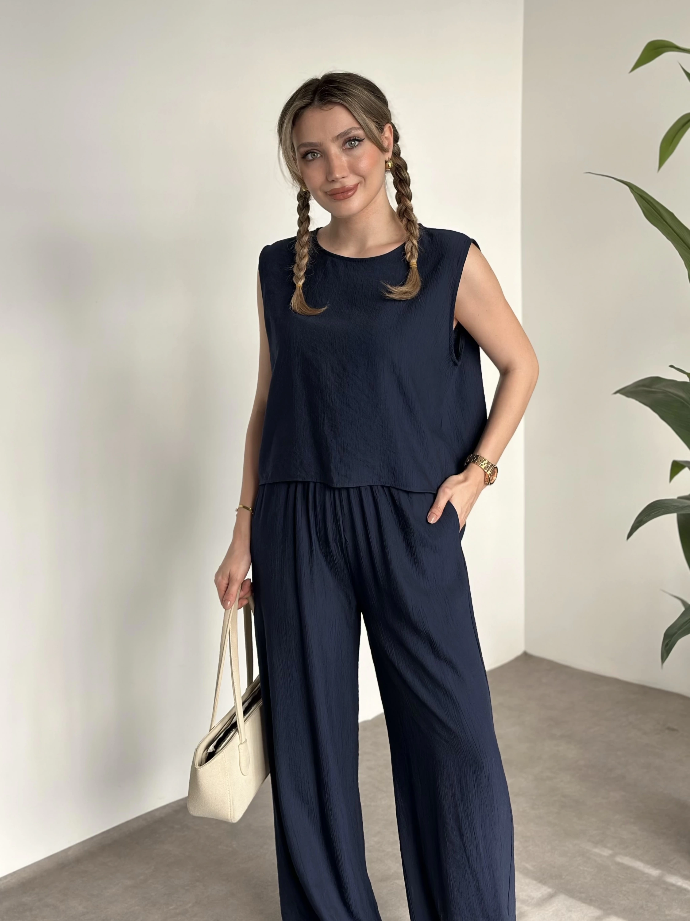 Premium yandan bağlama detaylı double kumaş takım lacivert
