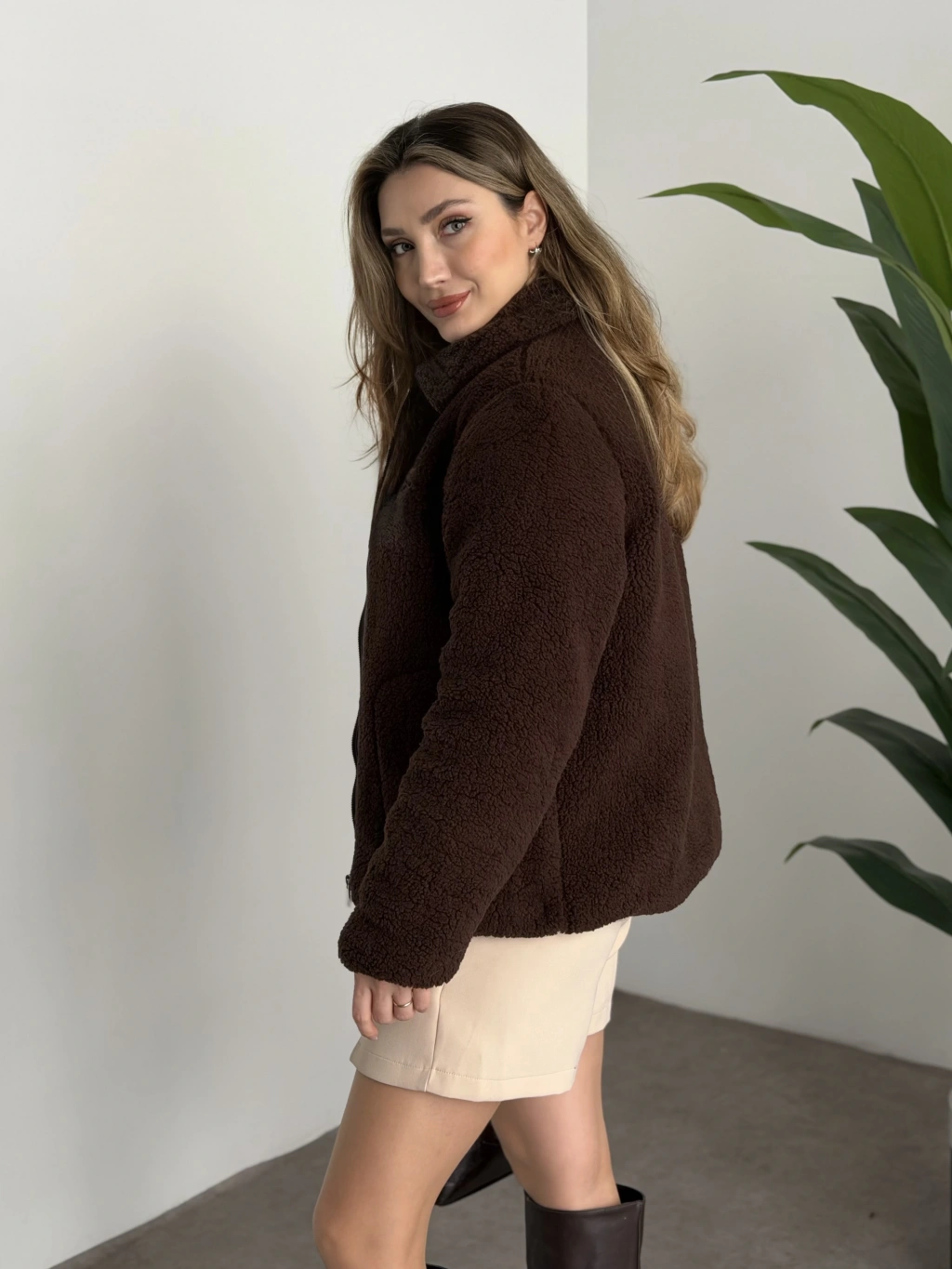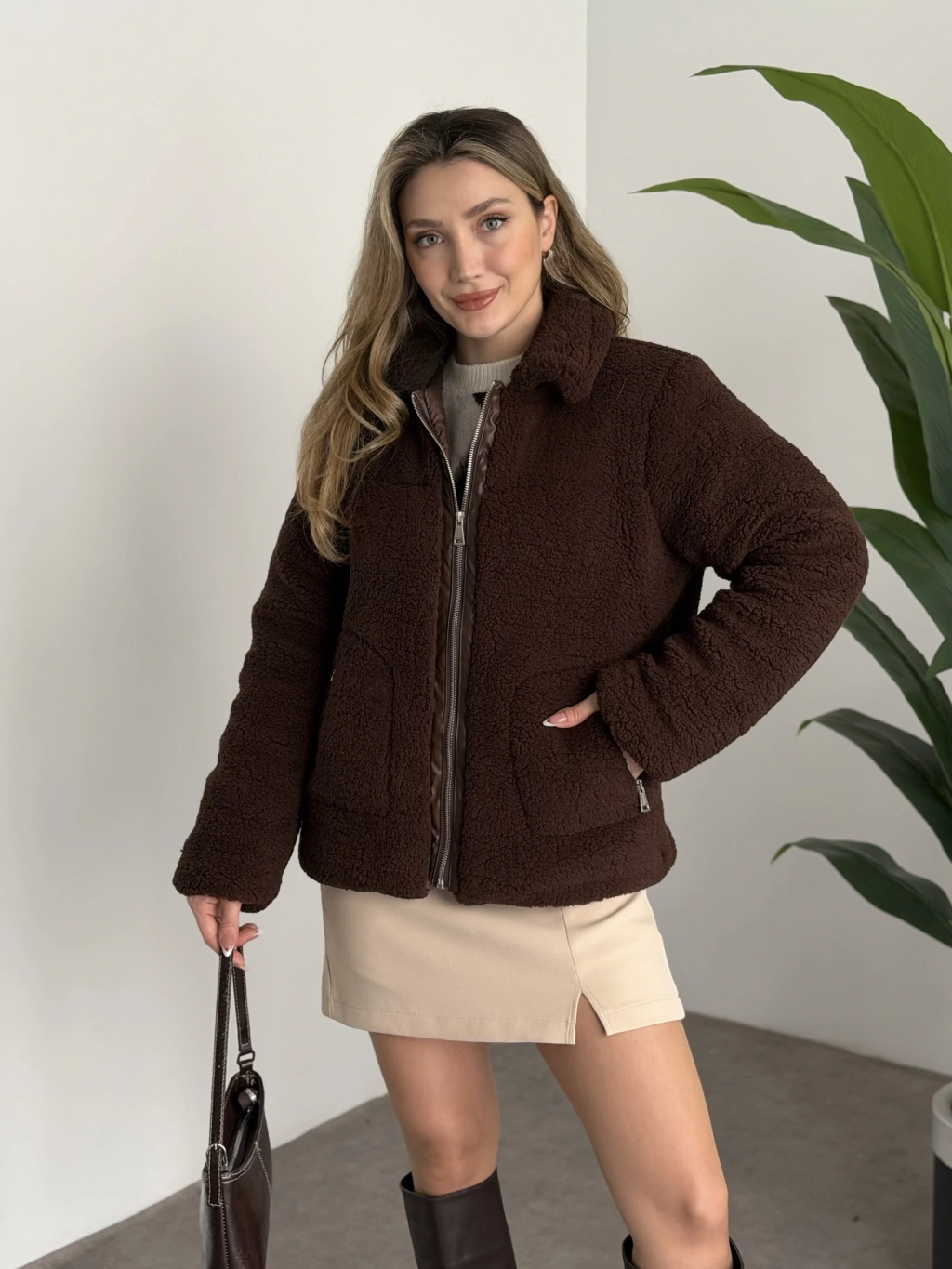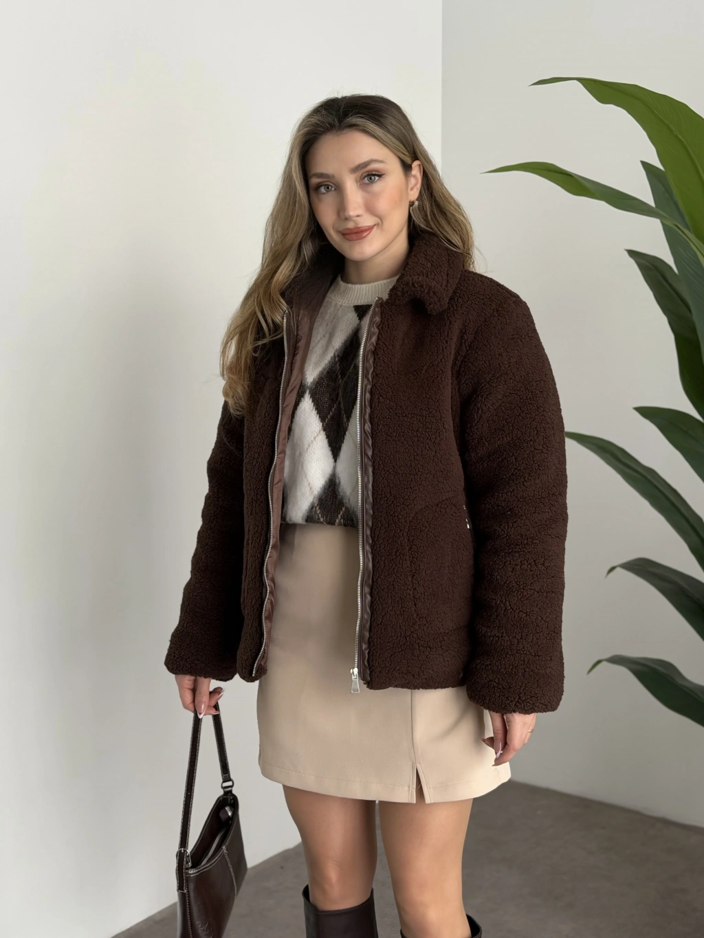 Dokulu süet içi peluşlu oversize marka model mont kahve