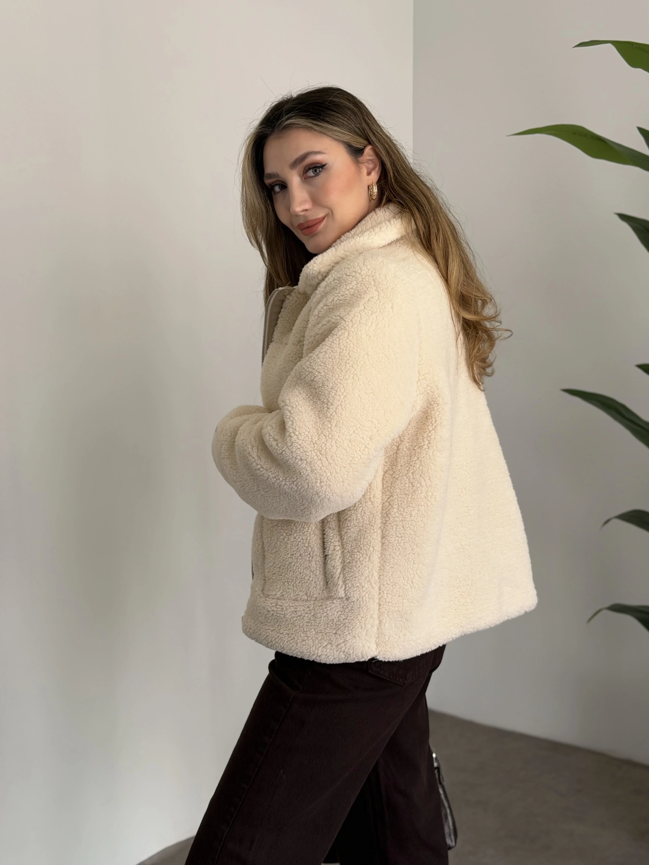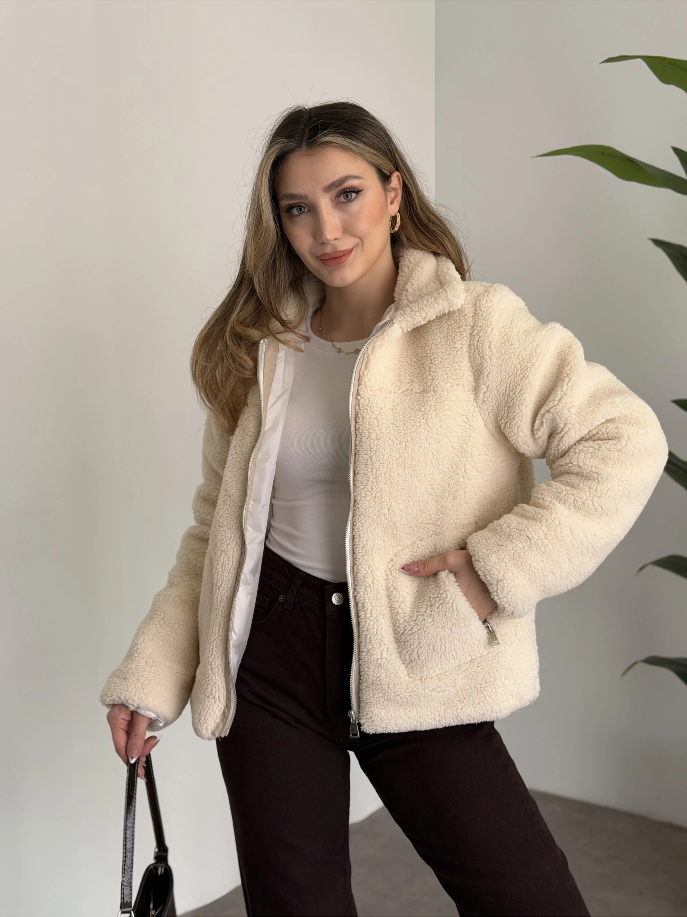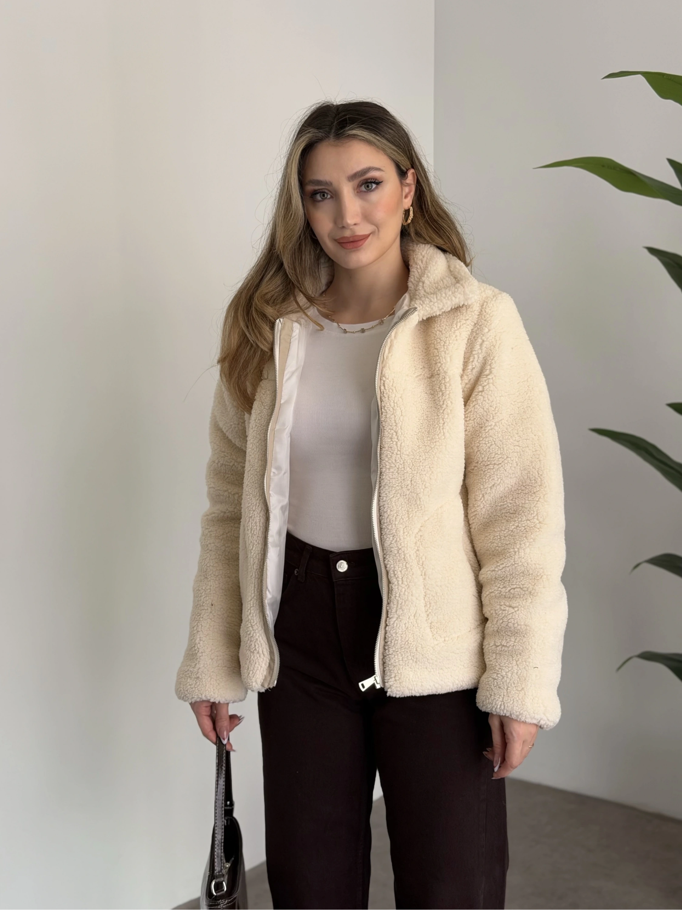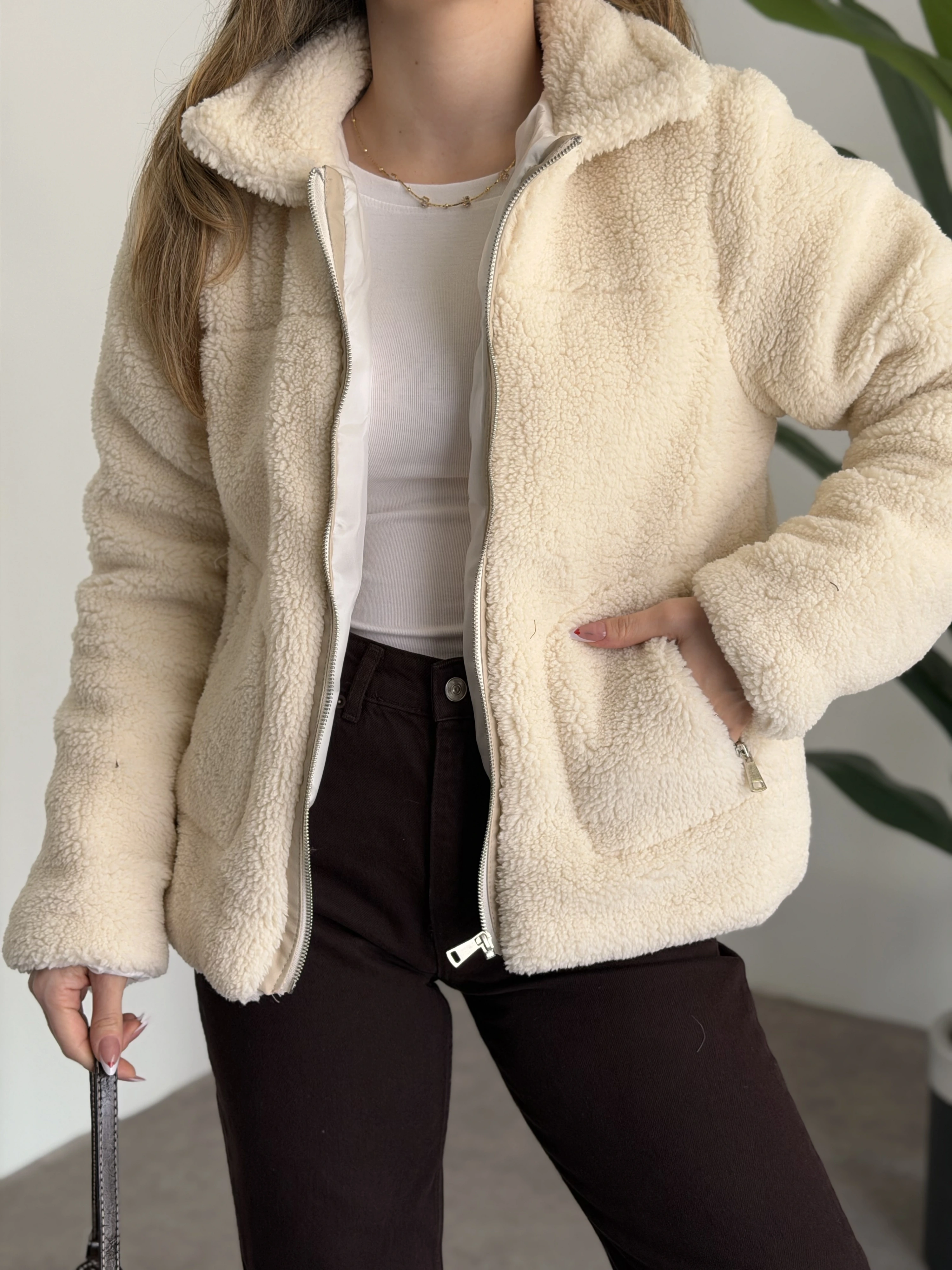 Dokulu süet içi peluşlu oversize marka model mont kahve