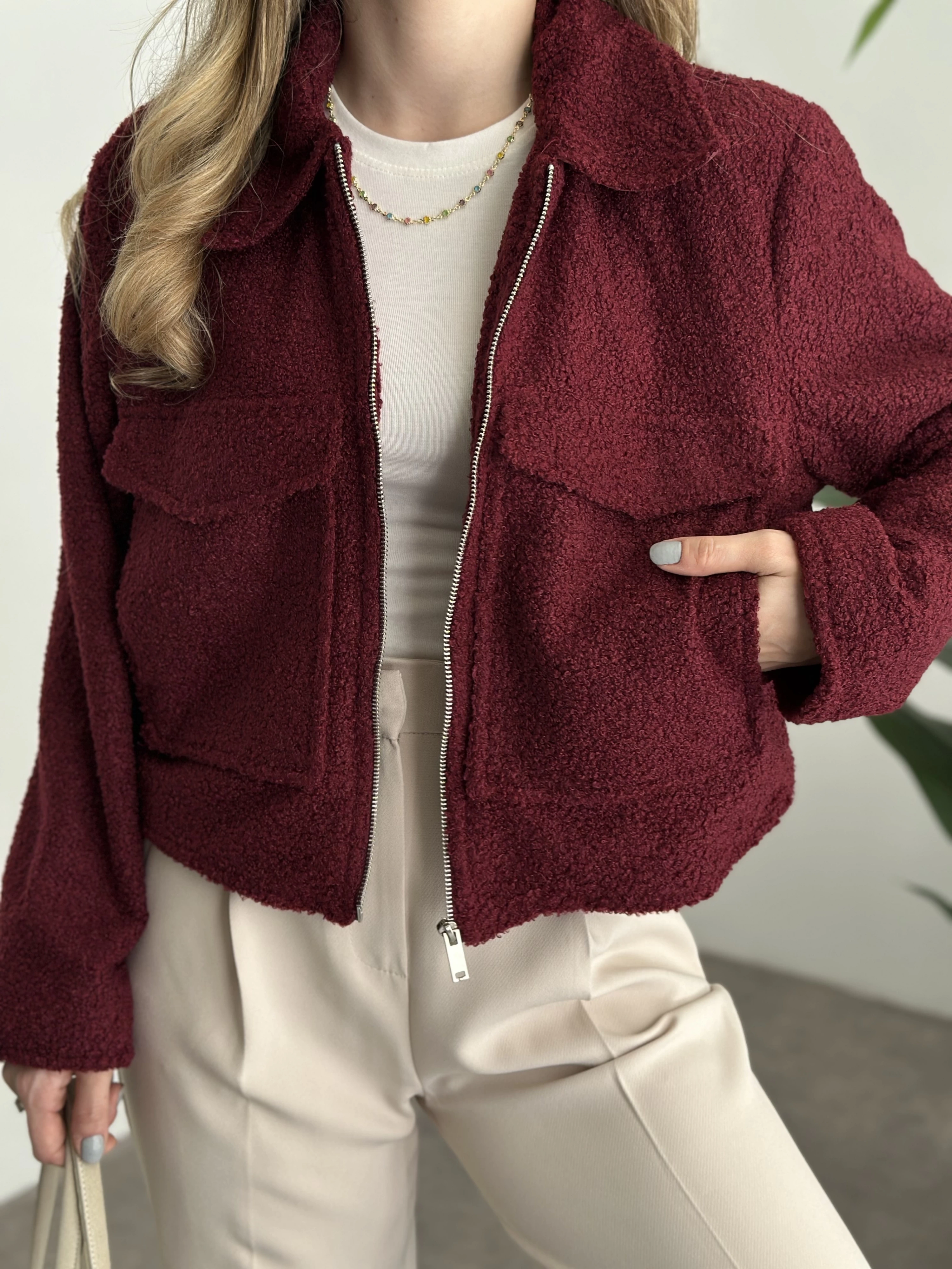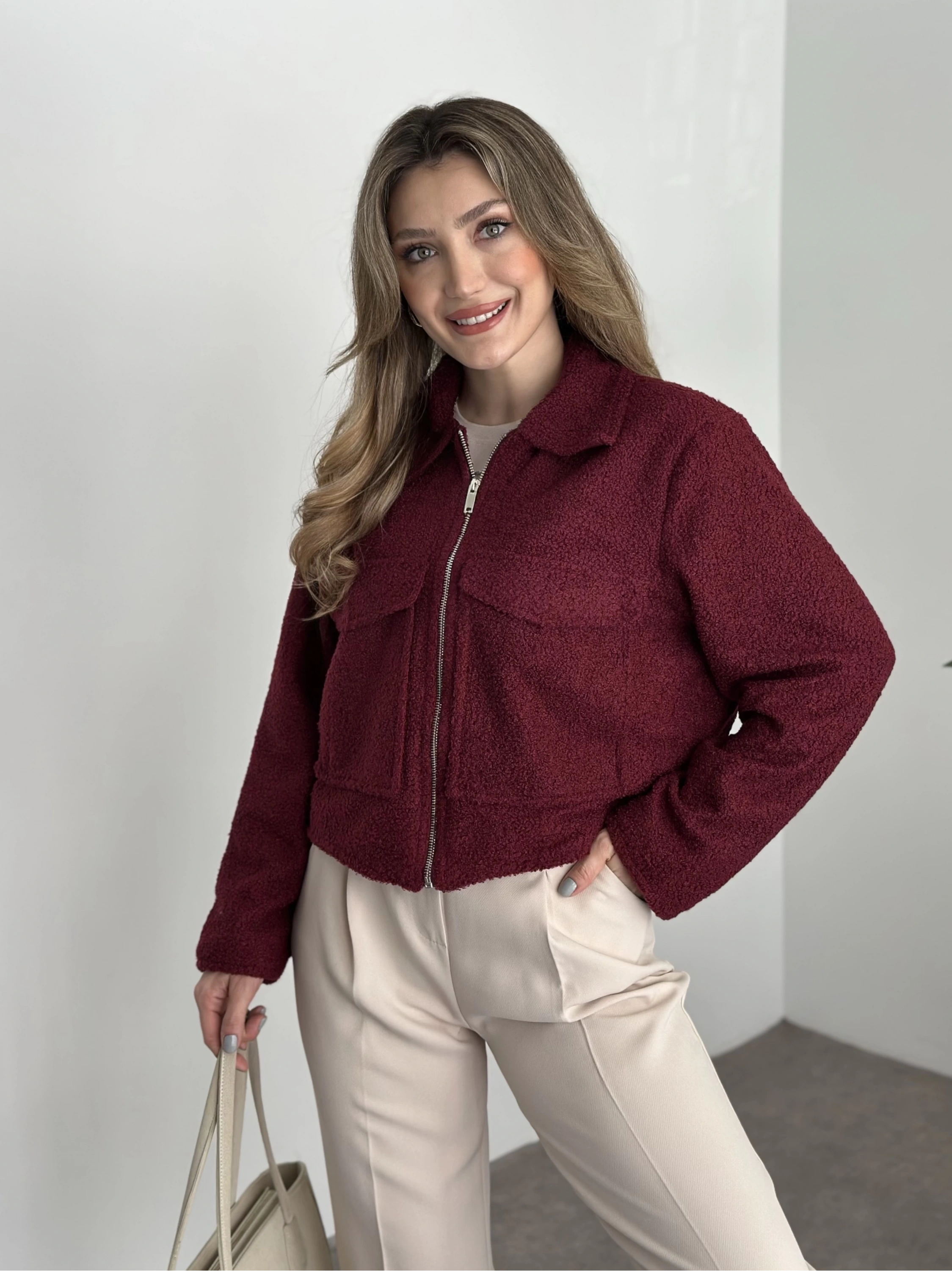 Dokulu süet içi peluşlu oversize marka model mont kahve