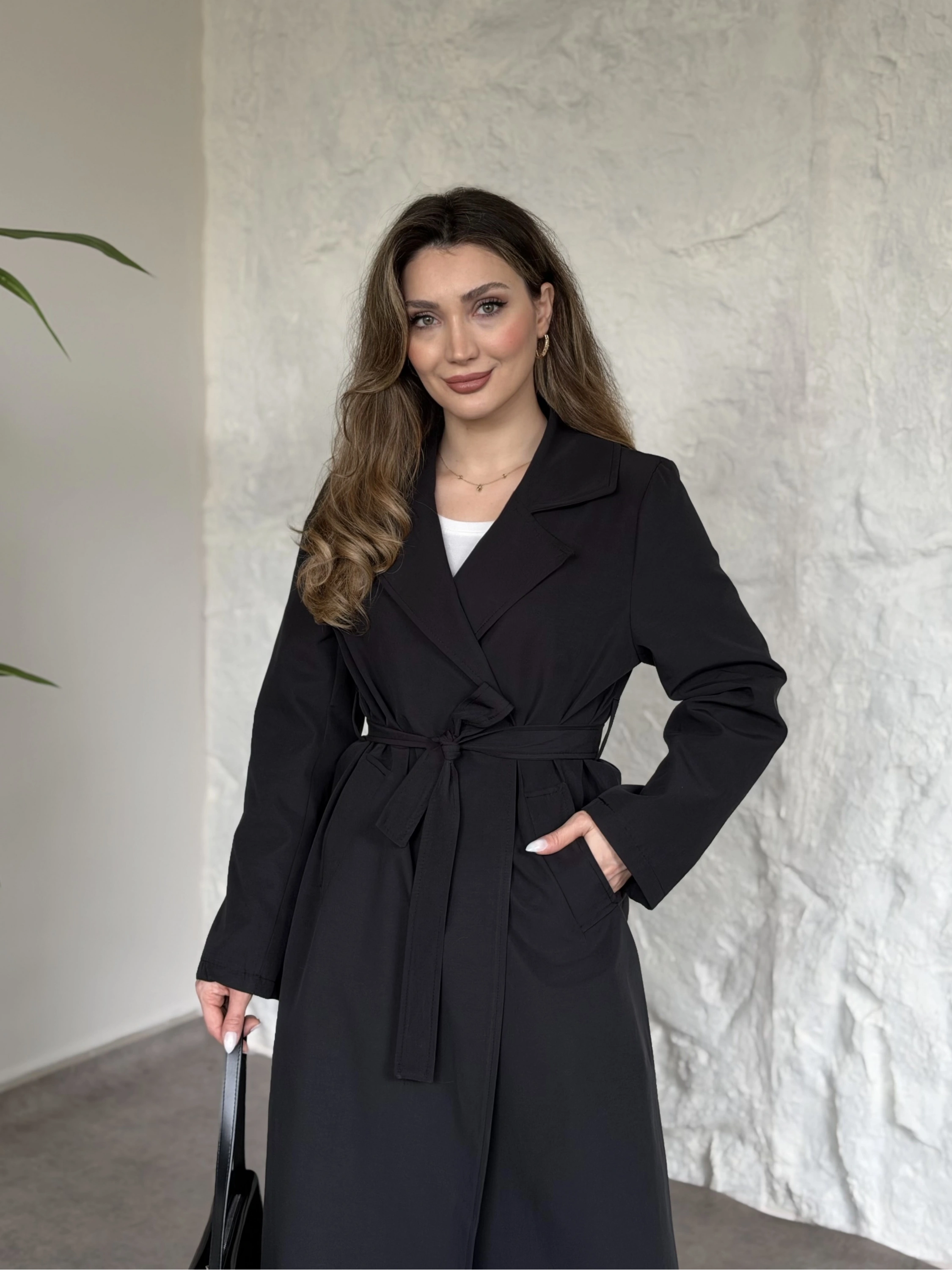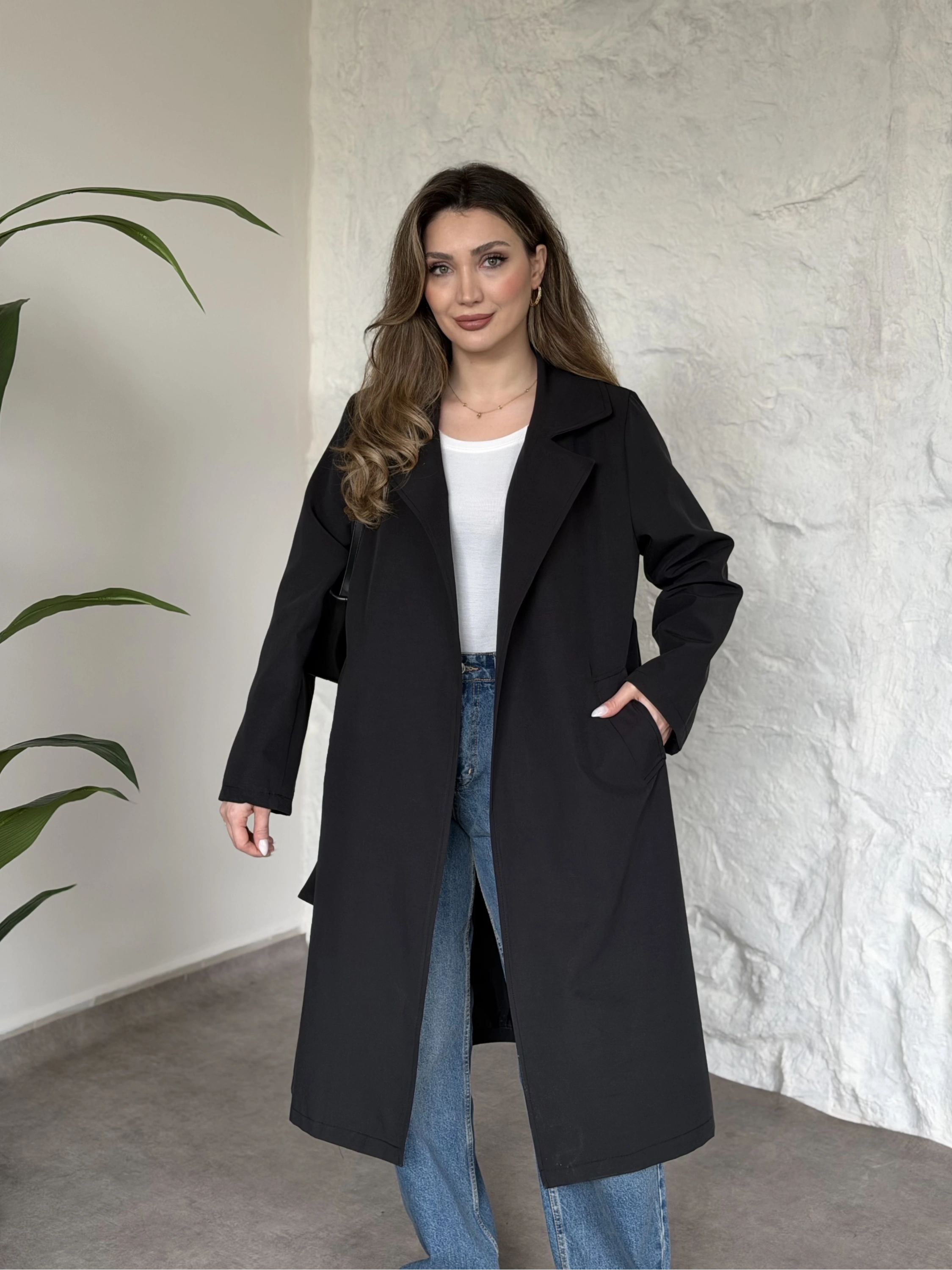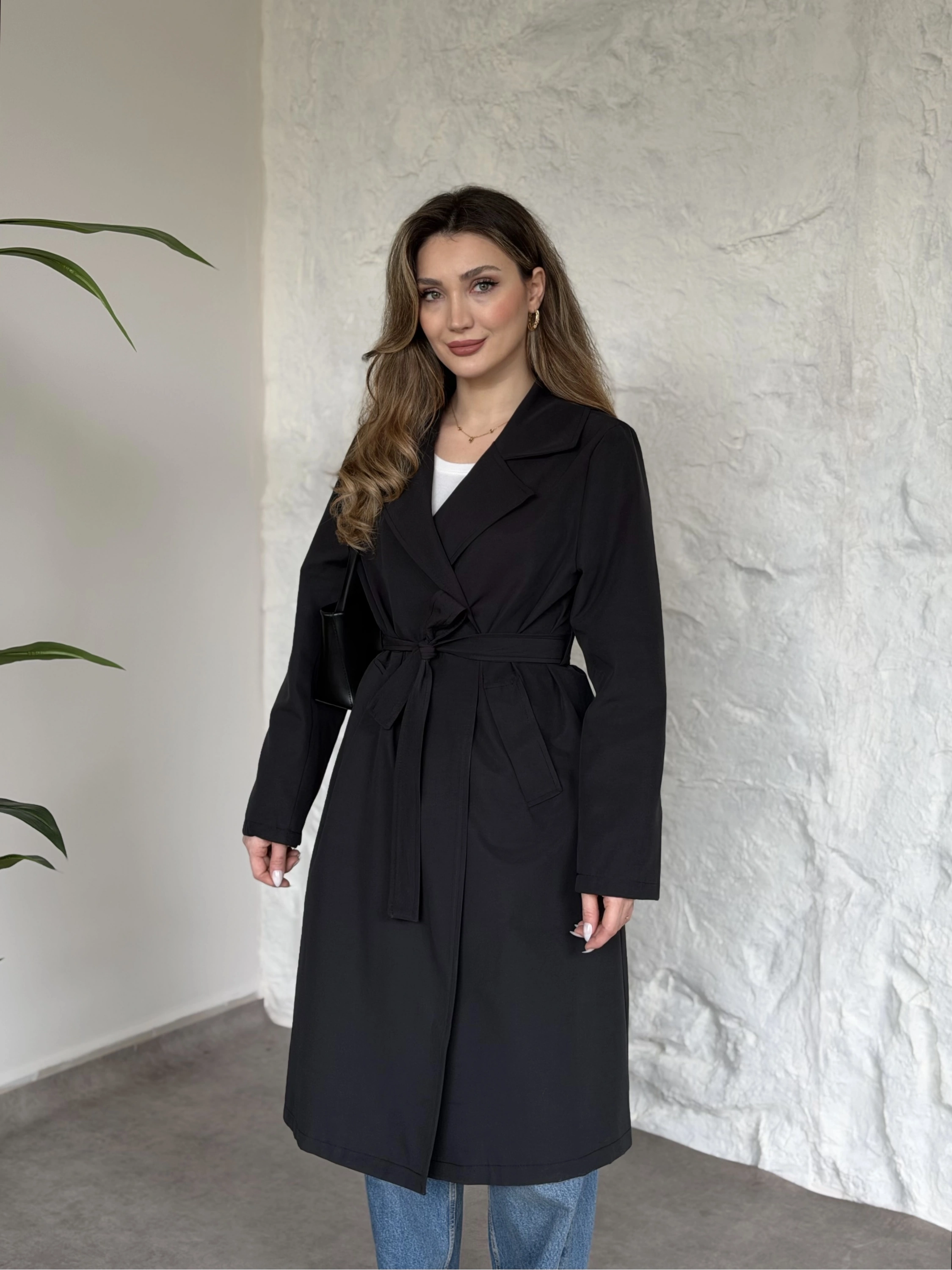 Premium kalite Torino kumaş beli kemerli trenç ceket bej