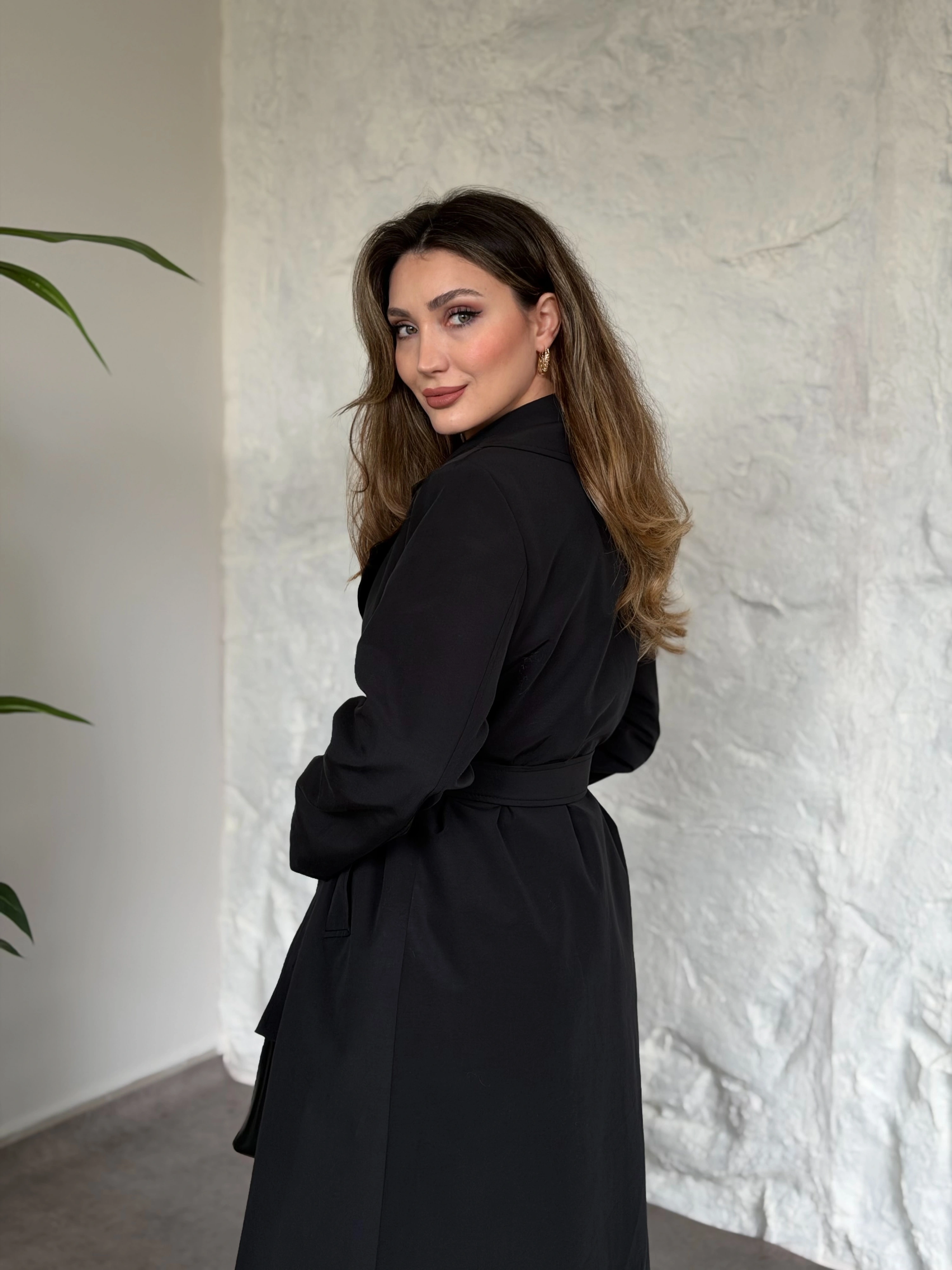 Premium kalite Torino kumaş kruvaze model kolları kemerli trenç yeşil