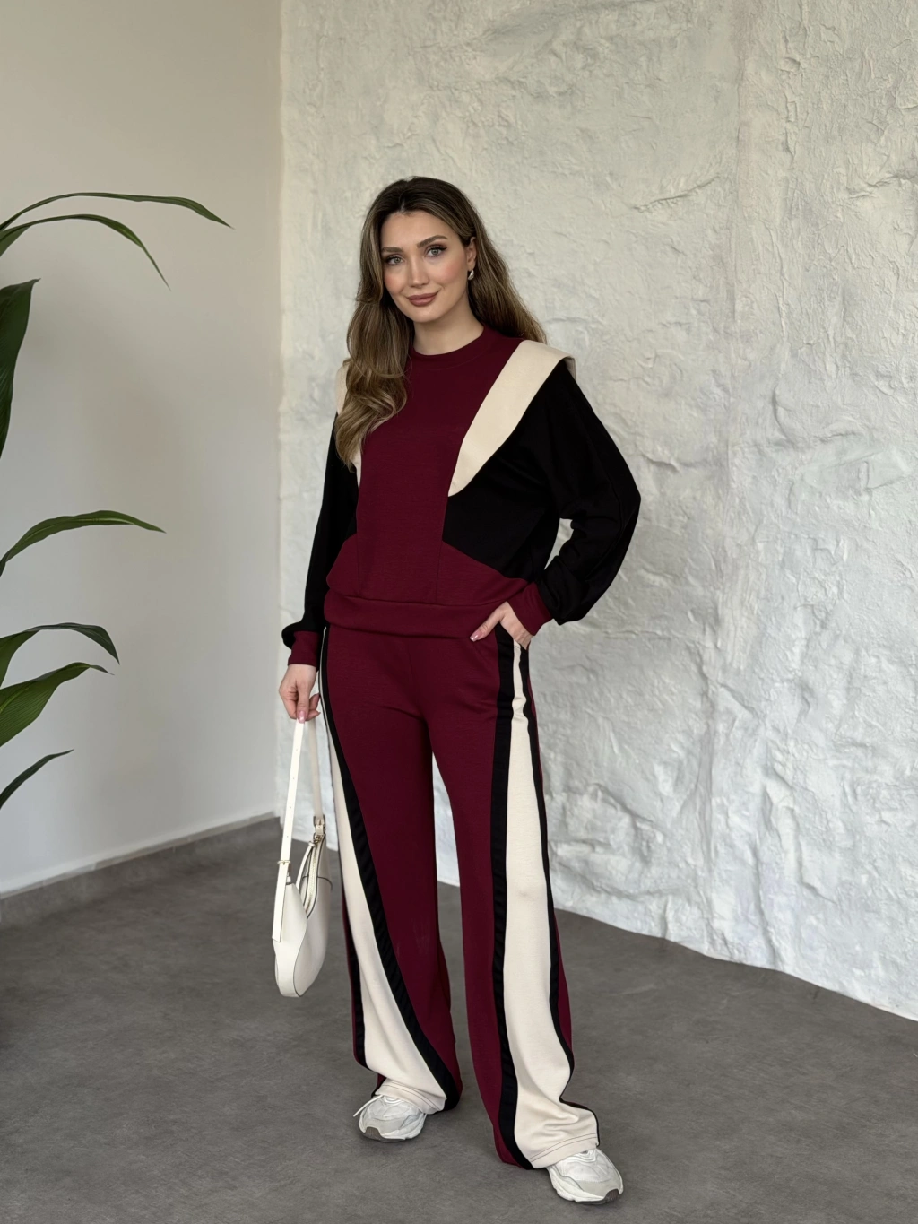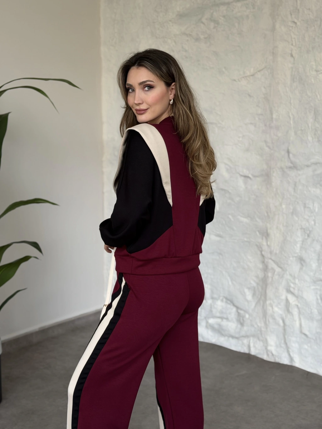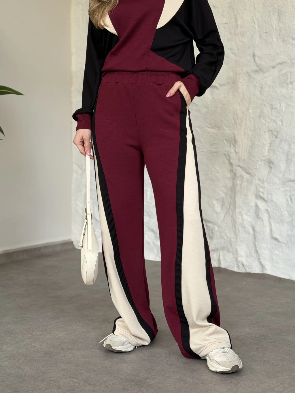 Premium yandan bağlama detaylı double kumaş takım bordo
